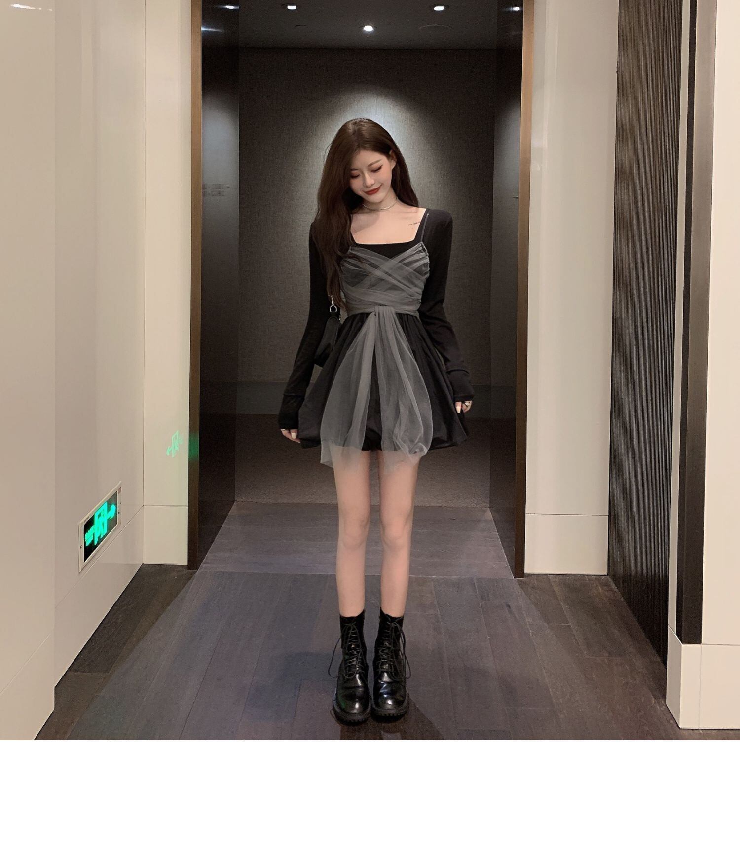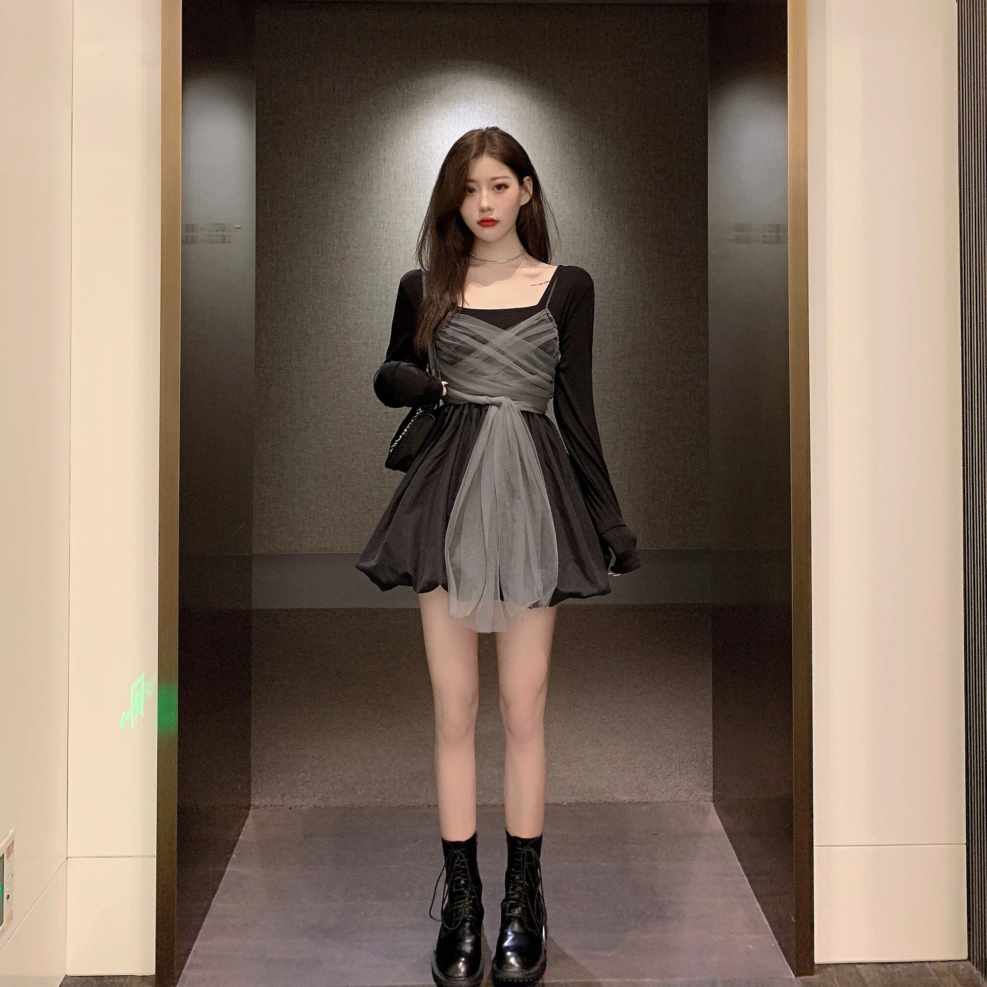 ウェスト薄手ブラックドレス メッシュオータムレディース 秋物 ドラファッションホール33490110971