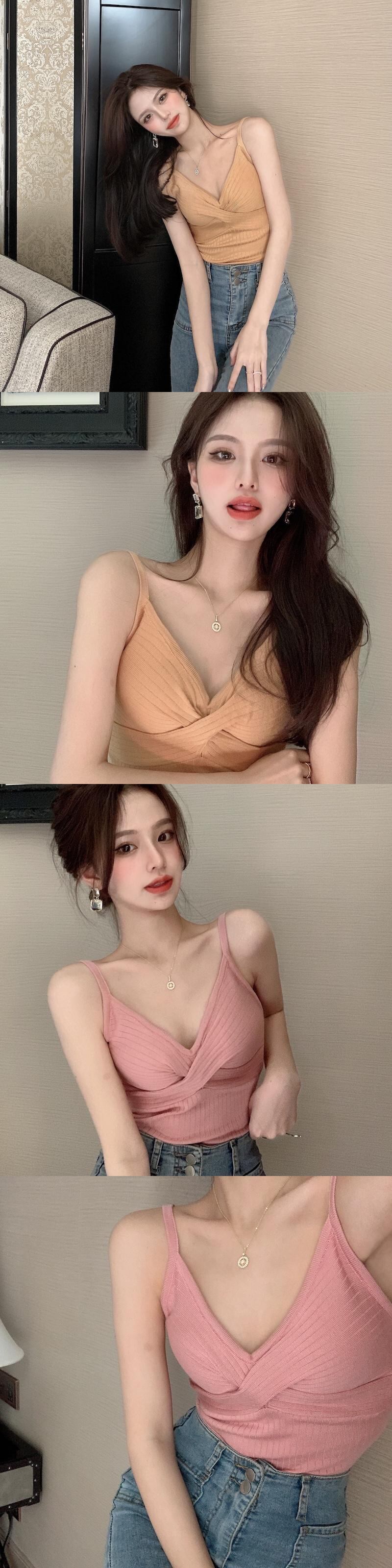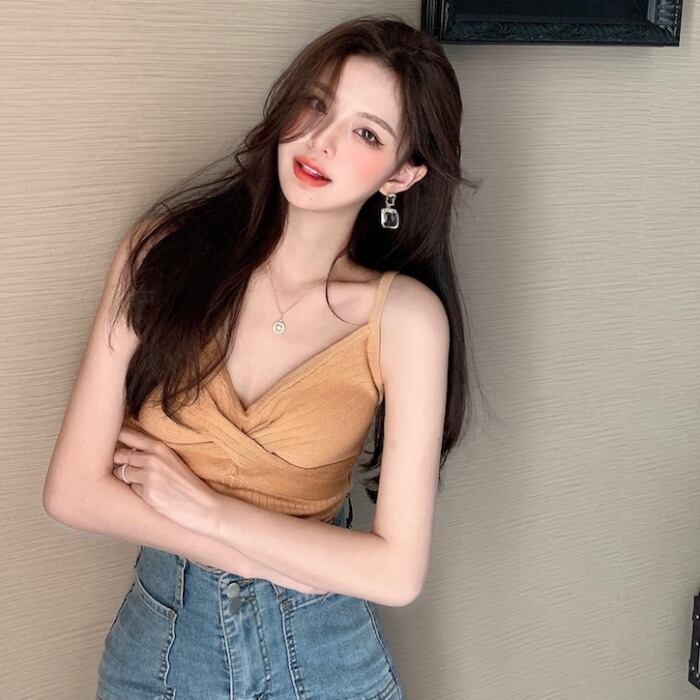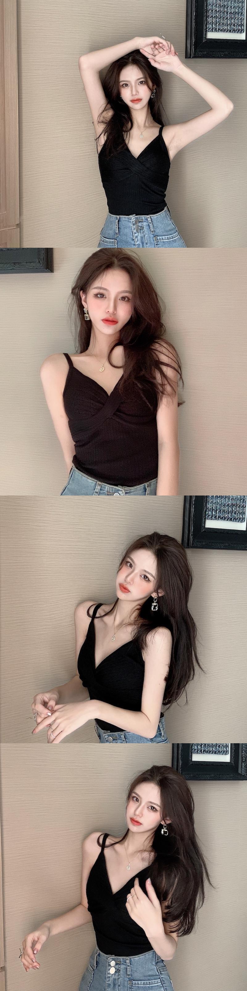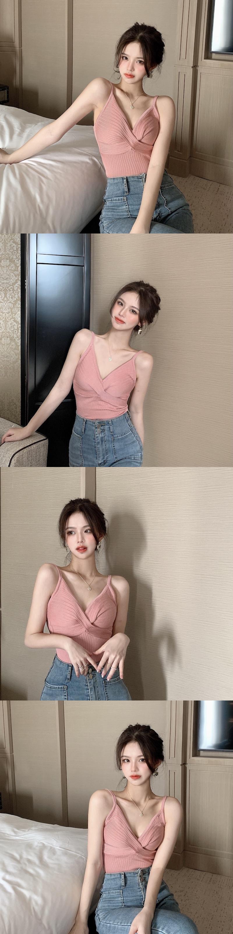 サマースタイルVネックレッドトップス ショートソリッド カラーレディース 夏物 ソリッドカラー ドラファッションホール79648465552