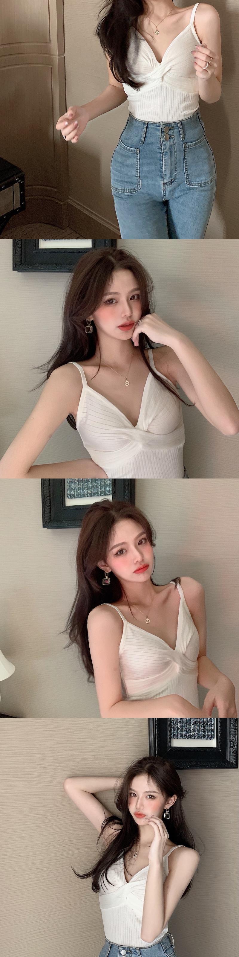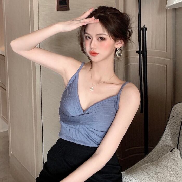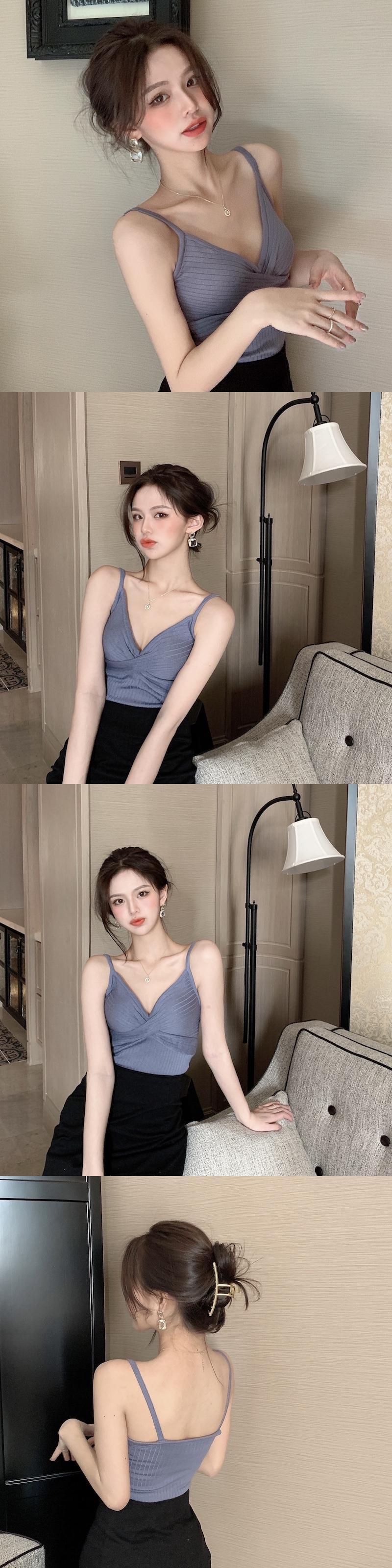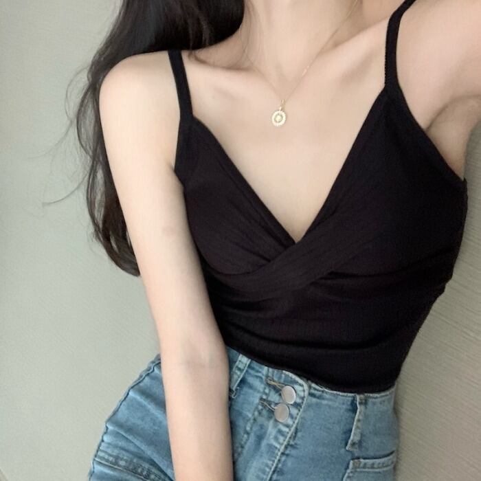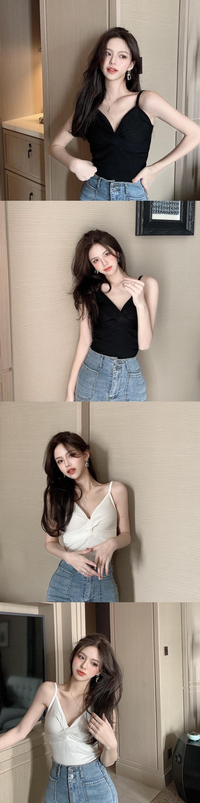 サマースタイルVネックレッドトップス ショートソリッド カラーレディース 夏物 ソリッドカラー ドラファッションホール79648465552