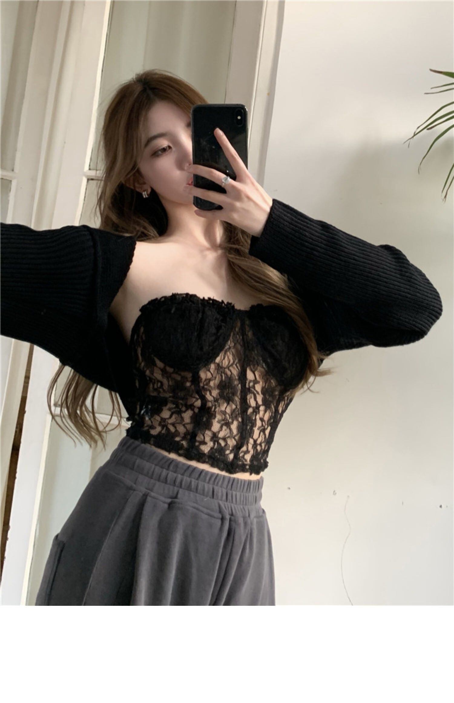 スプリングサマーレーストップス ブラックショート 春物 夏物 ドラファッションホール55670670075