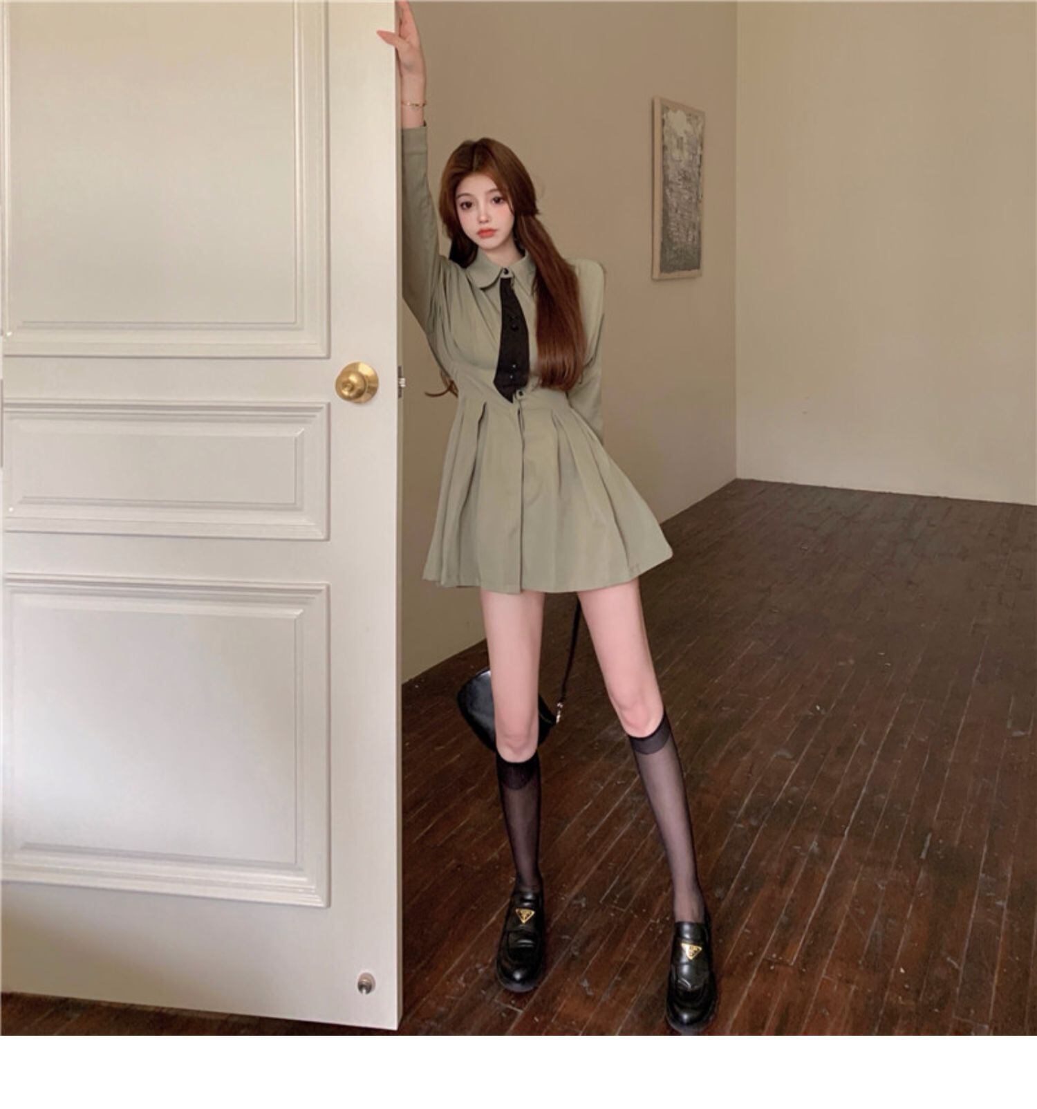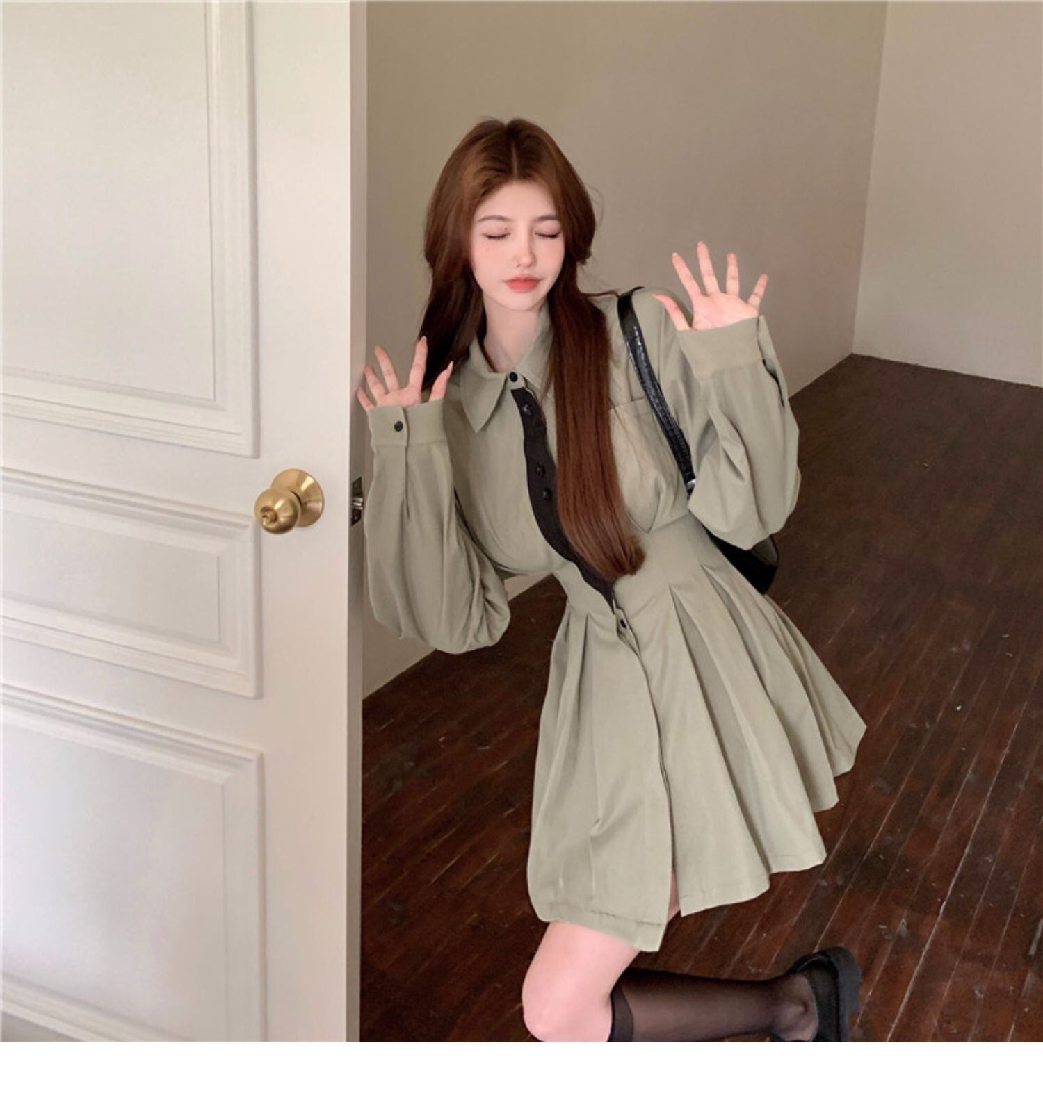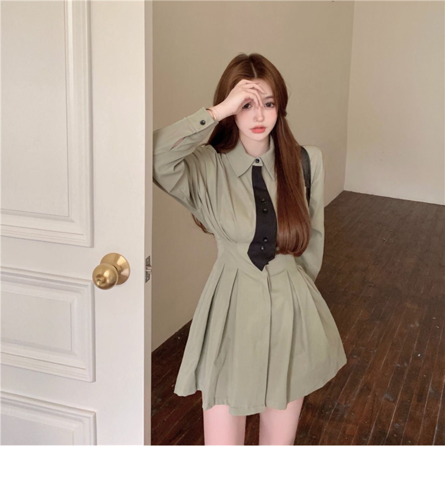 カジュアルシャツ ドレス サマーソリッド カラーAラインスカート 夏物 ソリッドカラー ステッチ ドラファッションホール66189967225