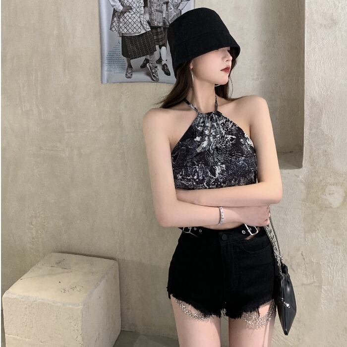 サマースタイルスタンダードレッドトップス ハイウェストウェストショーツ レディース レトロ 夏物 ブルマー ドラファッションホール92408153035