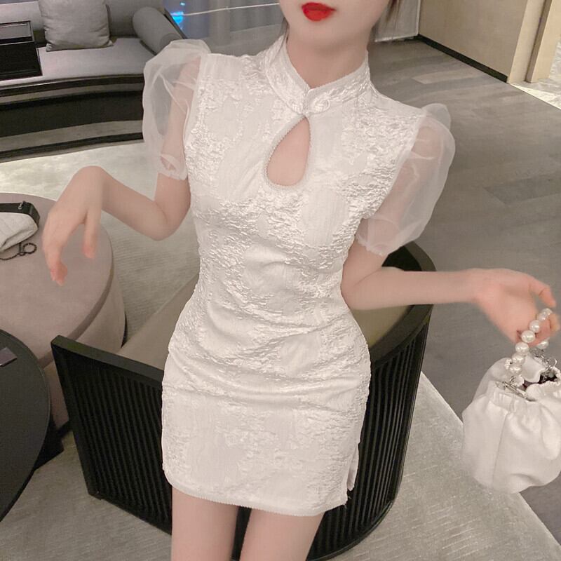 スプリングサマージャカードウェスト薄手ホワイトドレス 春物 夏物 ドラファッションホール47164113397