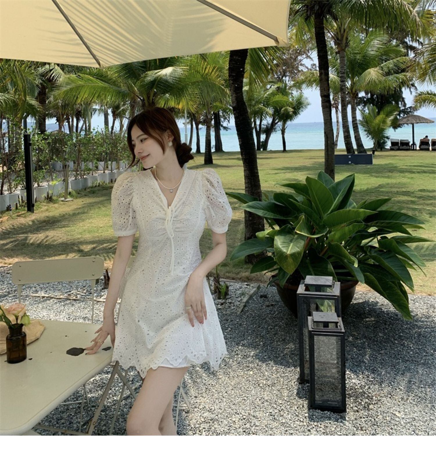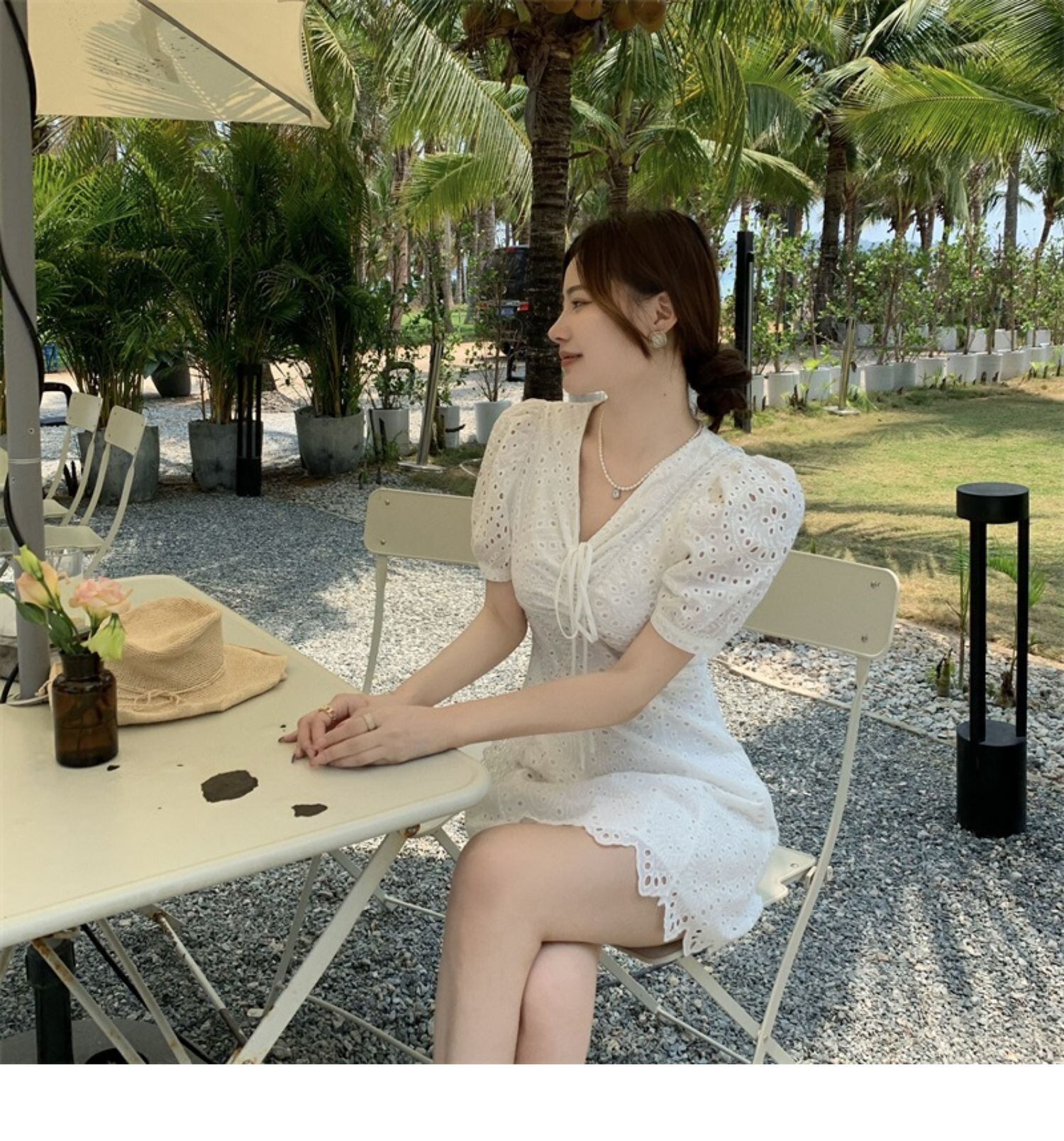 サマースタイルスリーブソリッド カラーハイウェストウェストスリムドレス 夏物 ソリッドカラー ドラファッションホール86858680099