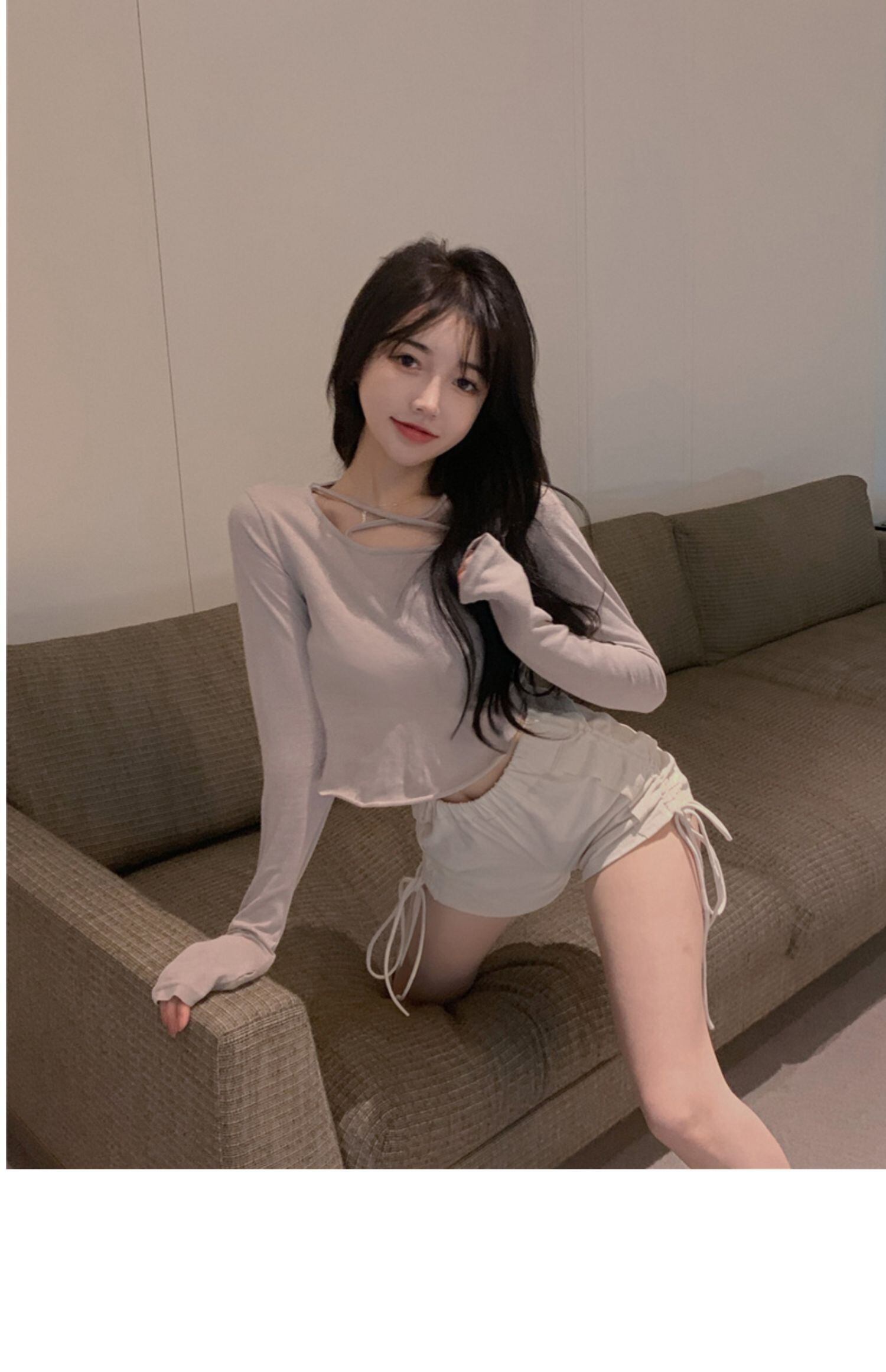スプリングサマークロスレッドTシャツ ハイウェストウェストショーツ スタイルレディース ロング 春物 夏物 ブルマー ドラファッションホール34423951481