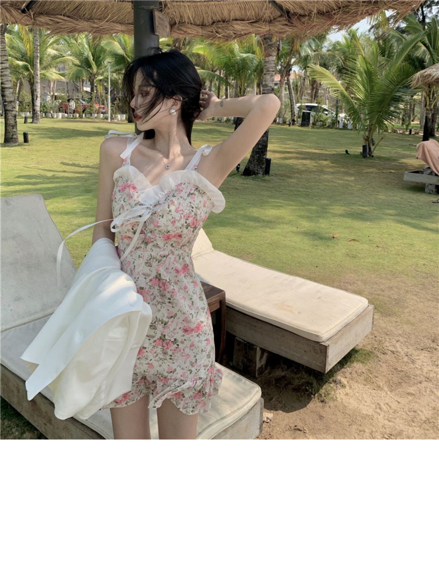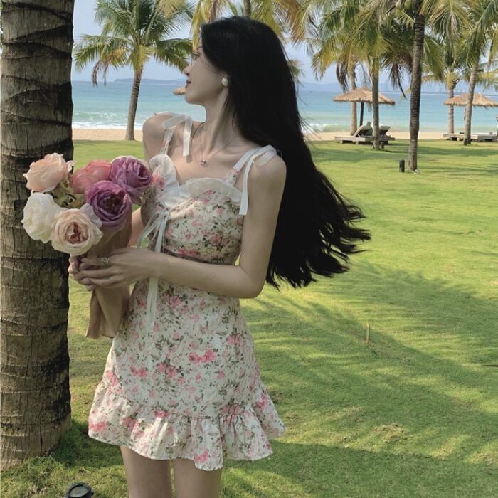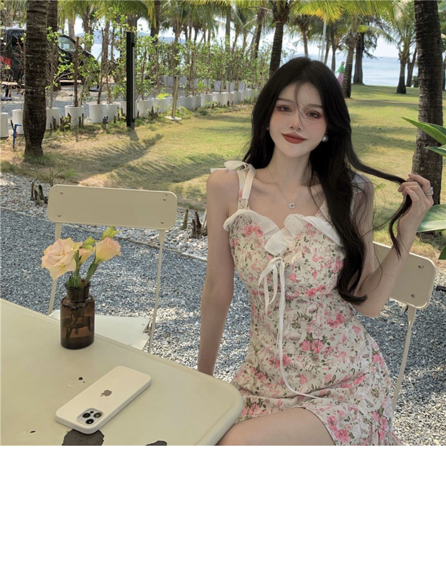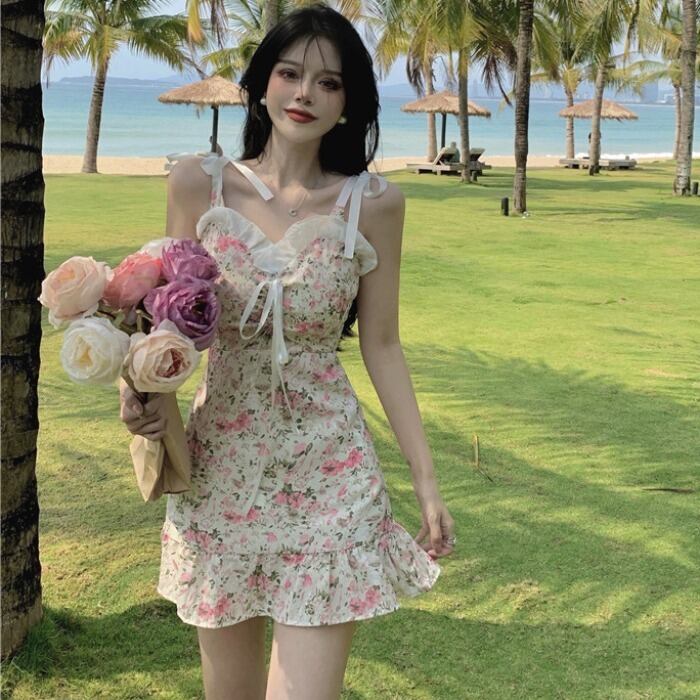 スカート サマースタイルスタンダードVネックフローラルウェストドレス レトロ 夏物 花柄 ドラファッションホール42715865863