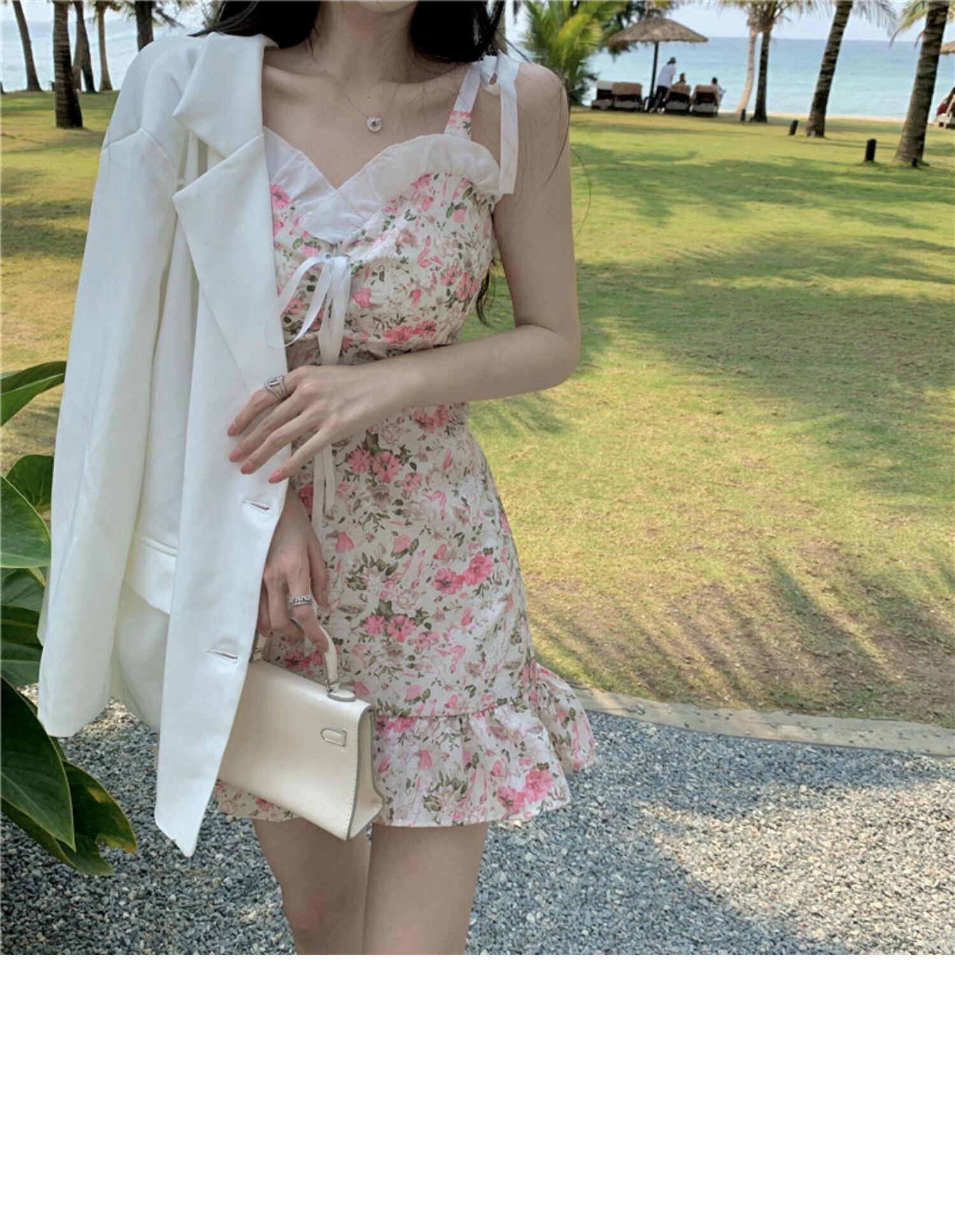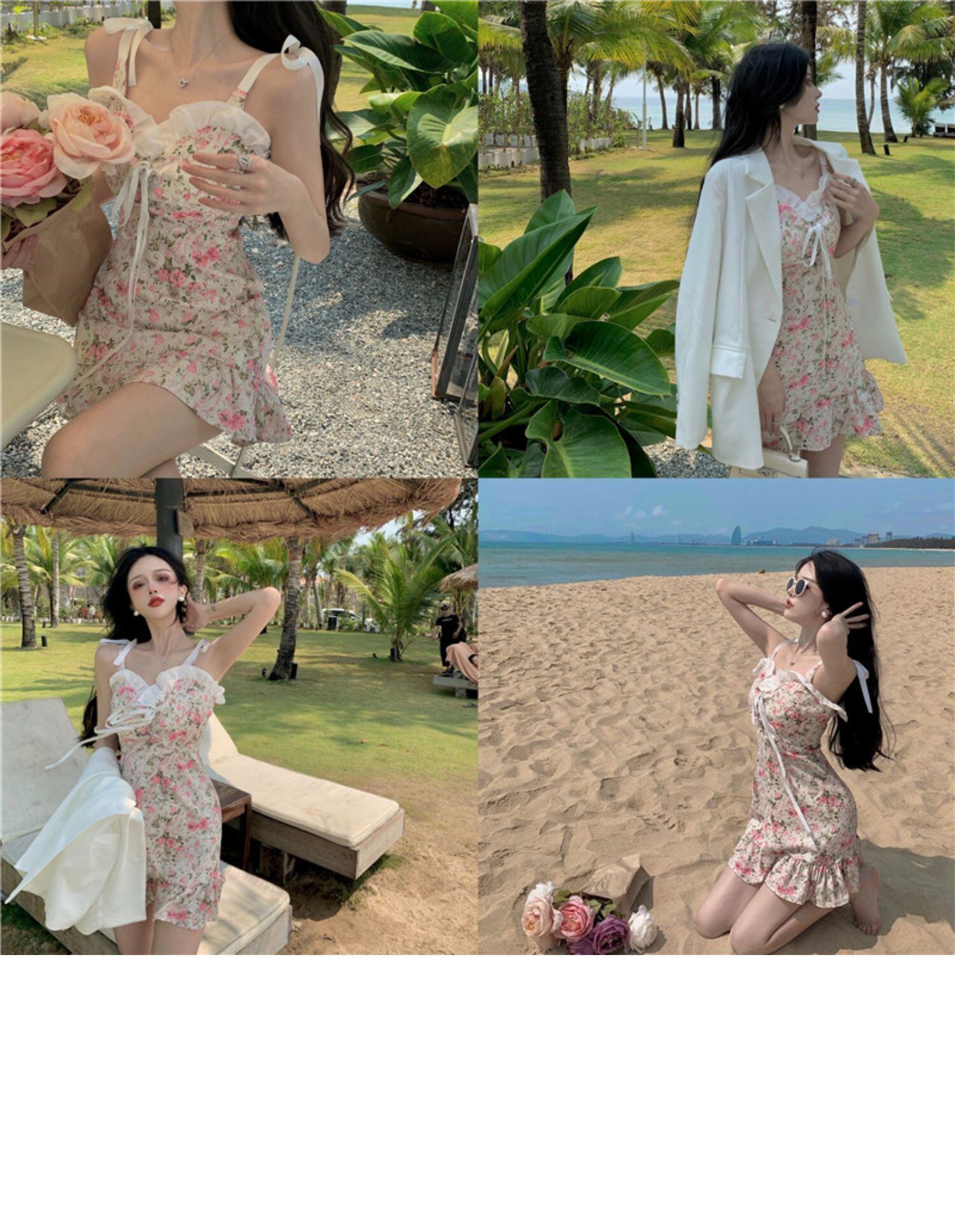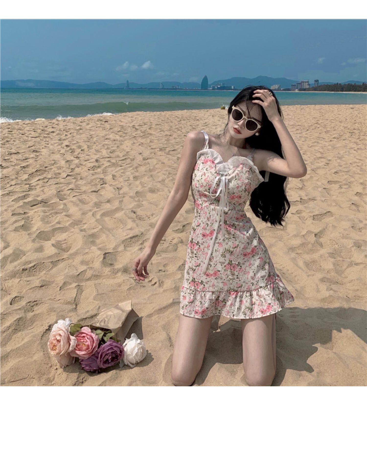 スカート サマースタイルスタンダードVネックフローラルウェストドレス レトロ 夏物 花柄 ドラファッションホール42715865863