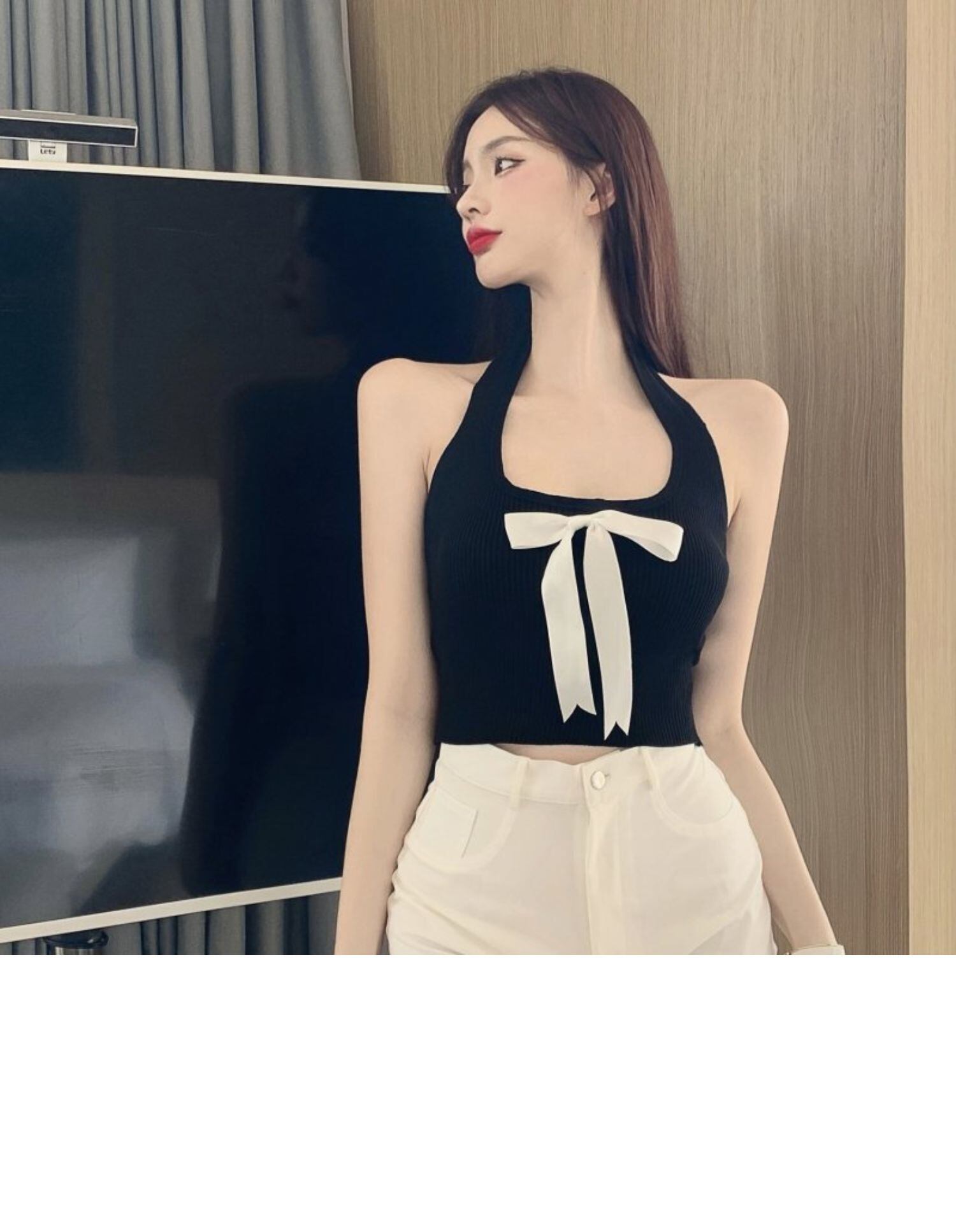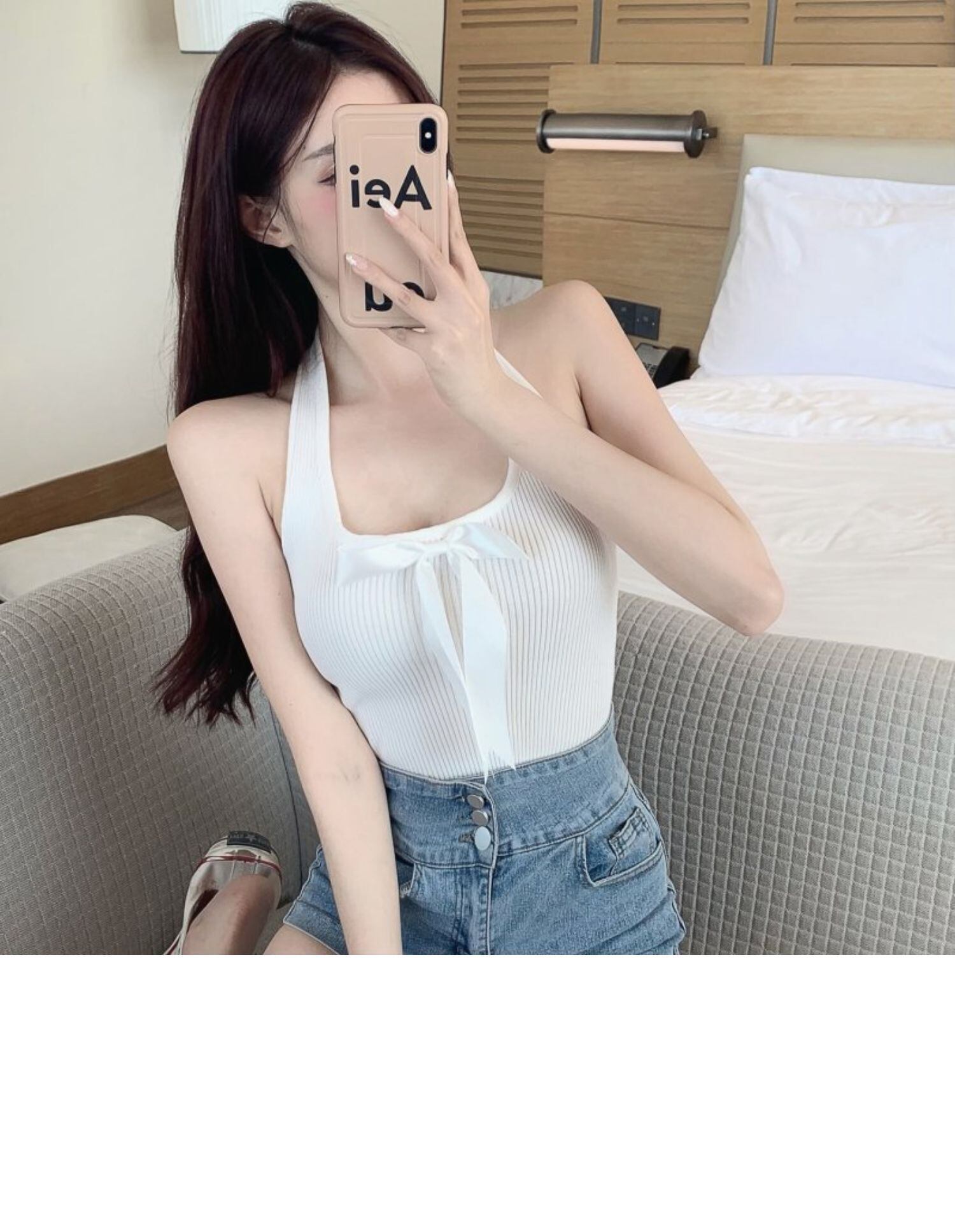 サマースタイルリボンホルタートップス ショートレディース 大人ガーリー スウィート キュート カジュアル 夏物 ドラファッションホール89364434715
