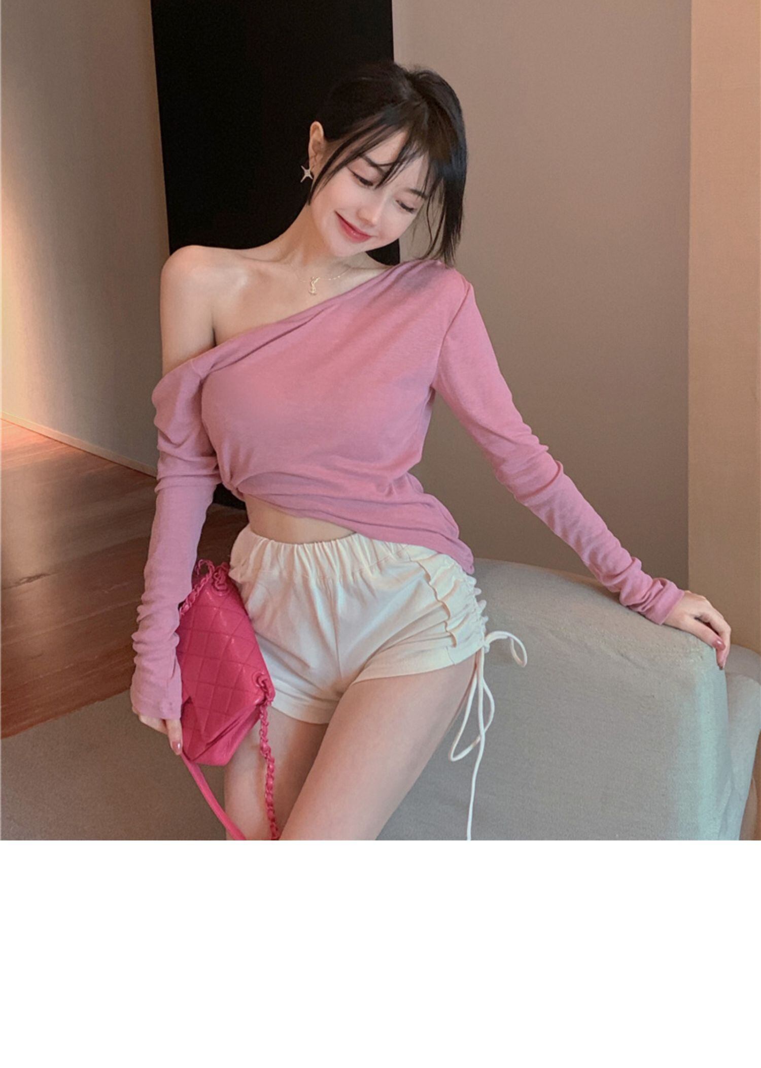 スプリングサマースタンダードストラップレスショートTシャツ ギャザーショーツ スタイルレディース レトロ 春物 夏物 ブルマー ドラファッションホール68780637088