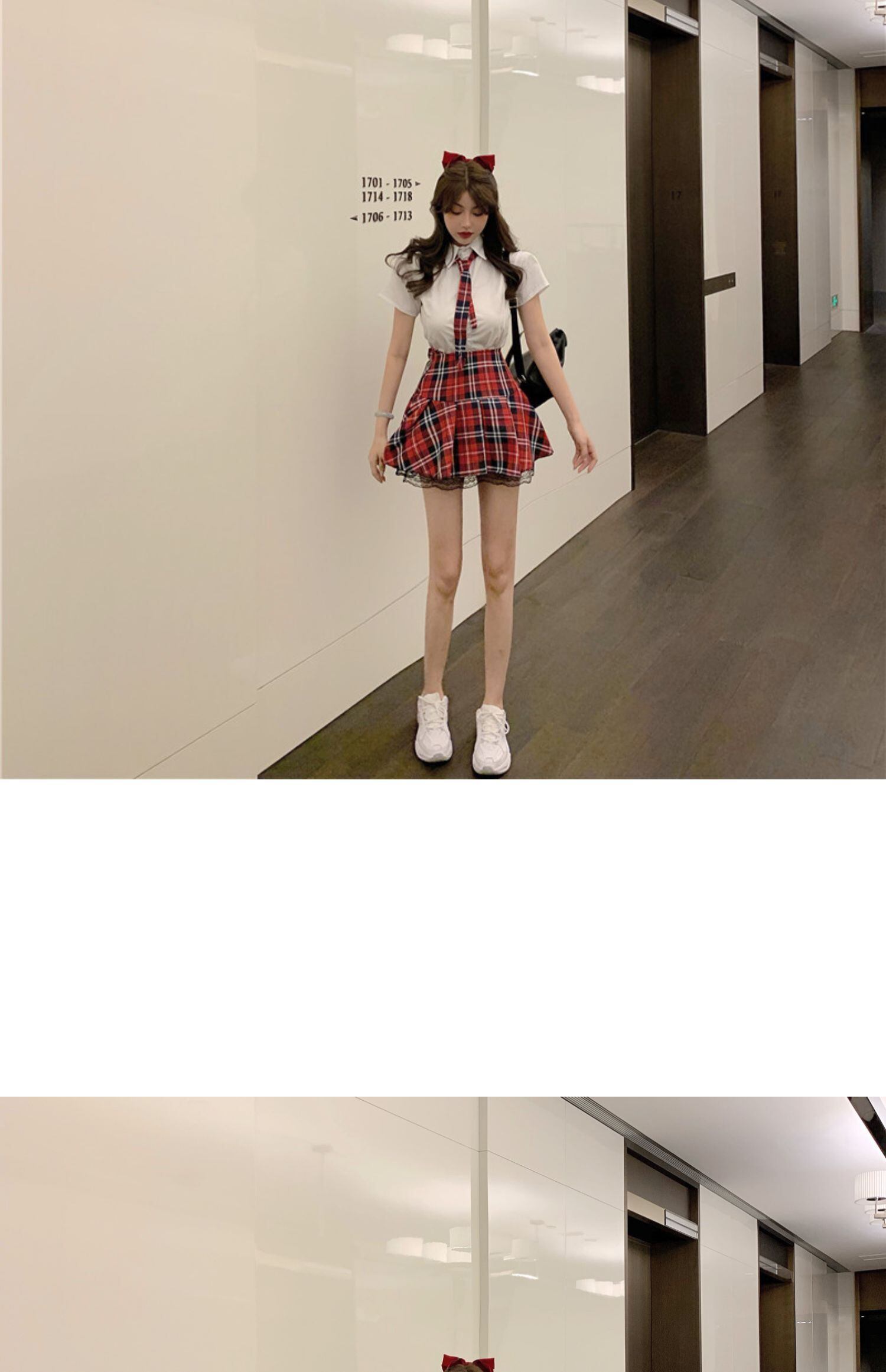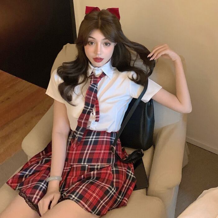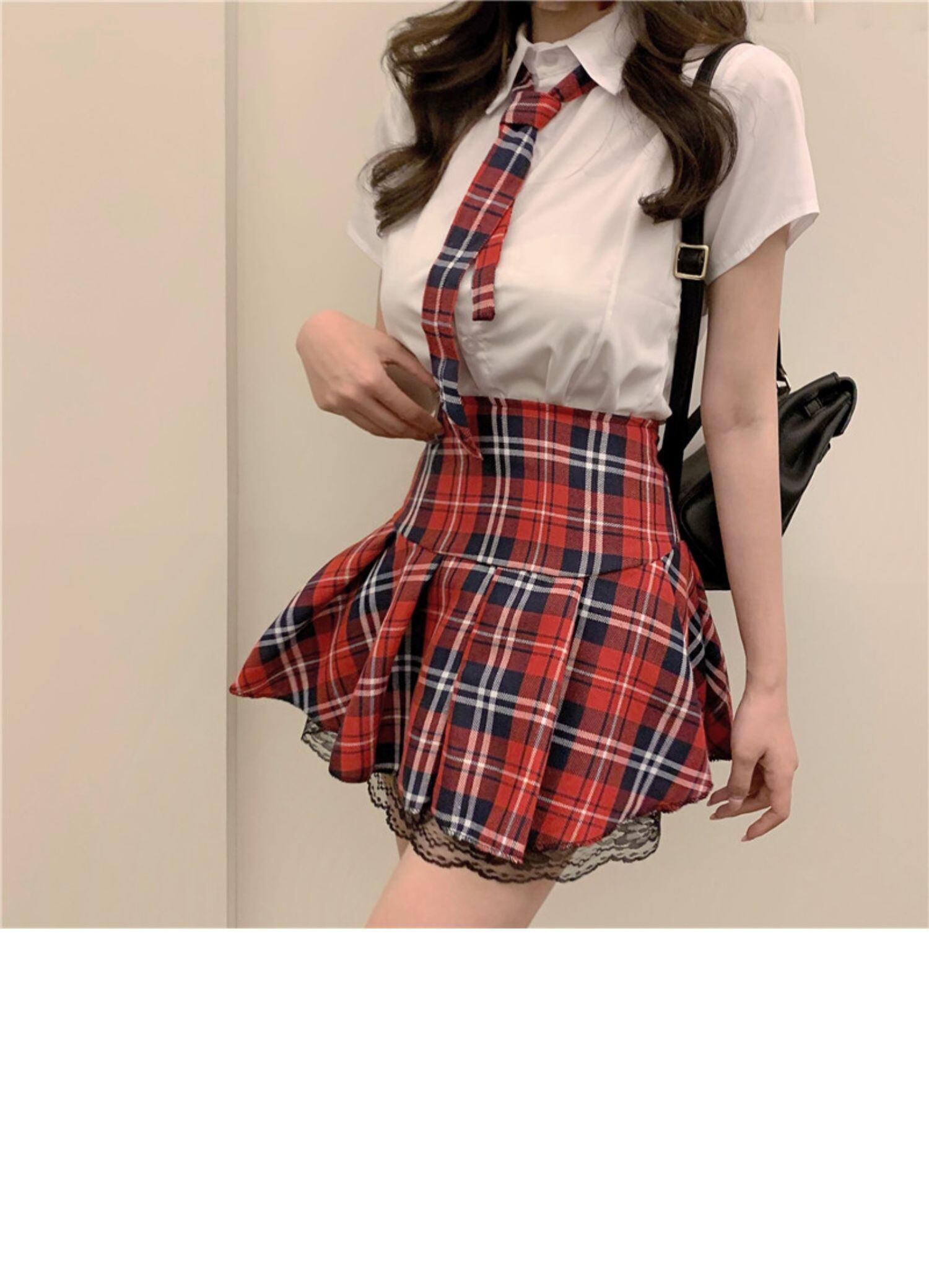 サマースタイルレッドシャツ ハイウェスト格子柄スカート レディース 夏物 ドラファッションホール84863264872