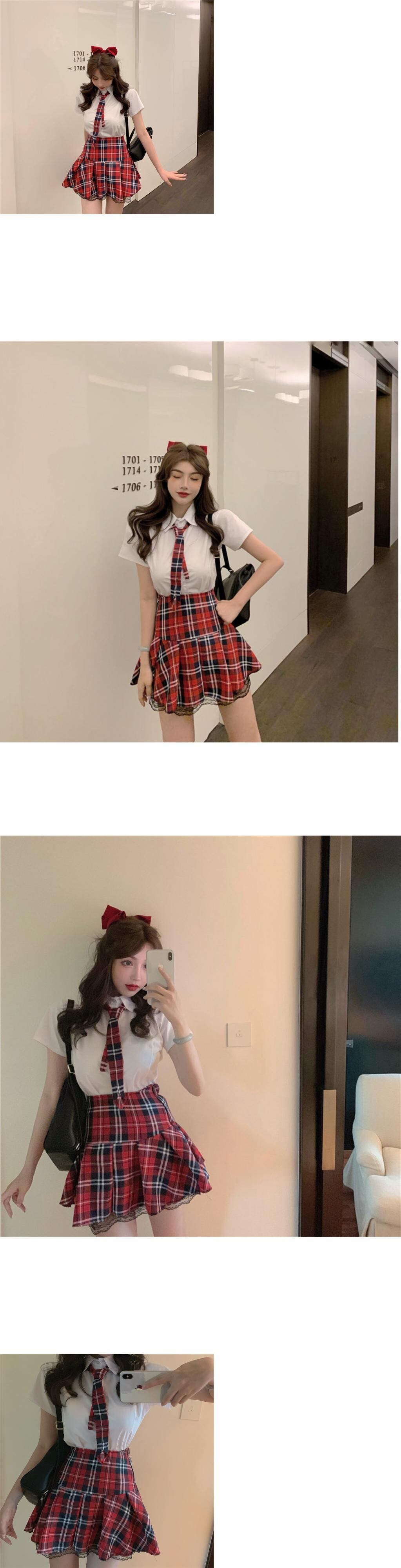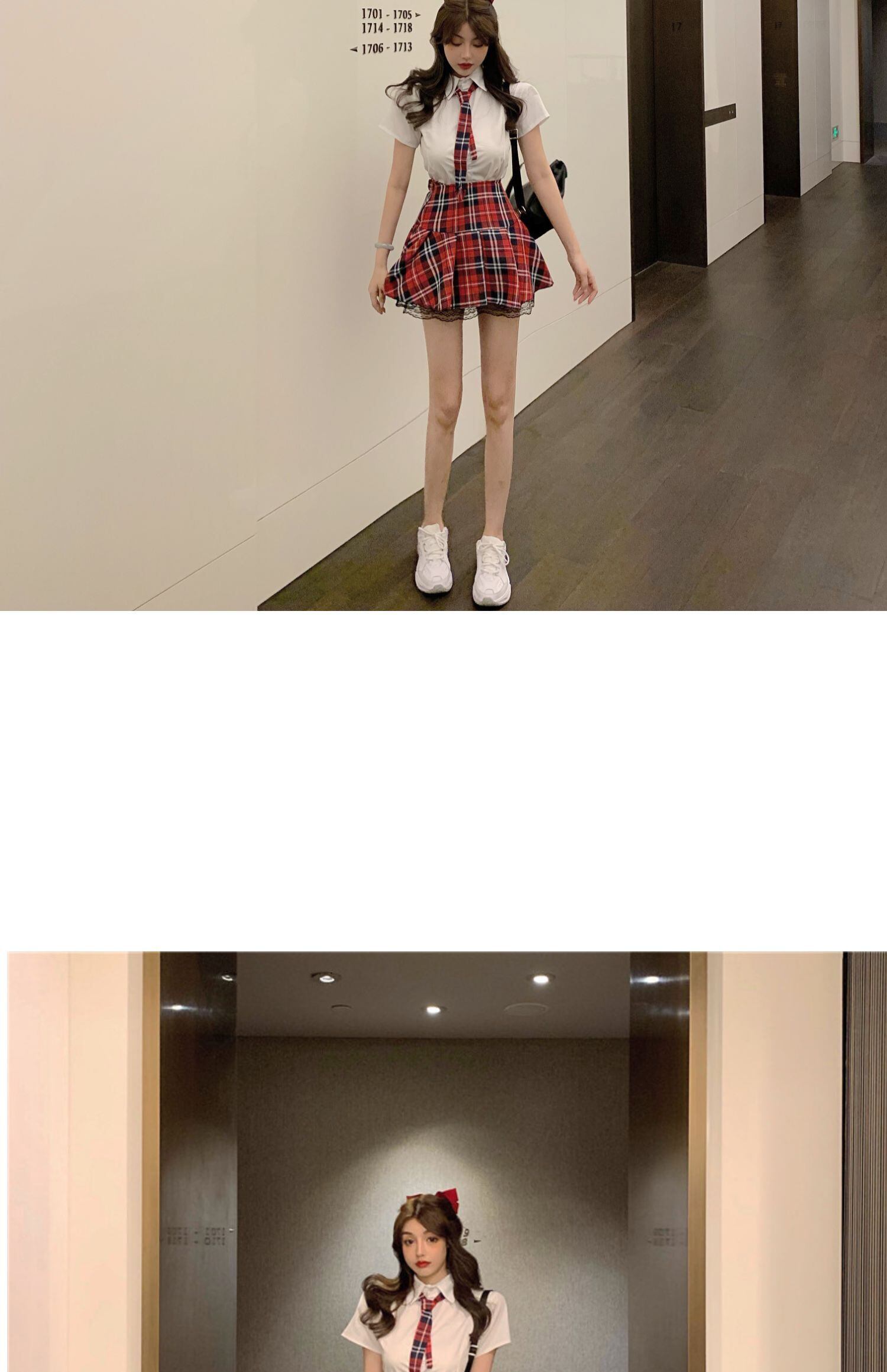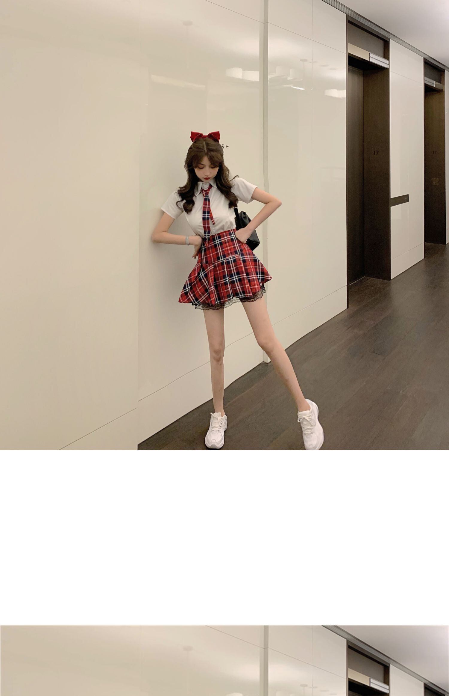 サマースタイルレッドシャツ ハイウェスト格子柄スカート レディース 夏物 ドラファッションホール84863264872