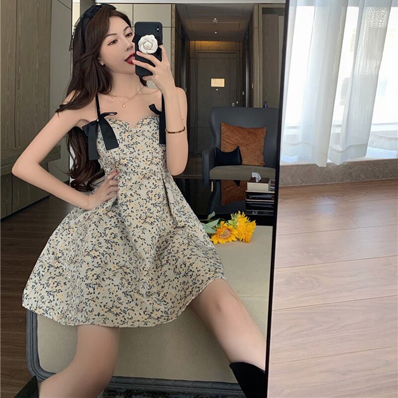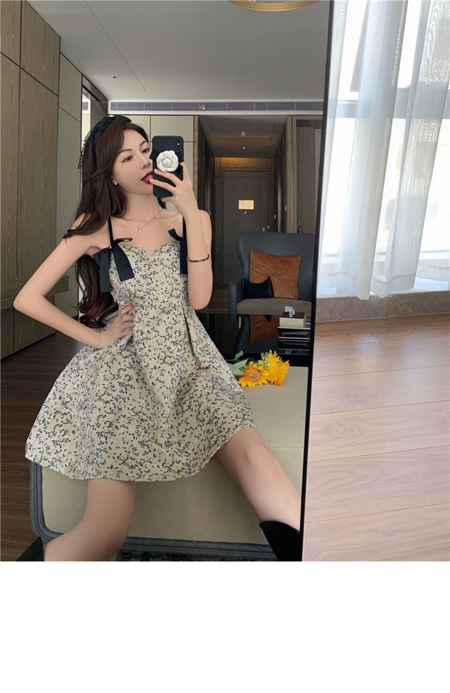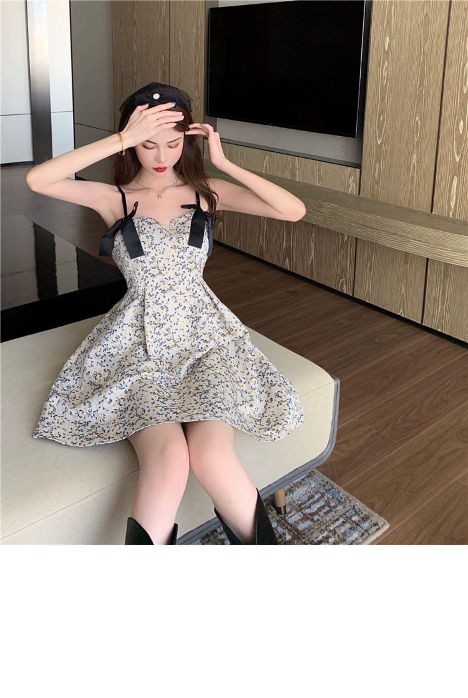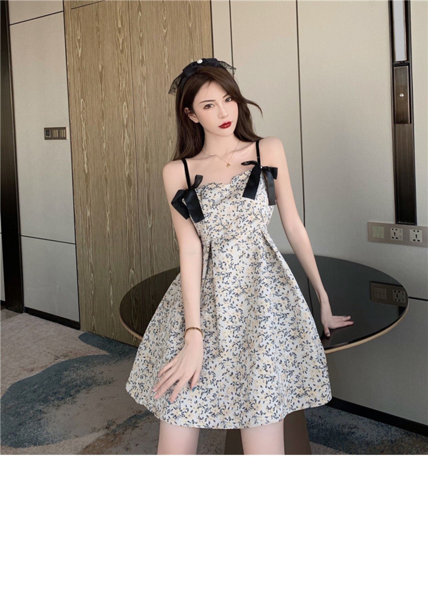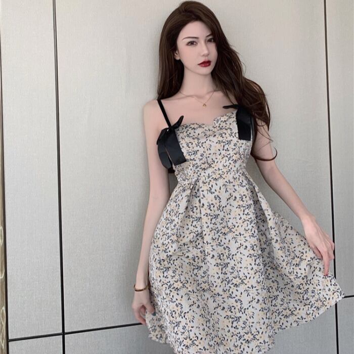 スカート サマースタンダードリボンフローラルウェストドレス レトロ 夏物 花柄 ドラファッションホール75162449745