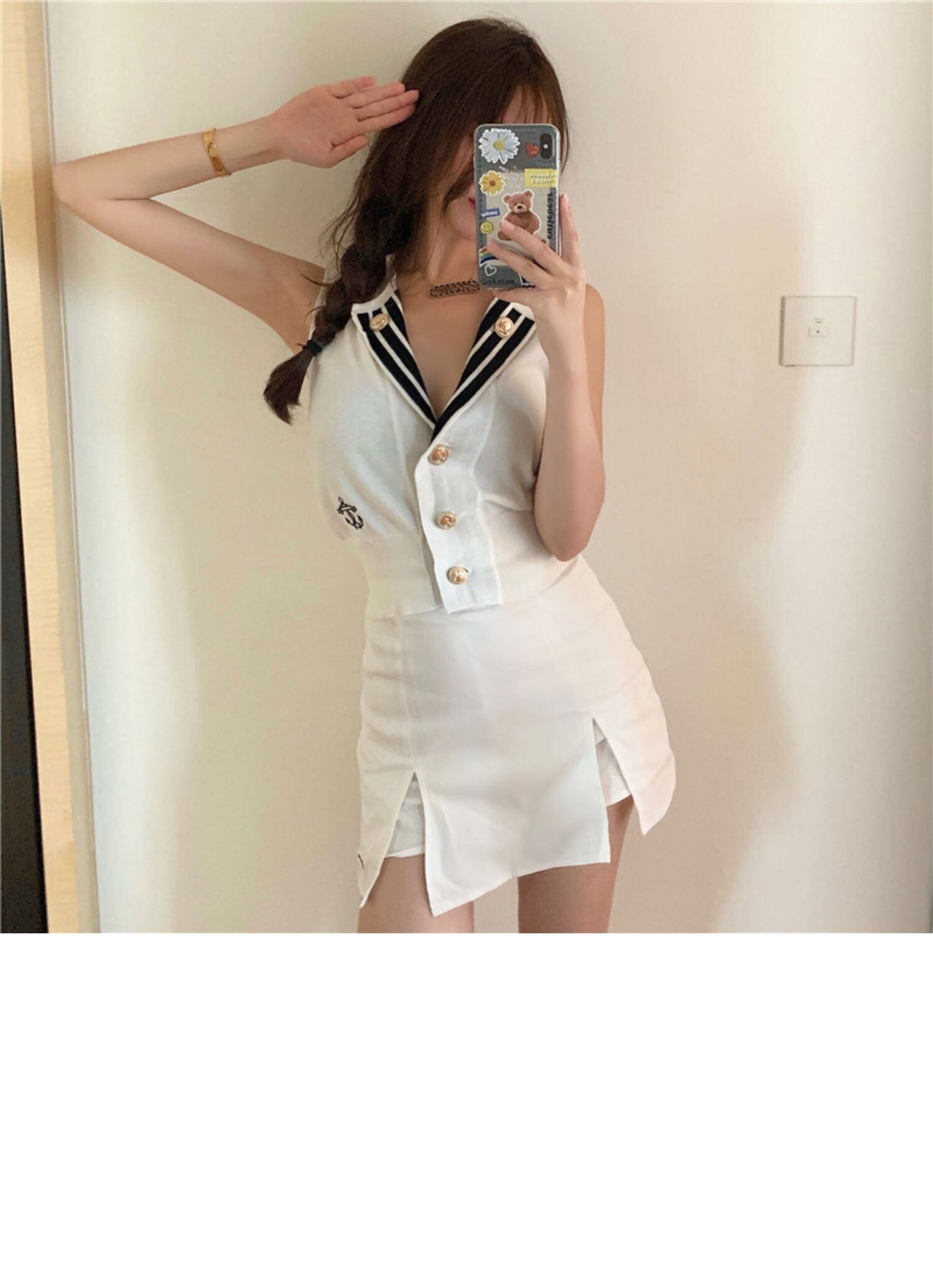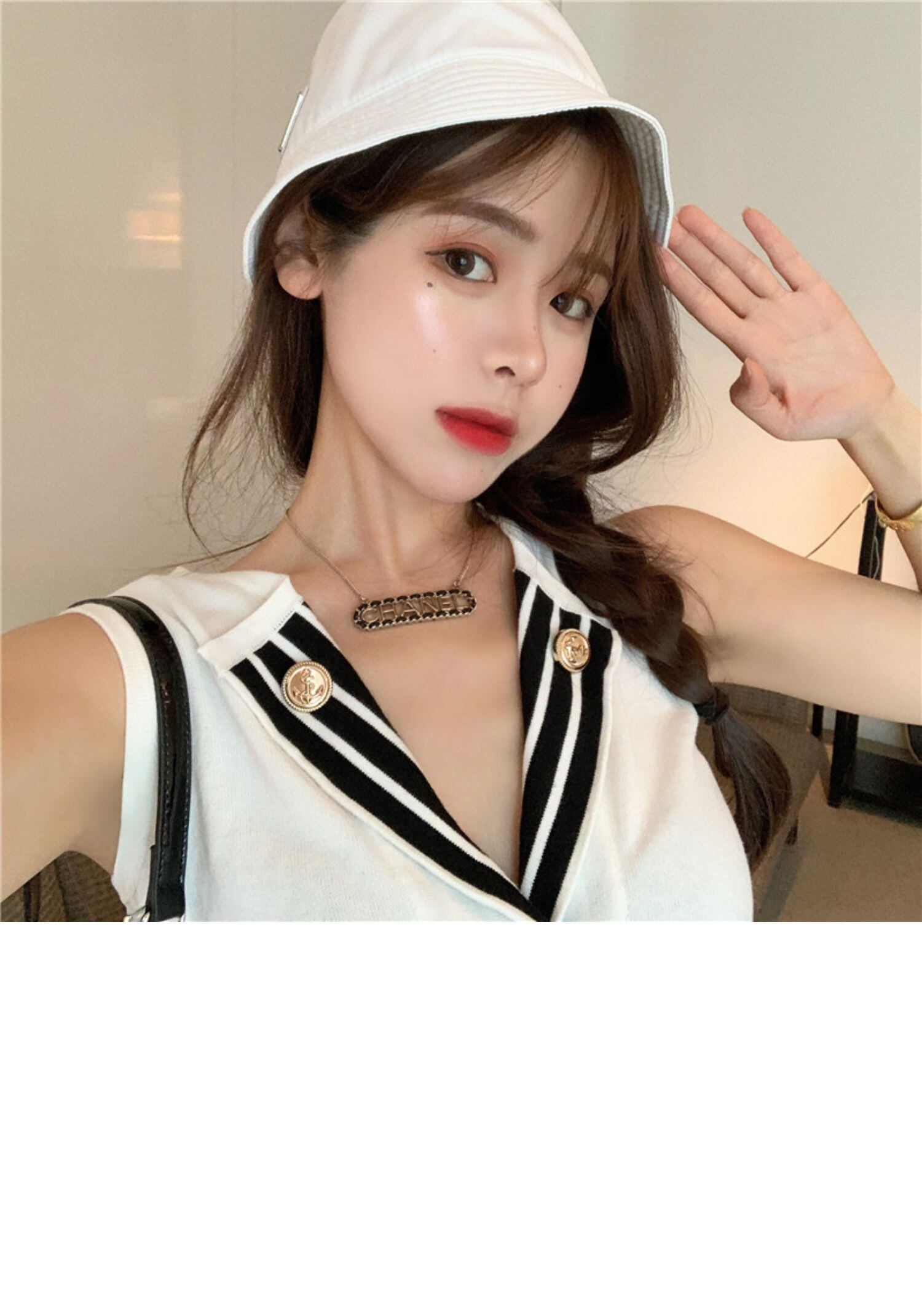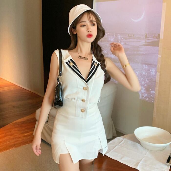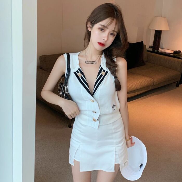 サマースタンダードネイビーニットスタイルノースリーブレッドトップス レディース レトロ 夏物 ドラファッションホール48882531472
