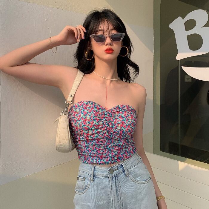サマートップス レッドフローラルブラウス ショートスタイルレディース 夏物 花柄 ドラファッションホール31695767989