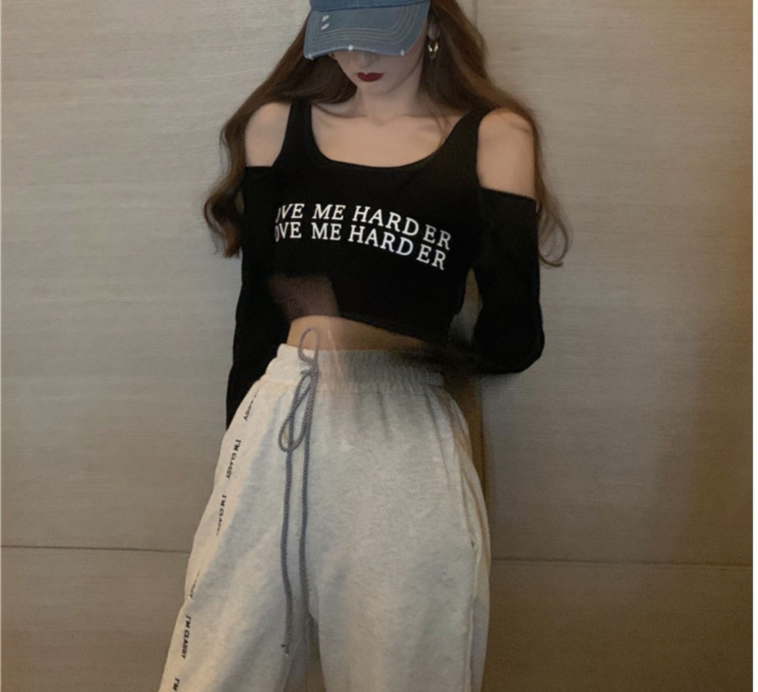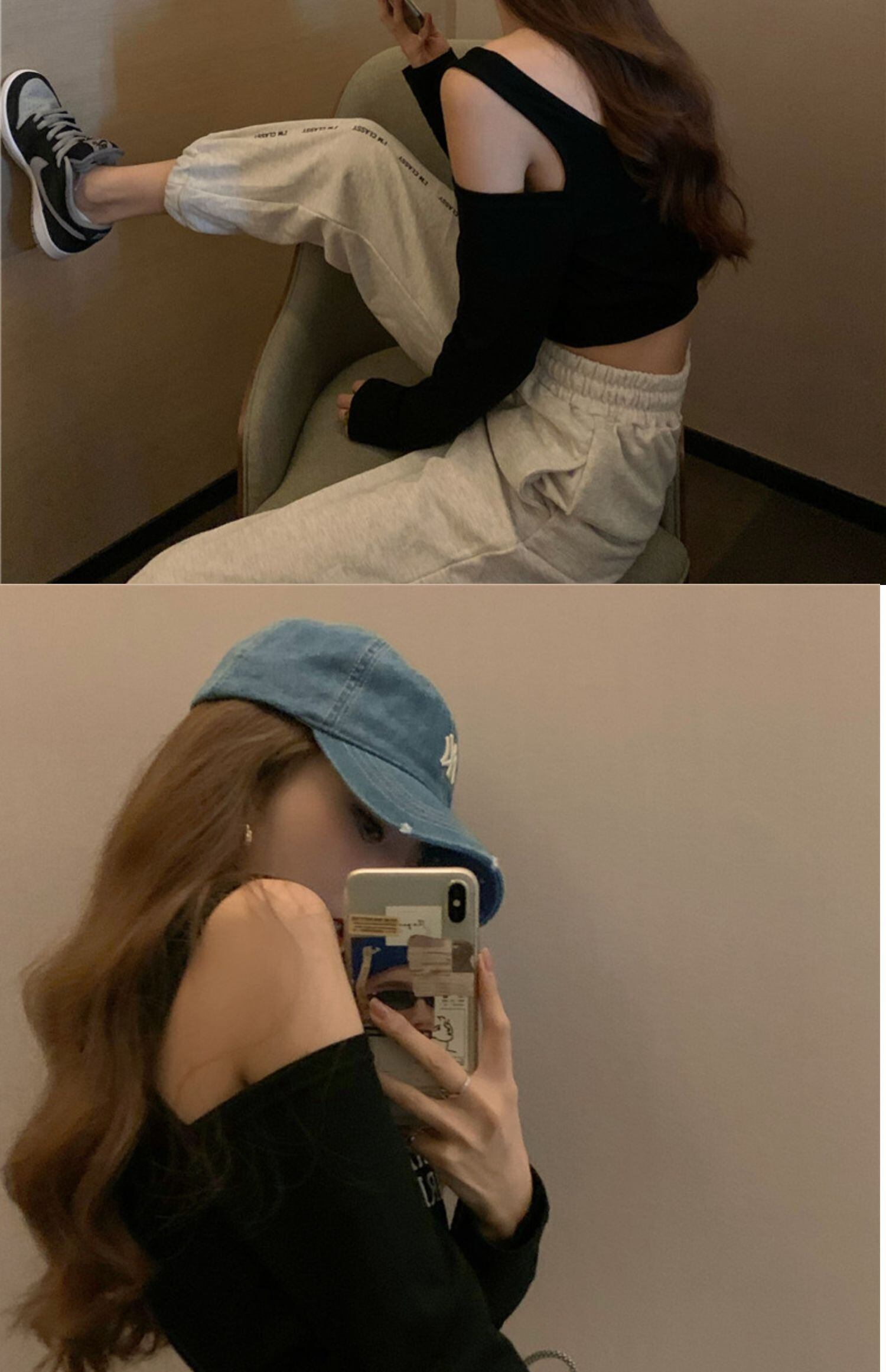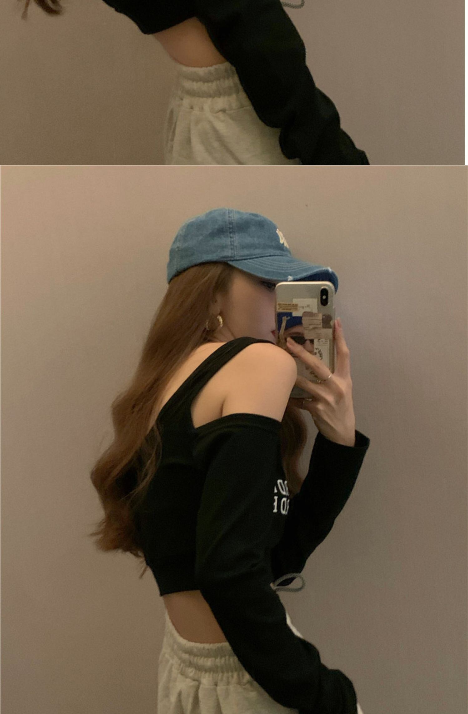 ショートトップス Tシャツ スプリング薄手ラウンドネック ロング 春物 Oネック オフショルダー ドラファッションホール27256174333