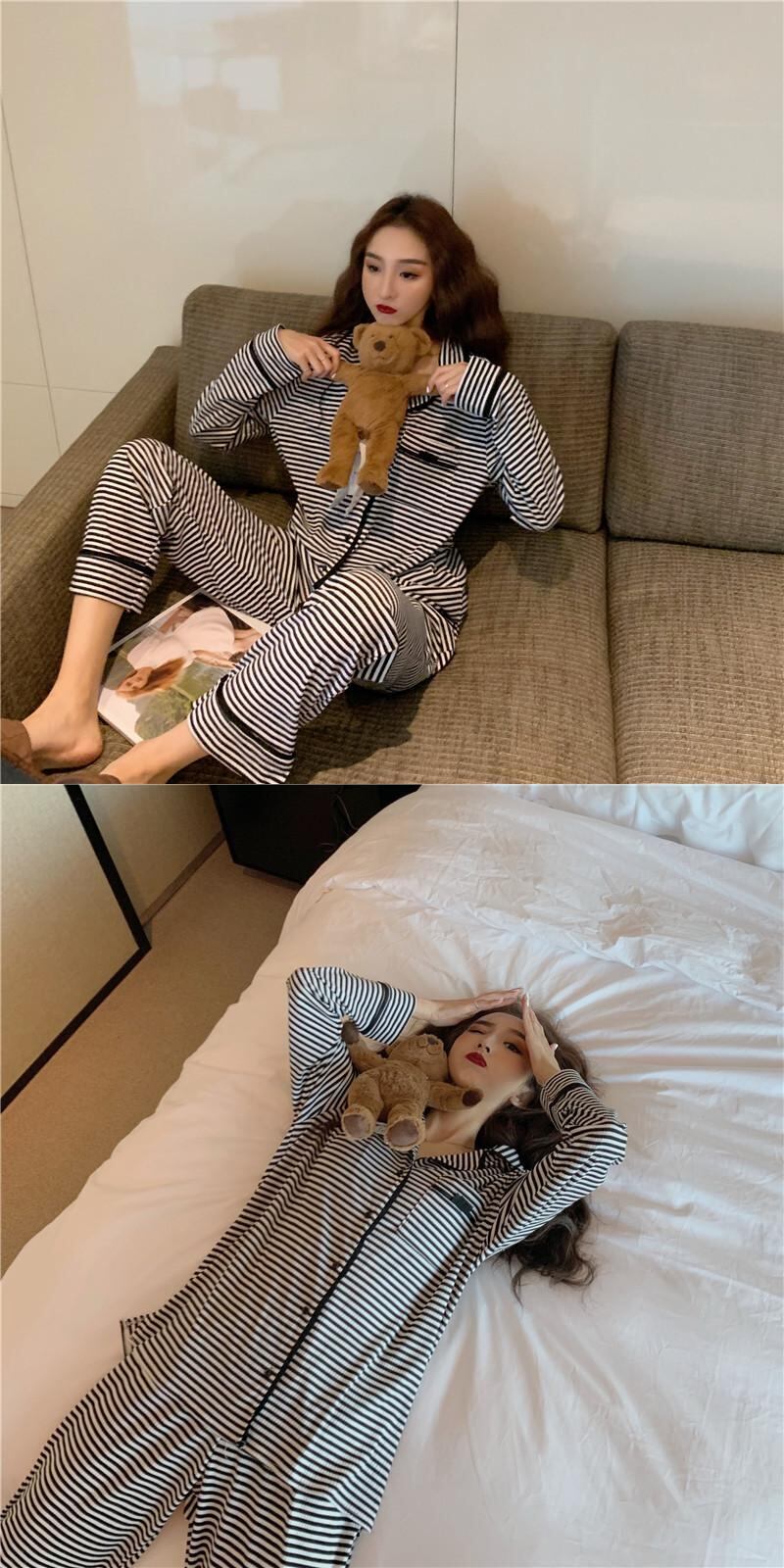 スプリングオータムルーズシャツ ハイウェストウェスト薄手ストライプレディース ロング 春物 秋物 ドラファッションホール72201491476