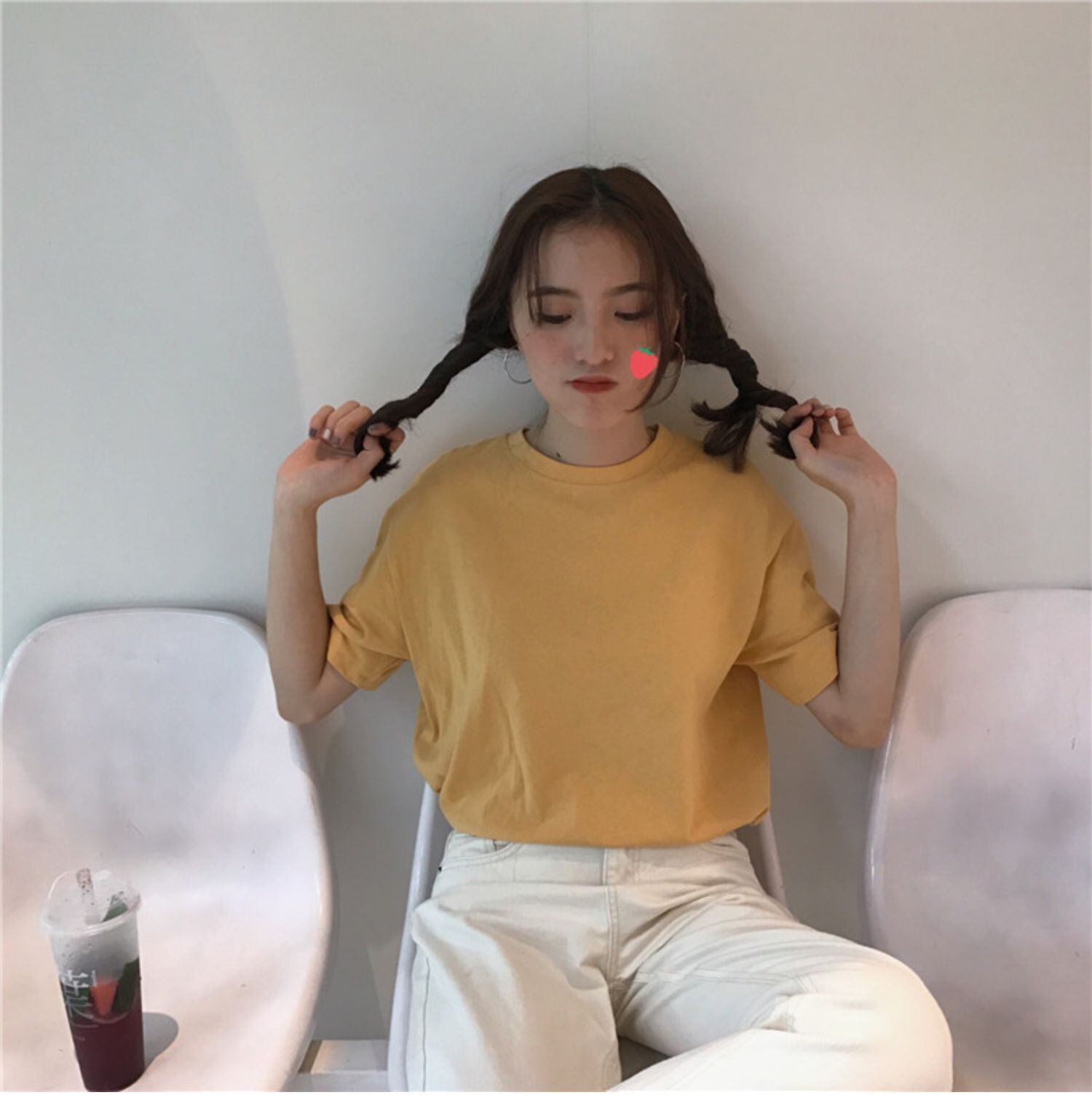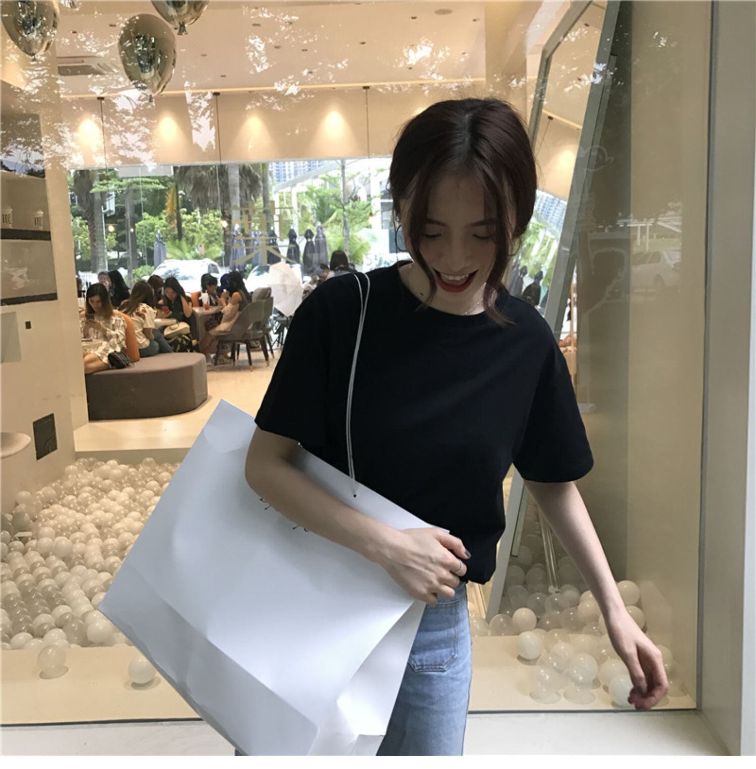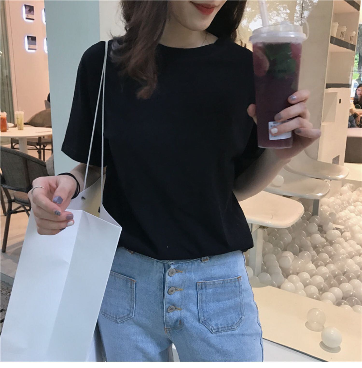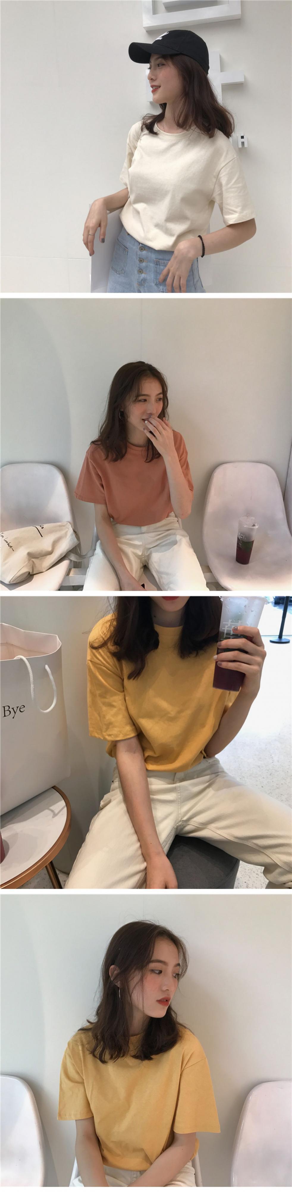 スプリングソリッド カラーラウンドネックトップス スタンダードスリムTシャツ レトロ 春物 Oネック ソリッドカラー ドラファッションホール13119959808