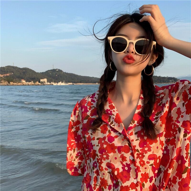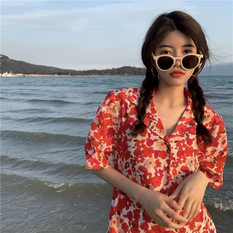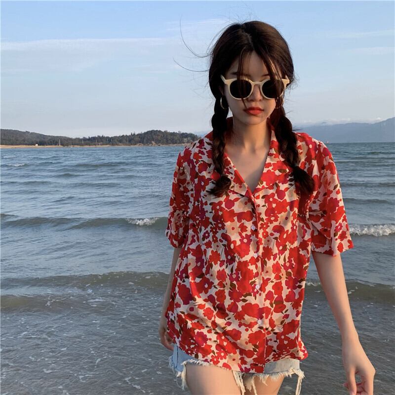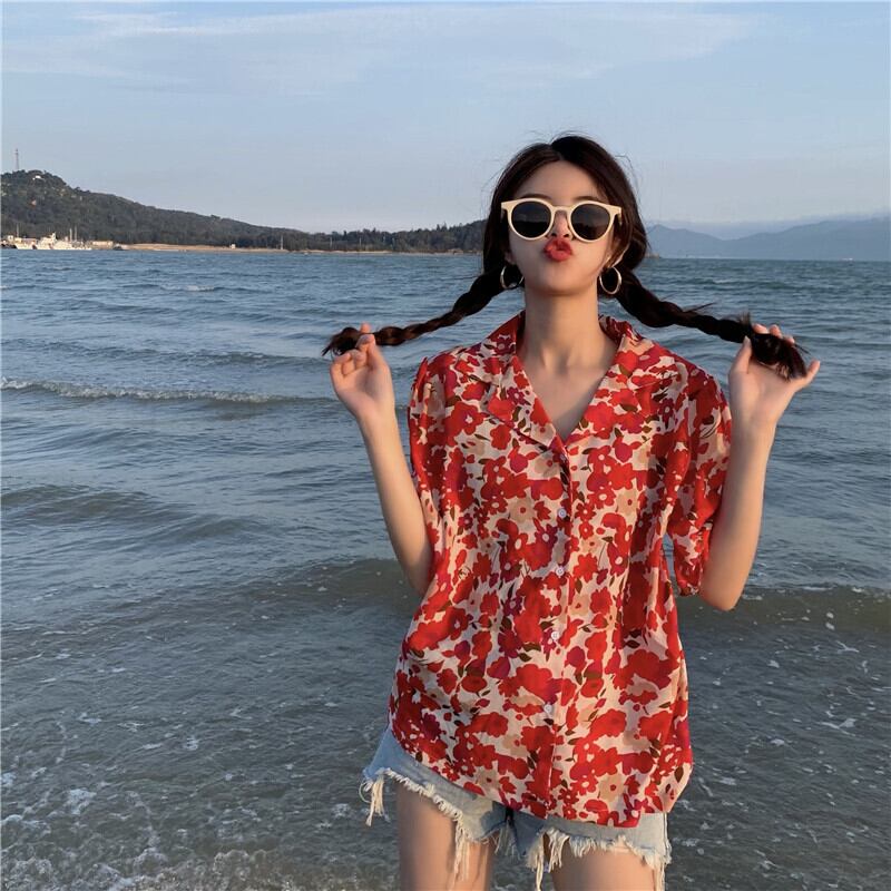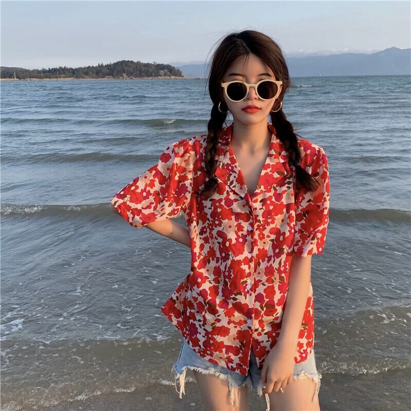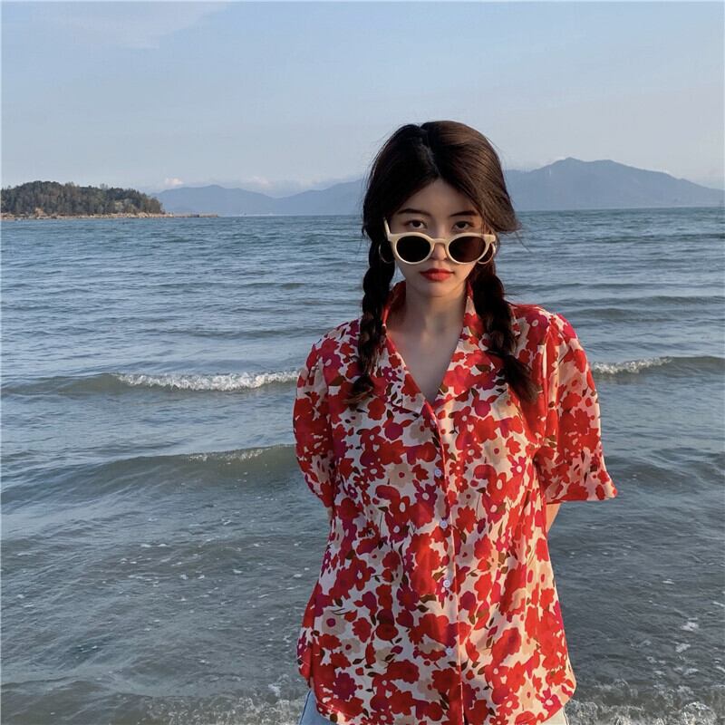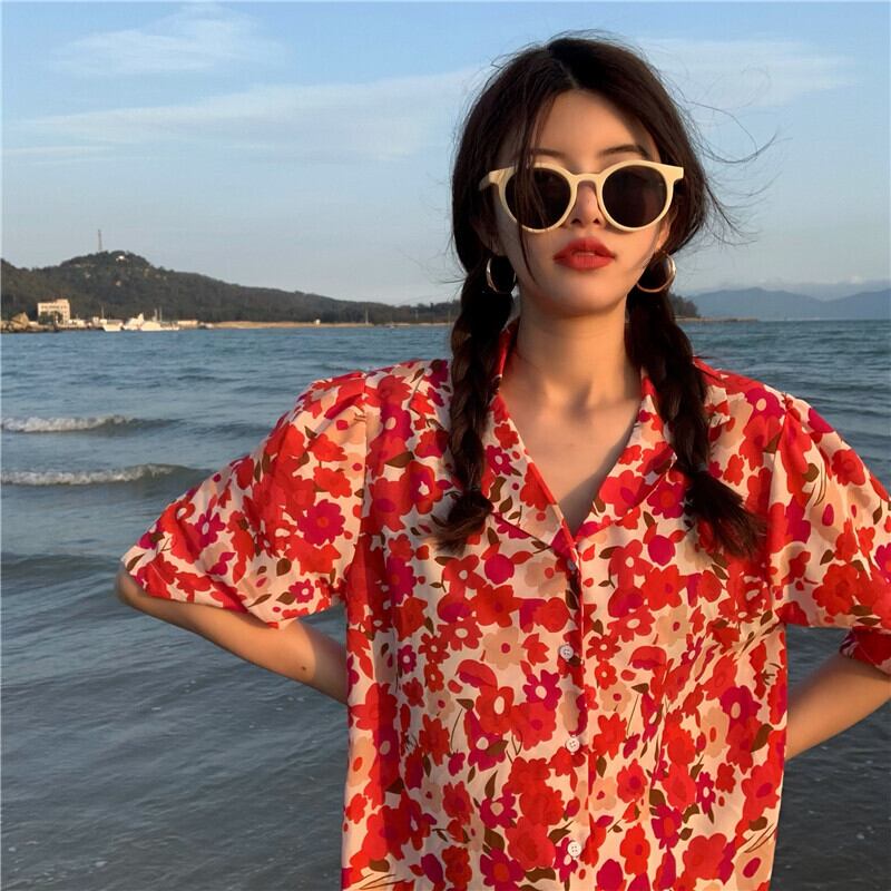 スタンダードFlowerデザイン シャツ 半袖スリーブレッド薄手フローラルルーズトップス ショート レトロ ハーフスリーブ 花柄 フラワーデザイン ドラファッションホール60988075342
