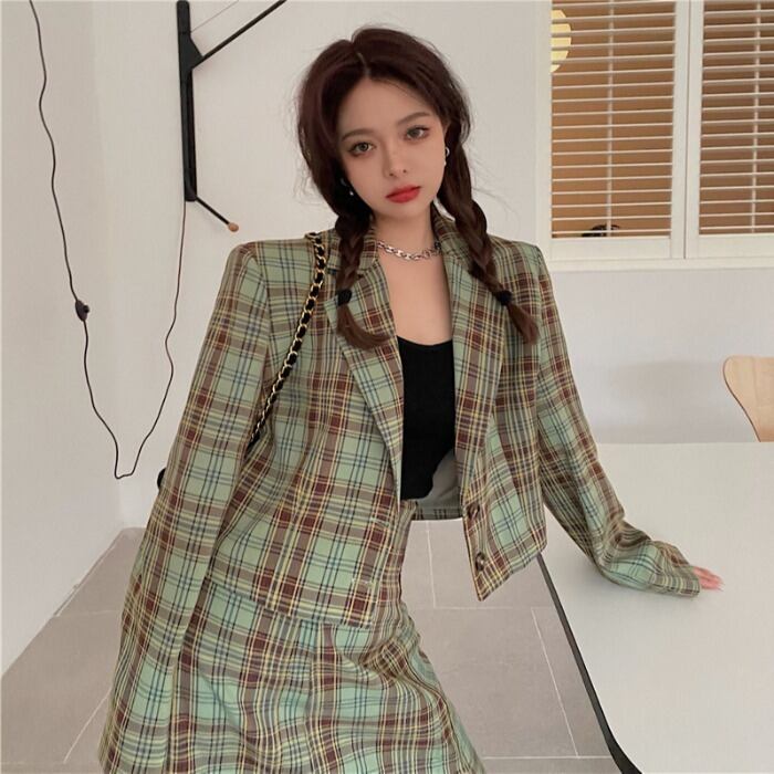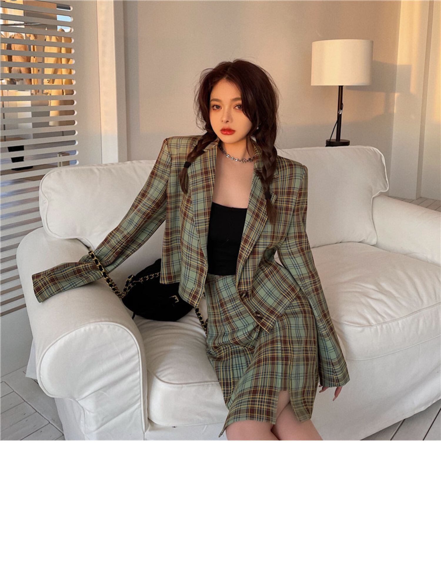 スプリングスタイルルーズ格子柄ジャケット ハイウェストウェストスカート 春物 ドラファッションホール36613487523