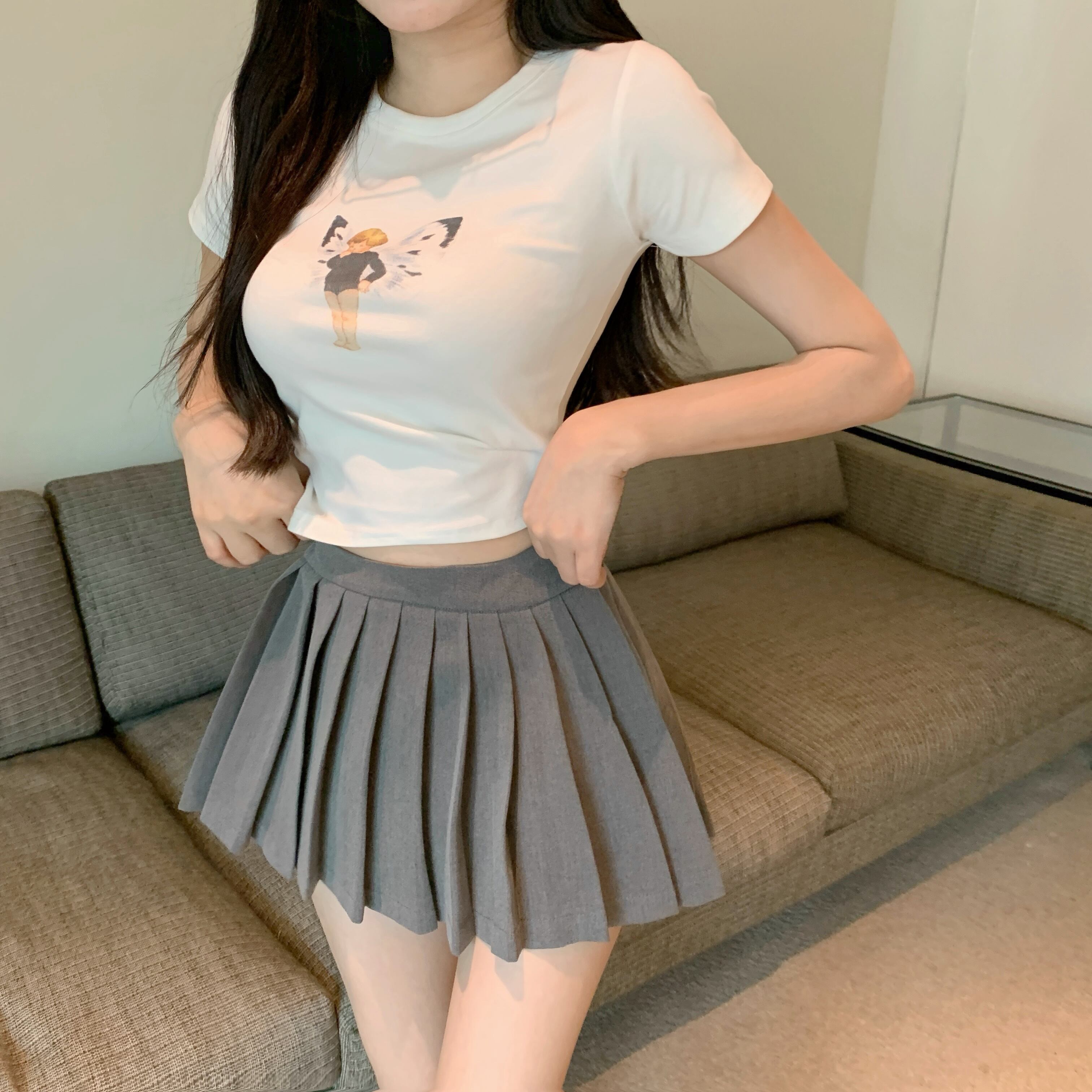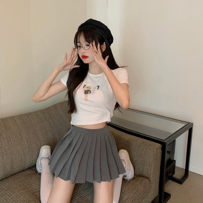 プリント柄ショートTシャツ ロングウェストプリーツスカート ドラファッションホール10874311819