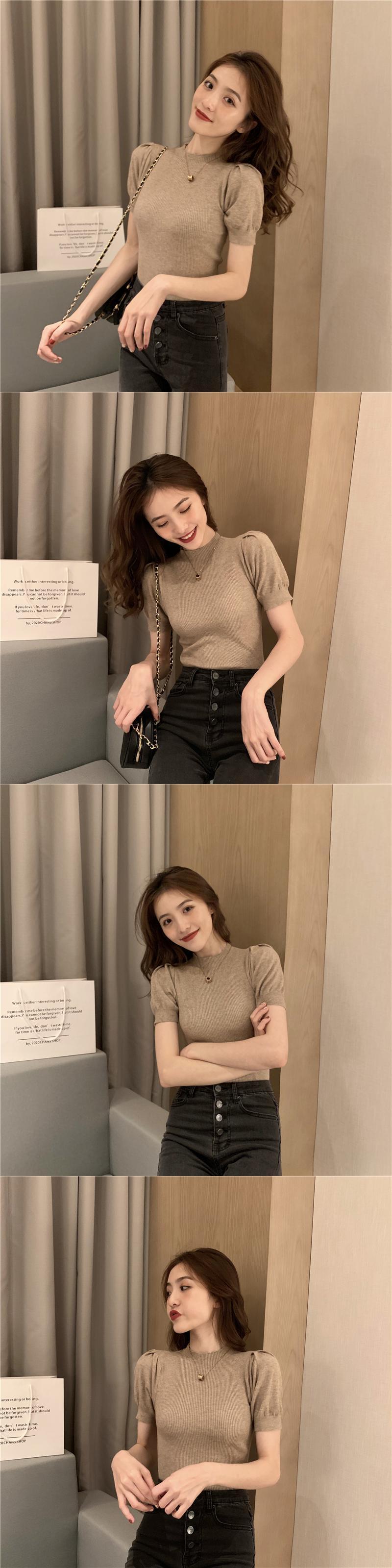 スリーブスタンダードニットショートブラウス スプリングスリム薄手スタイルシャツ レトロ 春物 ドラファッションホール85514607441