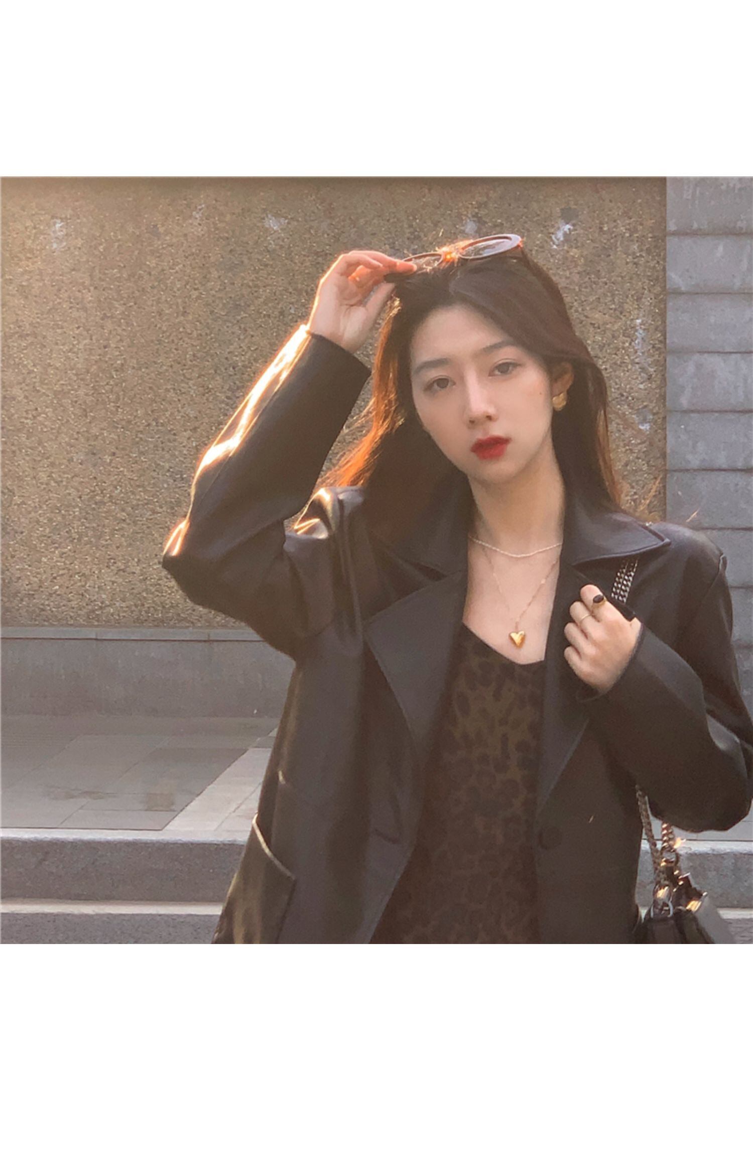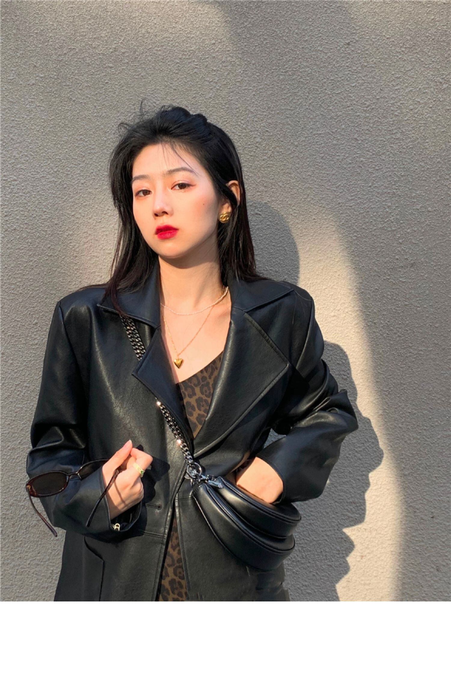 色:ヒョウ柄キャミソール,レザーブレザー