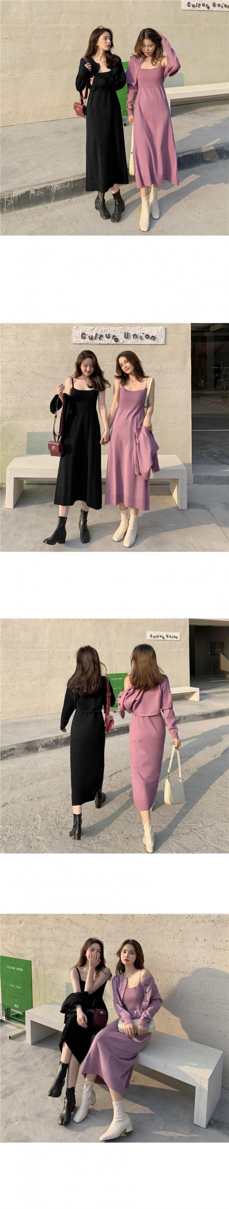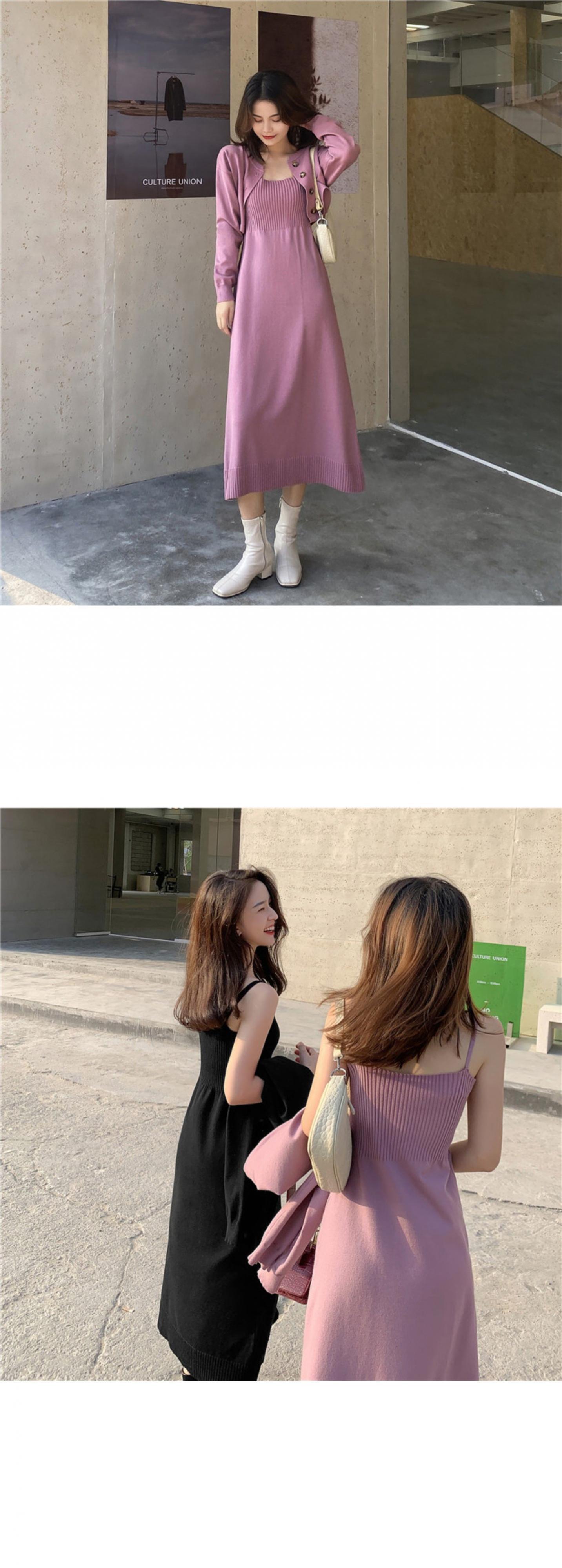 レディーススプリングショートスタイルカーディガンウェストロングドレス 春物 ドラファッションホール93423402857