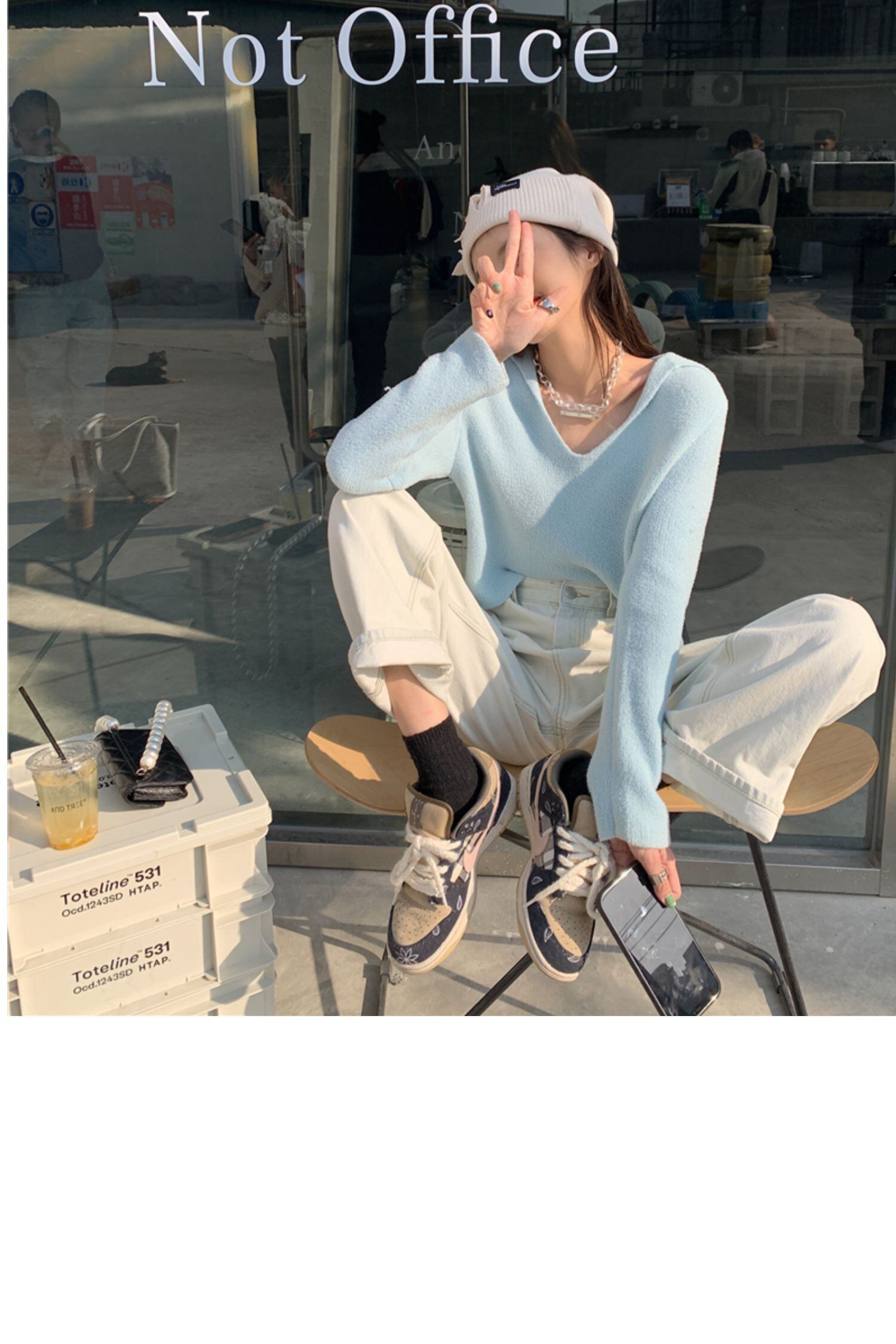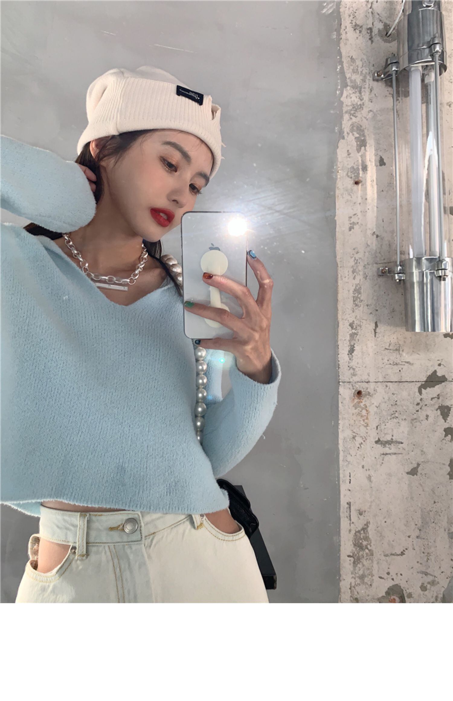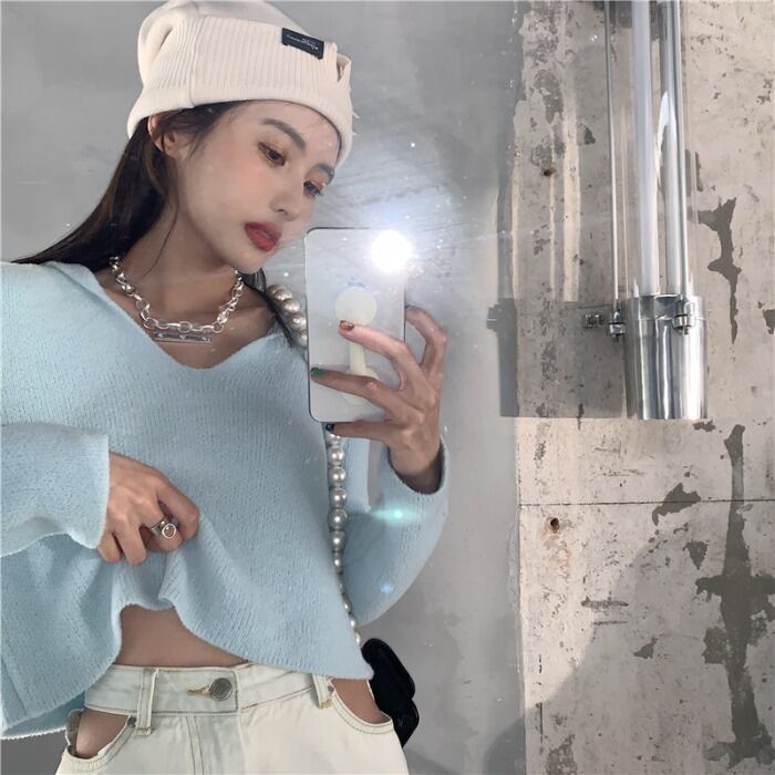 スプリングスタンダードブルースタイルセーター ショートレッド ロング レトロ 春物 ドラファッションホール36736549916