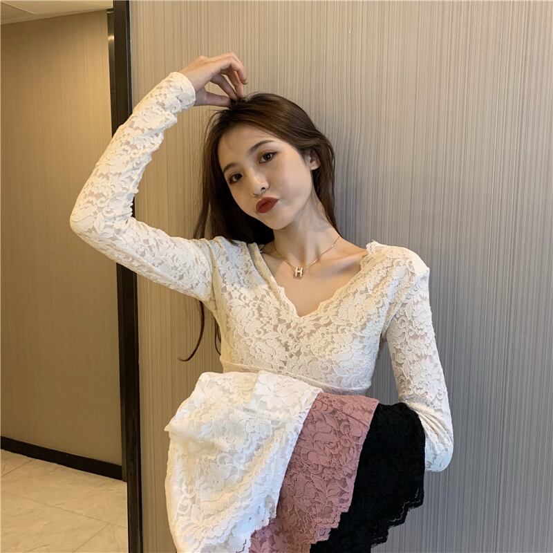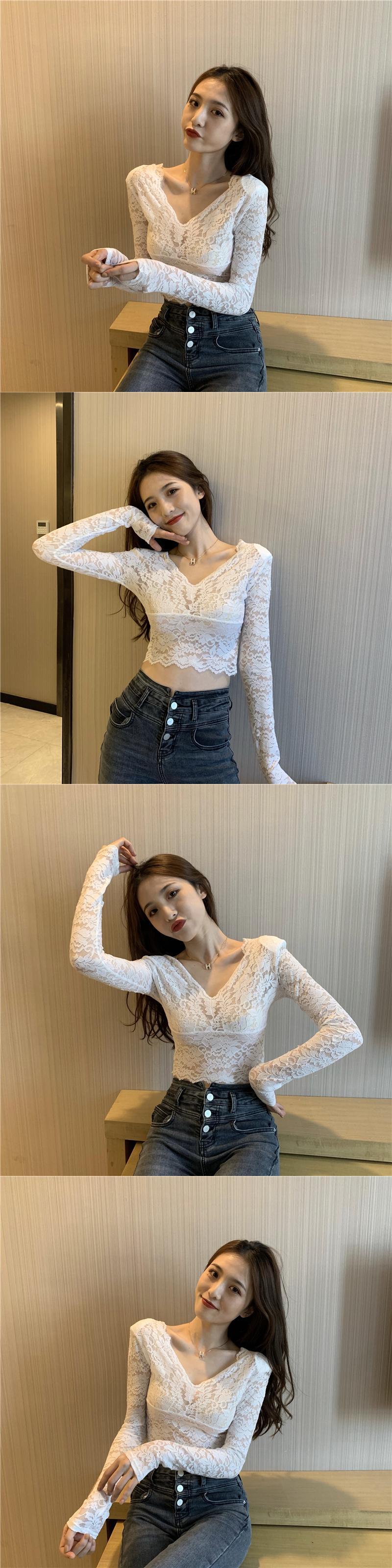 レースシャツ スプリングスタイルスリム薄手Vネックショート ロング 春物 ドラファッションホール81187591495