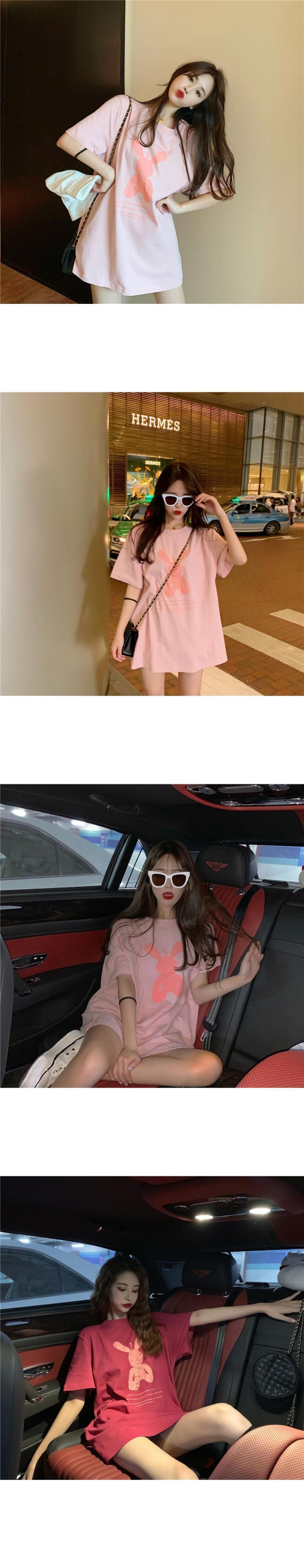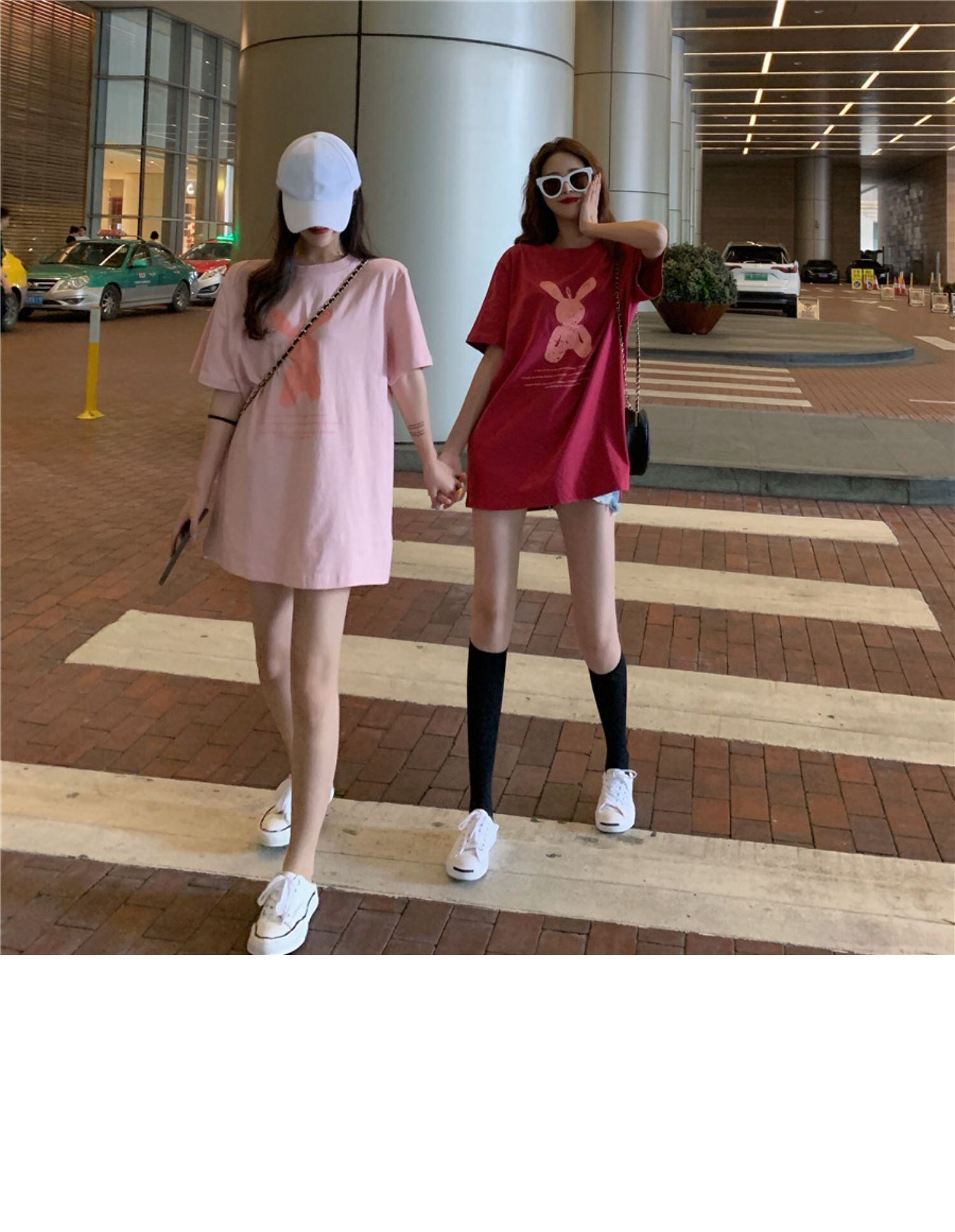 サマースタンダードプリントレッドシャツ ルーズ薄手Tシャツ レディース レトロ 大人ガーリー スウィート キュート カジュアル 夏物 ドラファッションホール74571957114