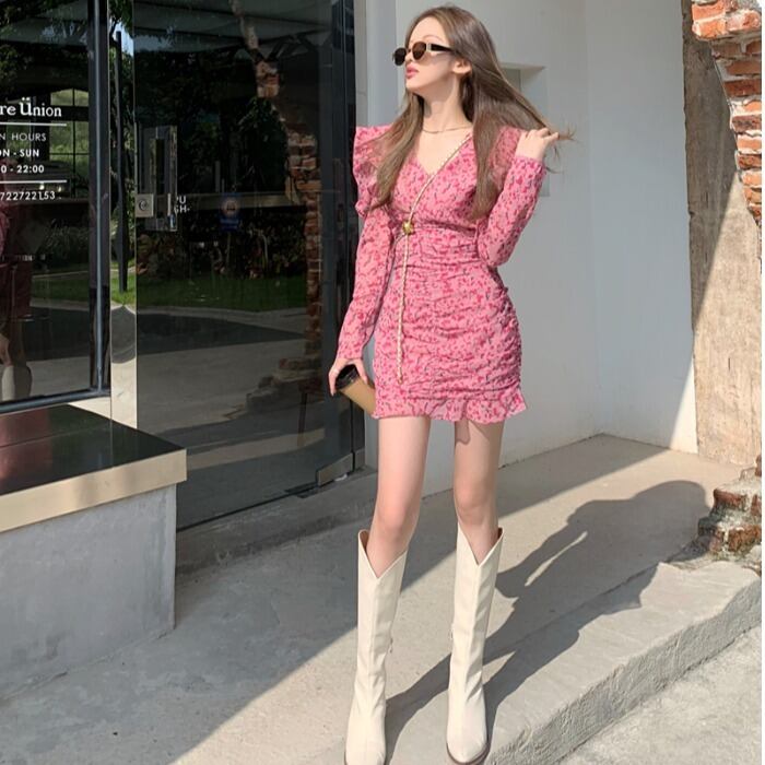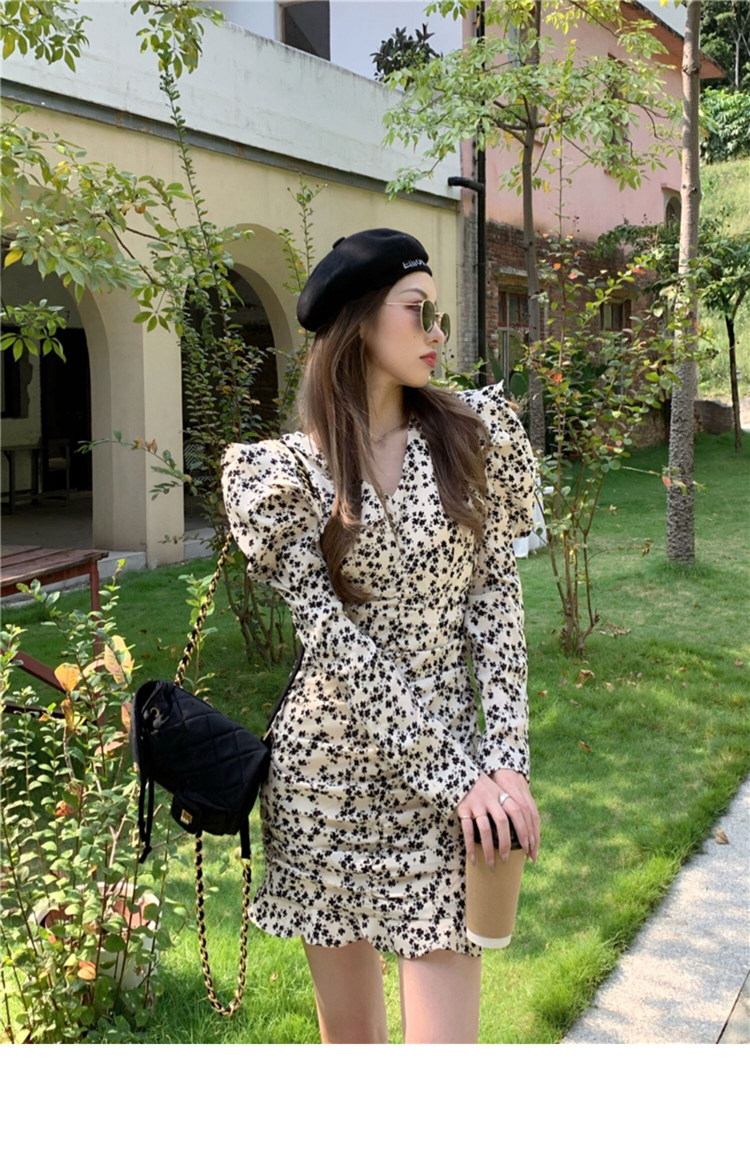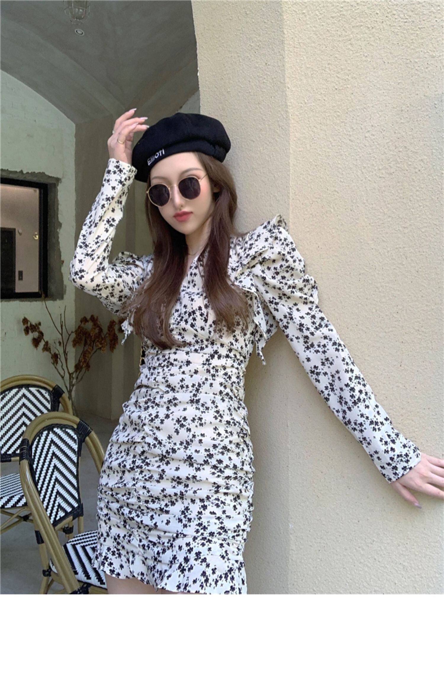 スプリングスタンダードVネックフローラルスカート スリムドレス レディース ロング レトロ 春物 花柄 ドラファッションホール84593506709