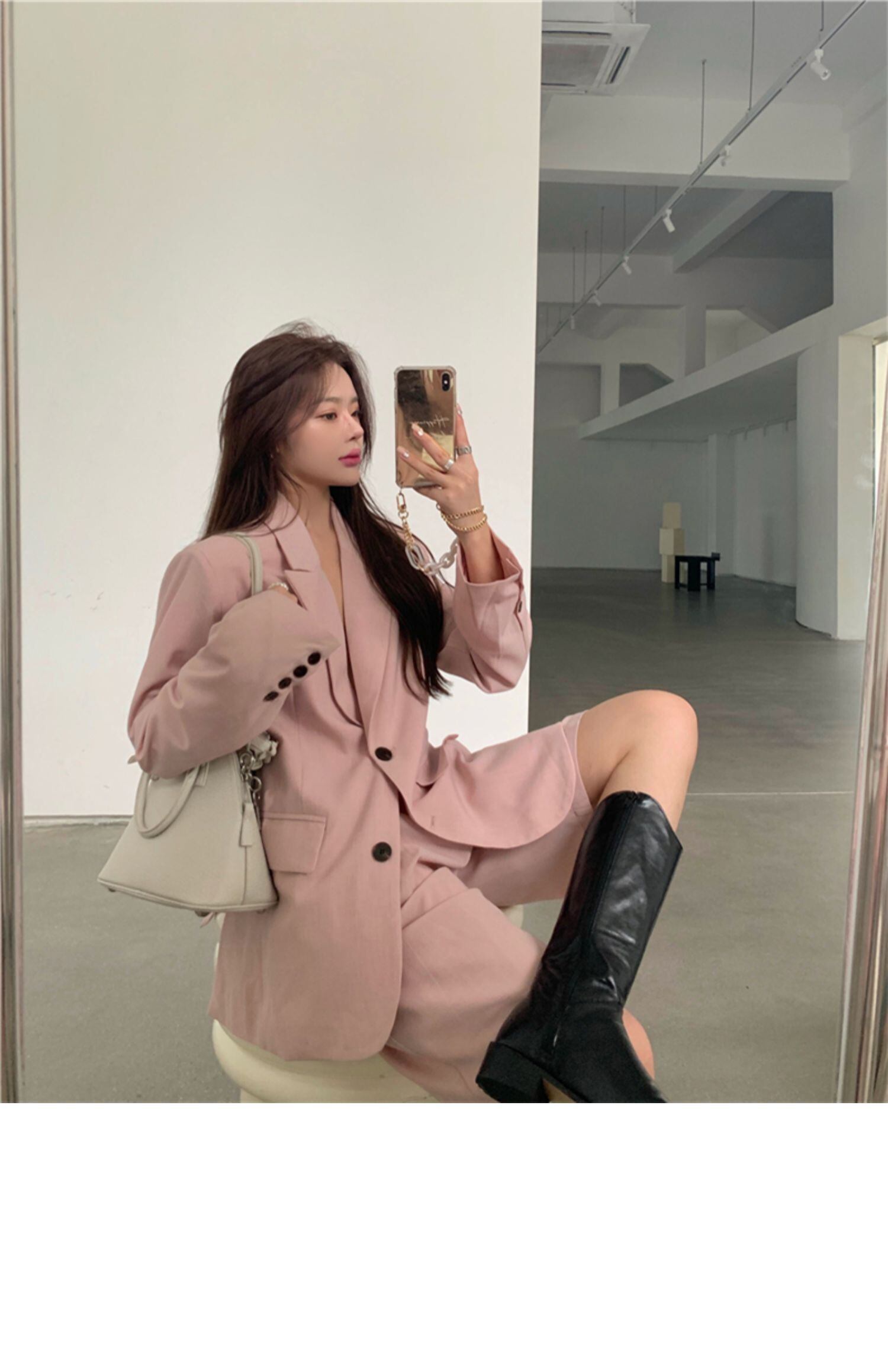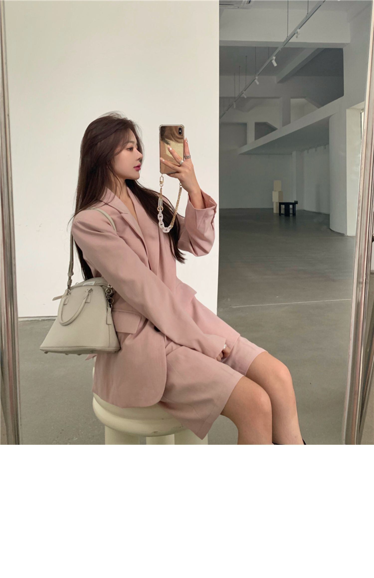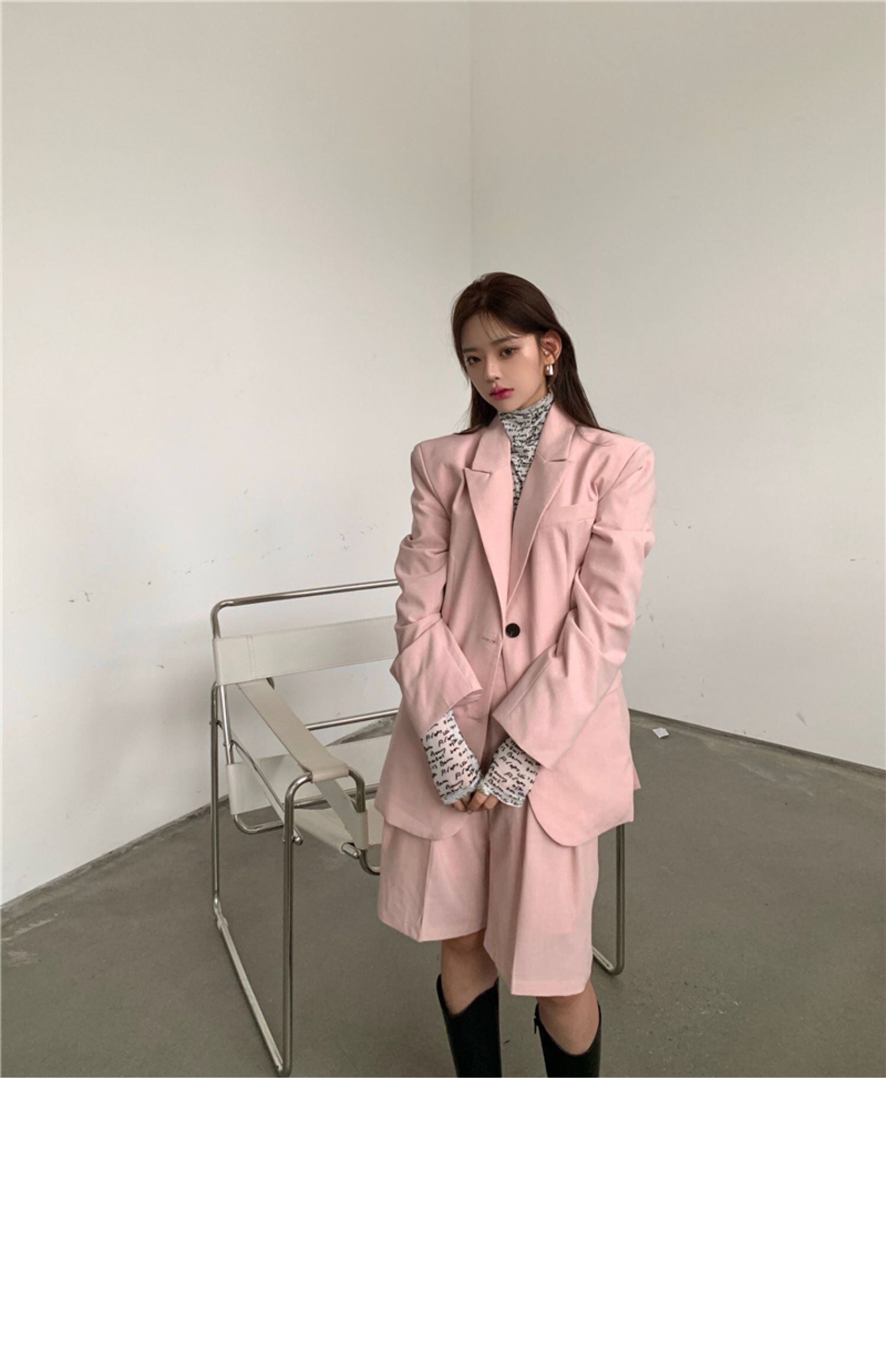 レディーススプリングルーズスタイルジャケット カラーシャツ ショーツ ピンク 春物 ブルマー ドラファッションホール27149933008