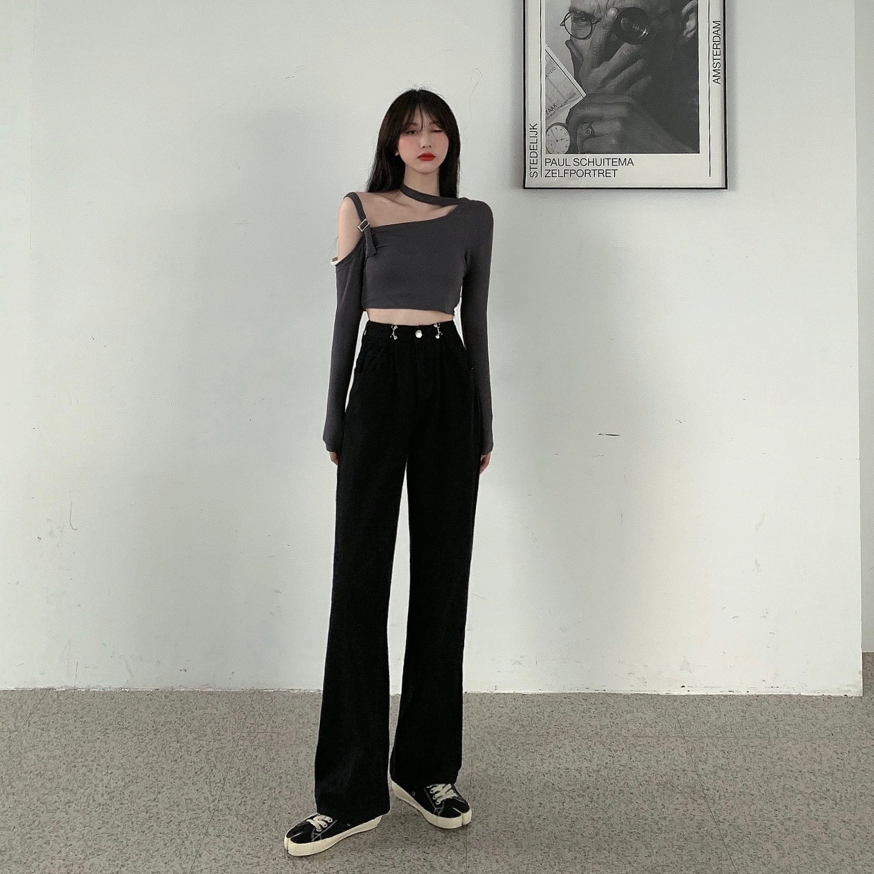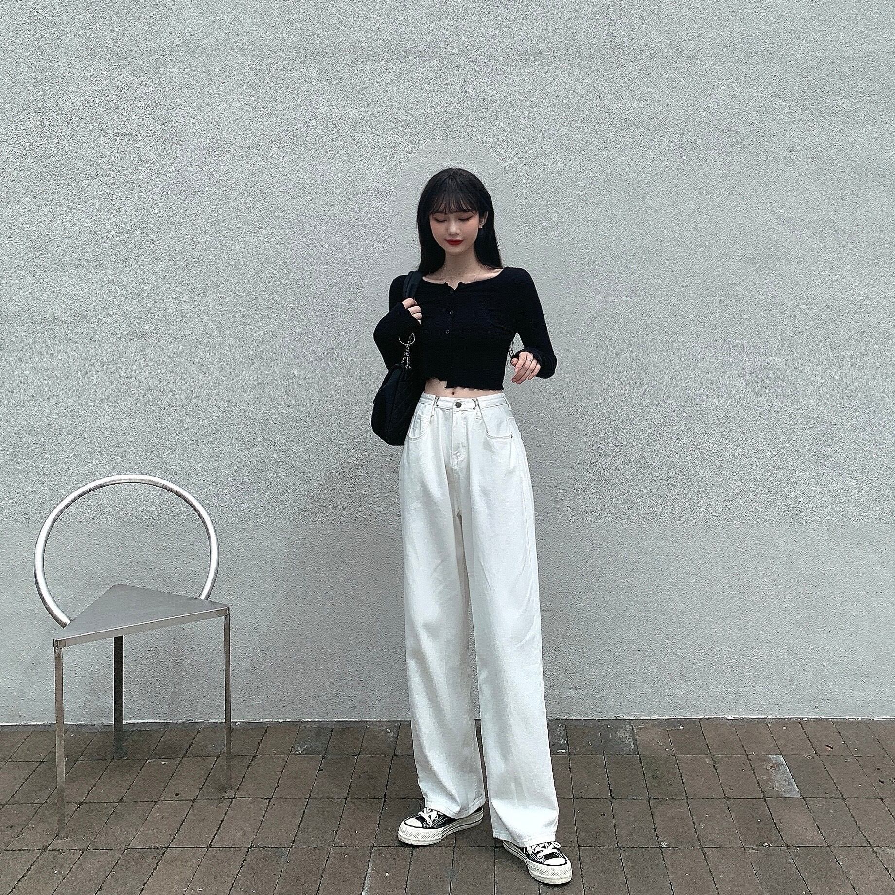 ホワイトジーンズ スプリングオータムスタイルハイウェストウェストスリムワイドレッグパンツ ロング 春物 秋物 ワイドパンツ ドラファッションホール65778396640