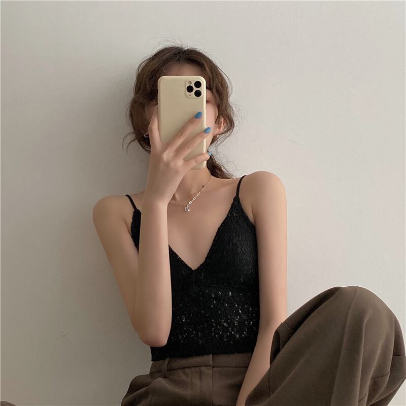 レースサマースリム薄手ノースリーブストラップレスブラックホワイトトップス 夏物 ドラファッションホール26861052635