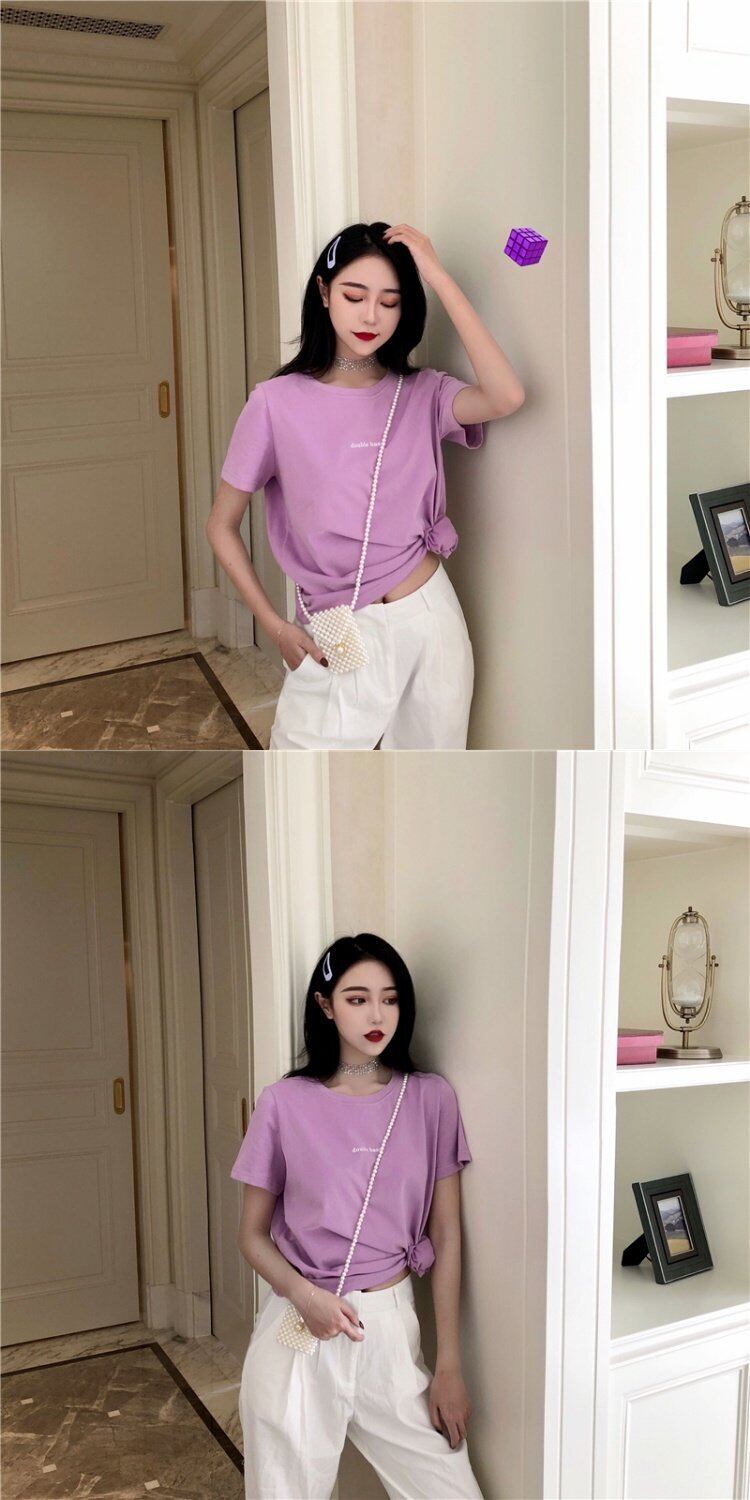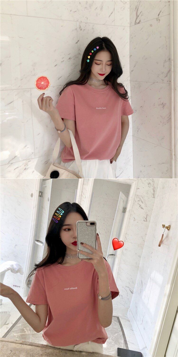 スプリングサマースタンダードカラーレッドシャツ ソリッド ルーズプリントTシャツ レディース レトロ 春物 夏物 ソリッドカラー ドラファッションホール40111060219