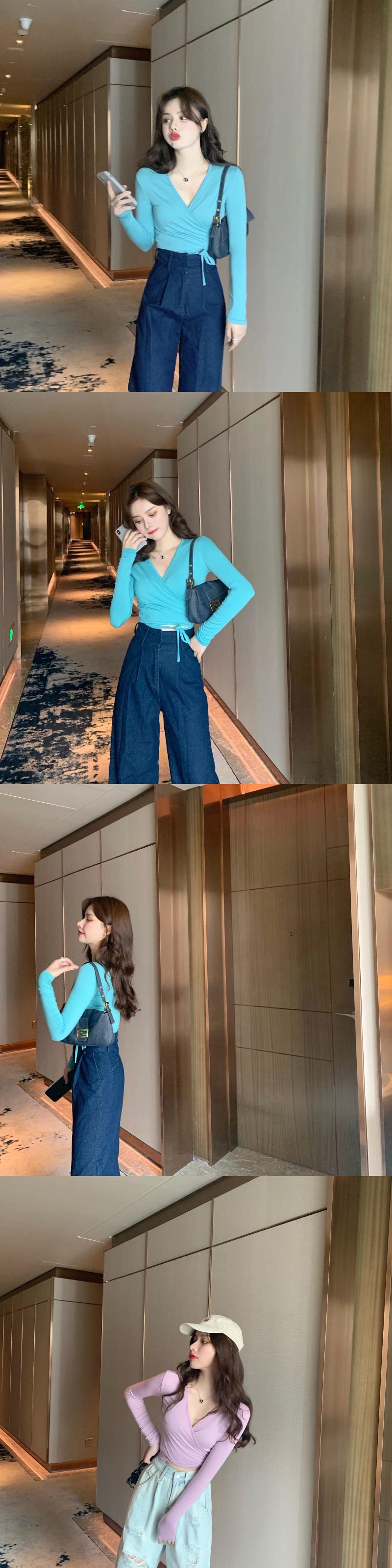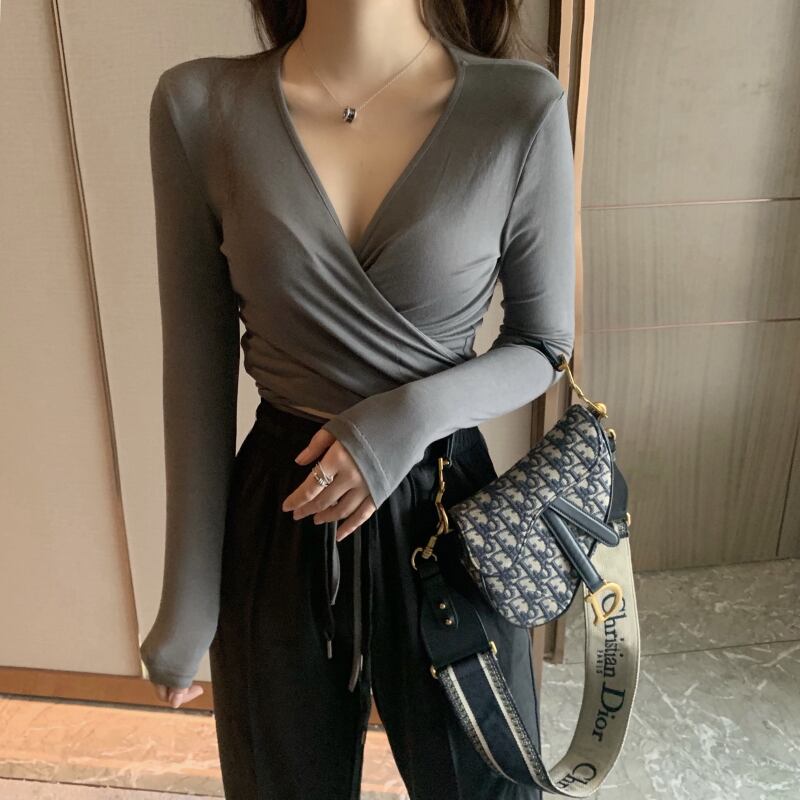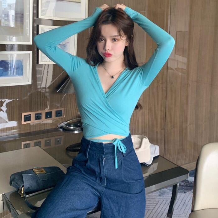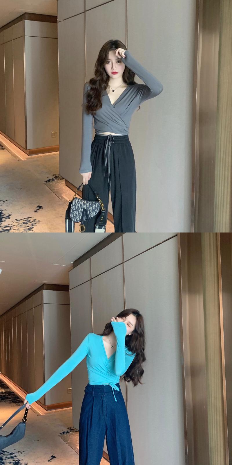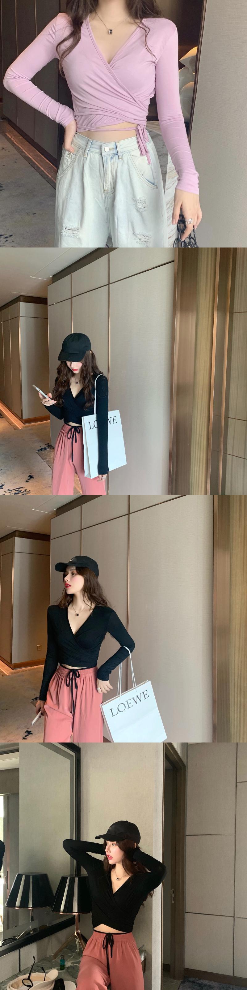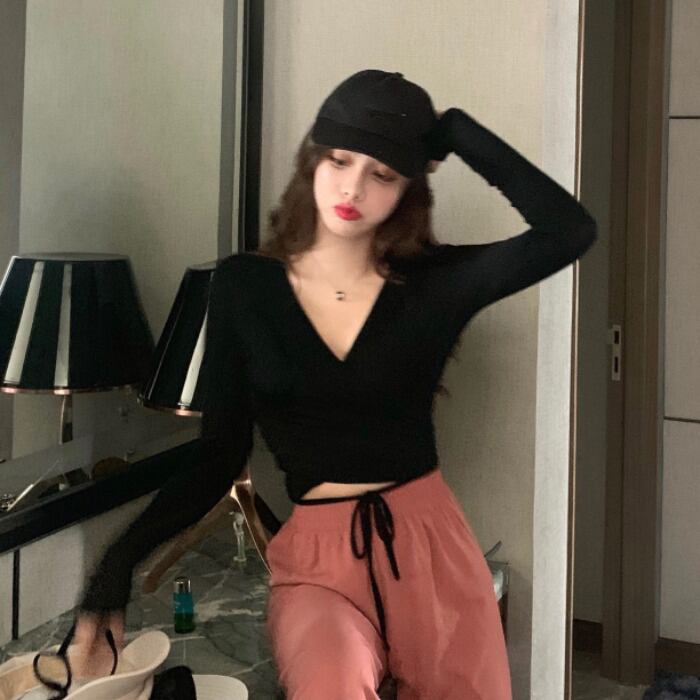スプリングスタイルスタンダードクロスTシャツ Vネックショートカーディガンレディース ロング レトロ 春物 ドラファッションホール75273303316