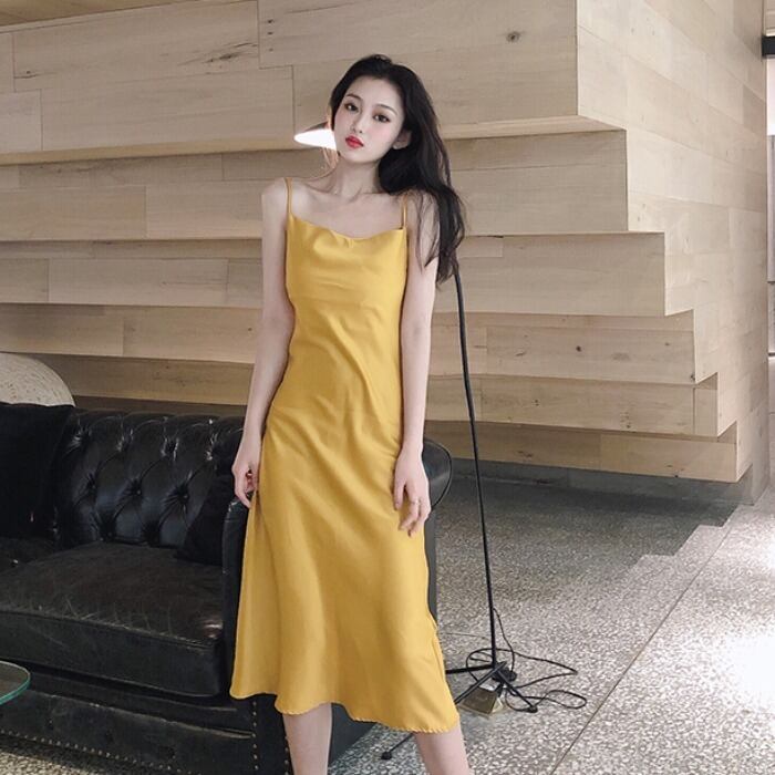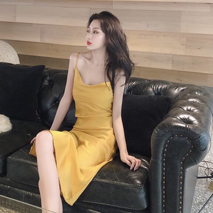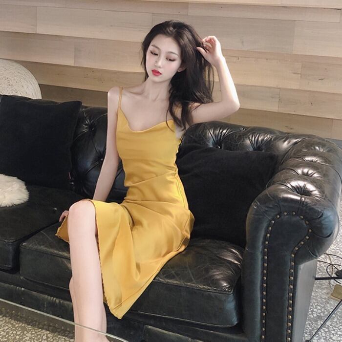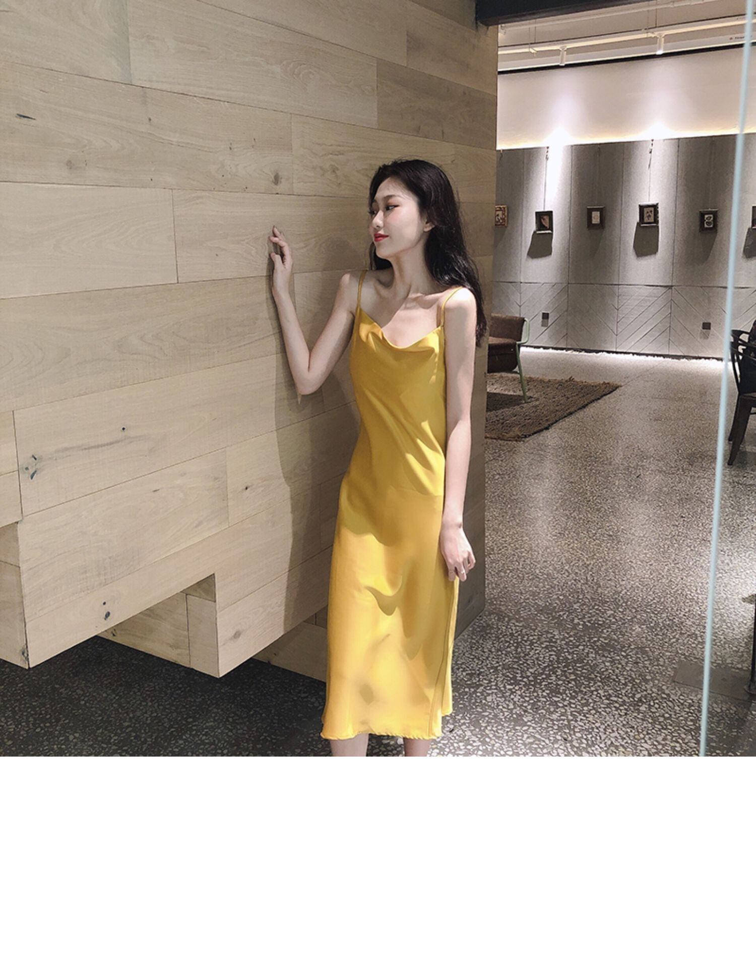 スカート スプリングサマースタイルスタンダードスリムサテンドレス レトロ 春物 夏物 ドラファッションホール4020572901
