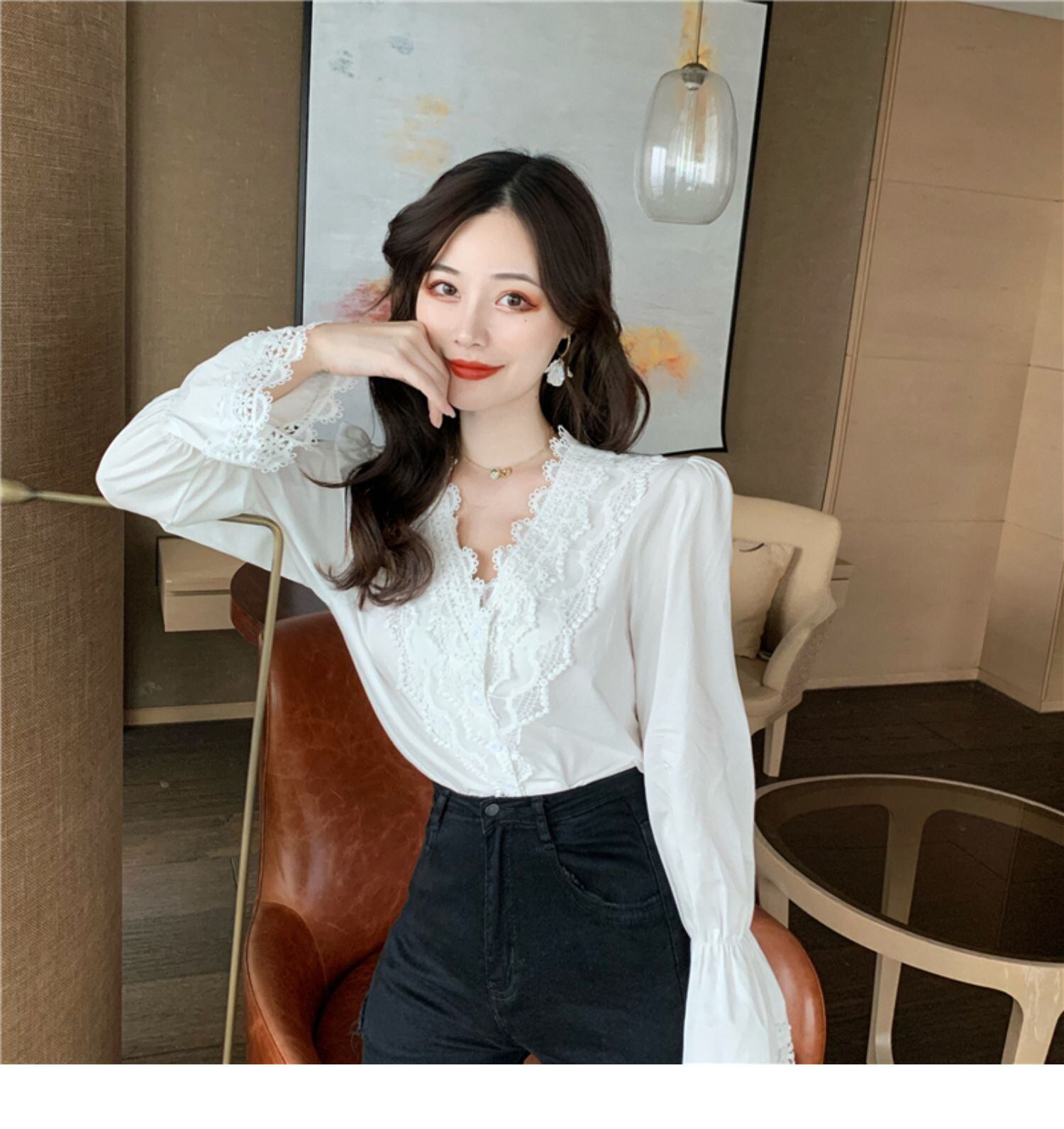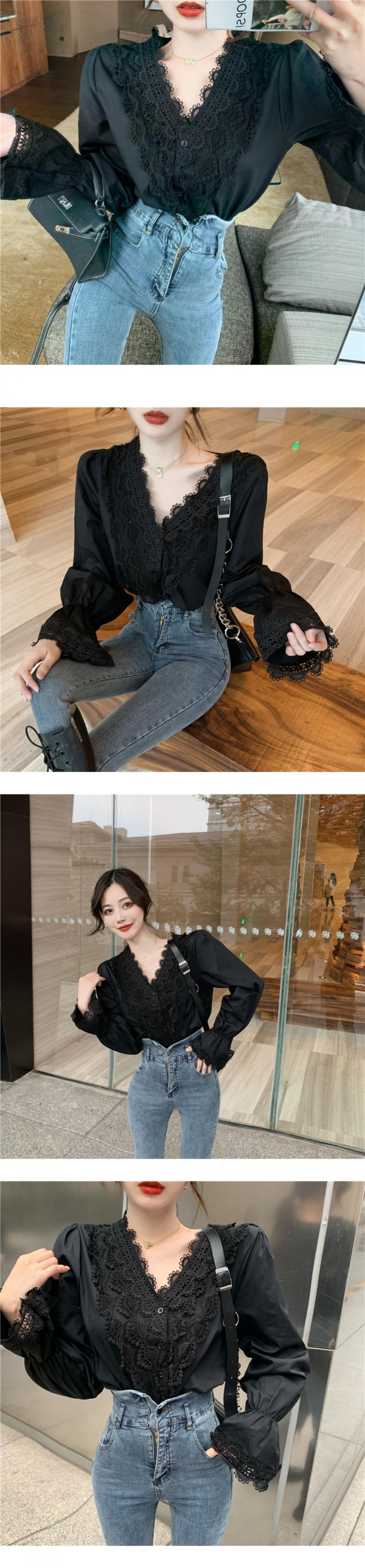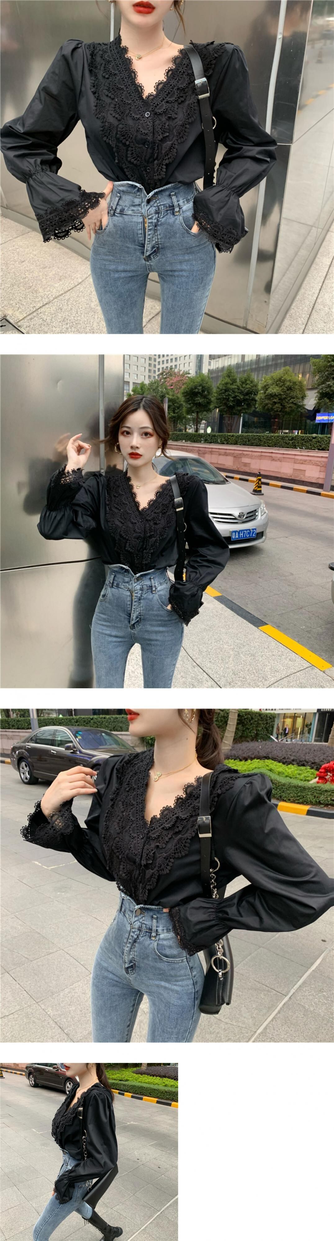 刺繍レーススプリングVネックカーディガンスリーブシャツ 春物 ドラファッションホール93220587301