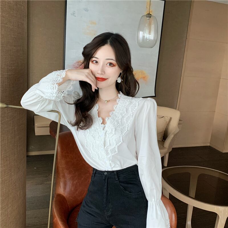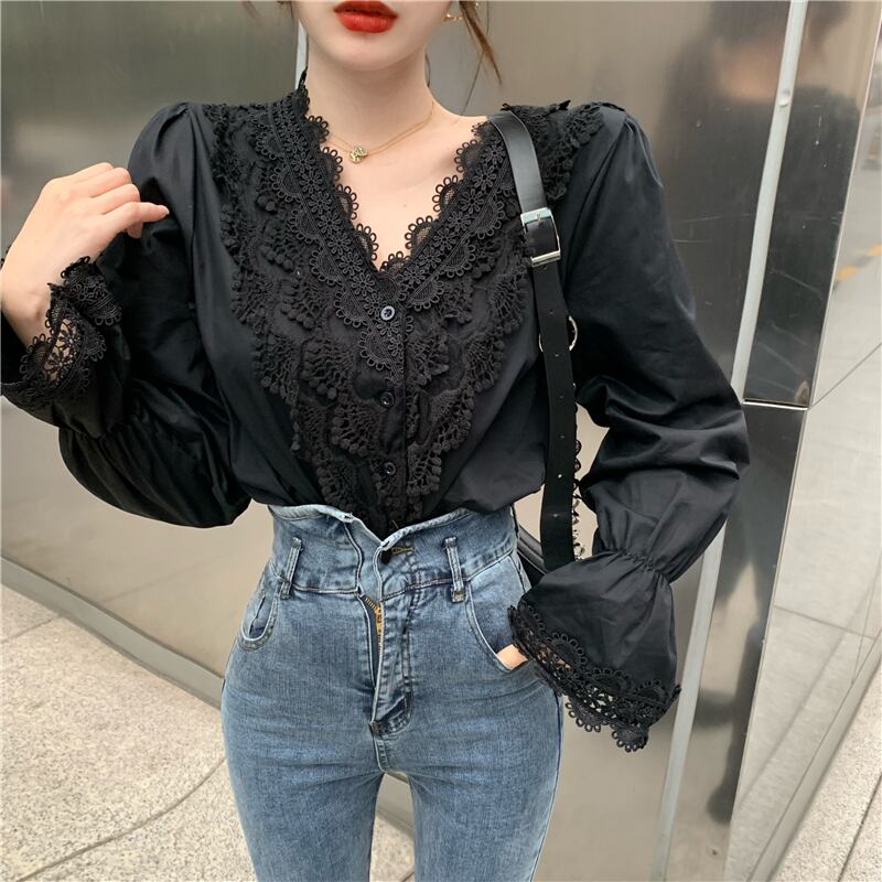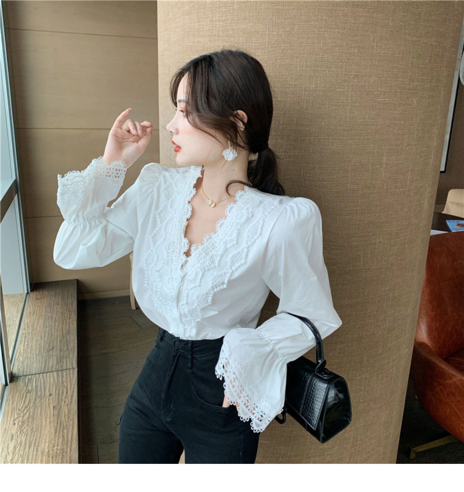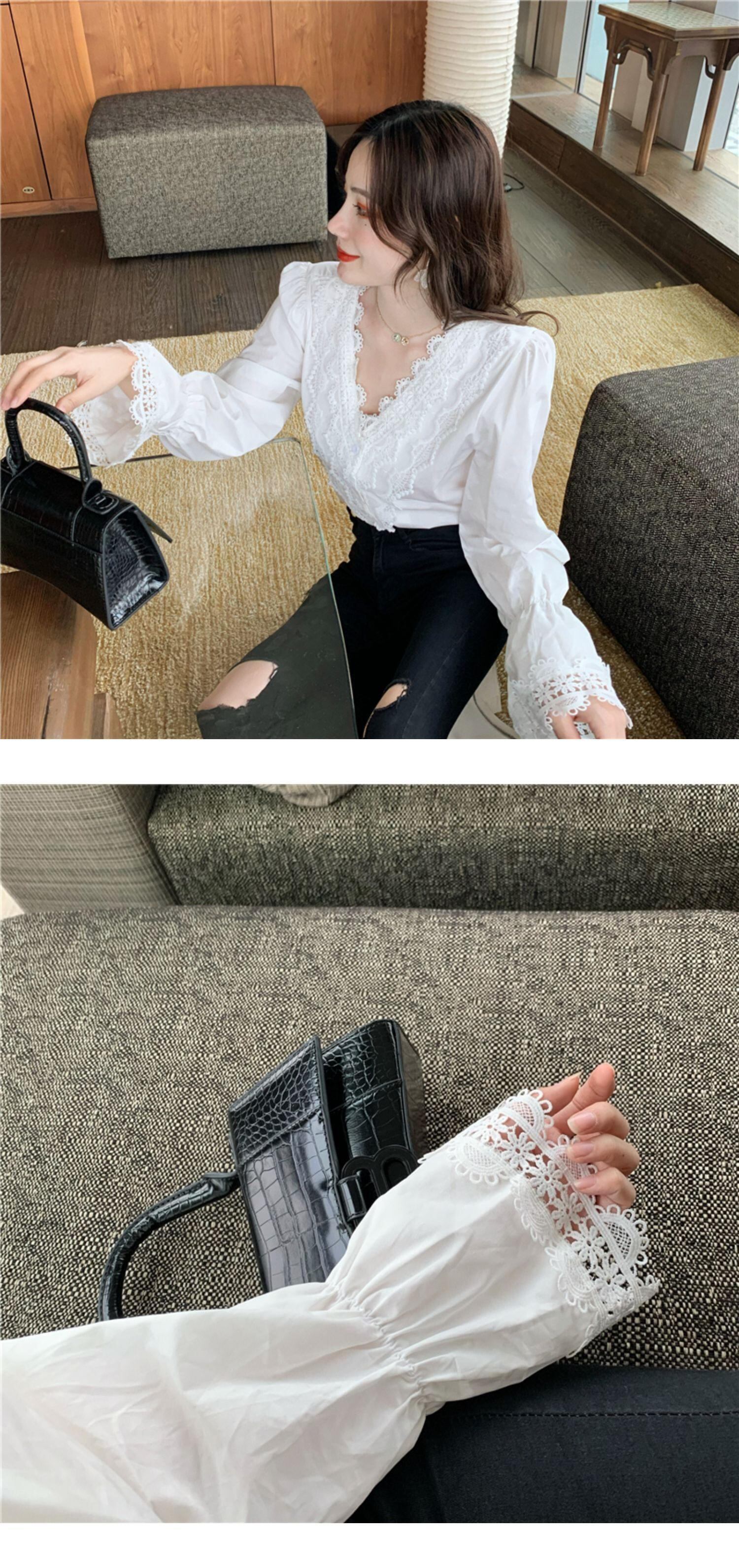 刺繍レーススプリングVネックカーディガンスリーブシャツ 春物 ドラファッションホール93220587301