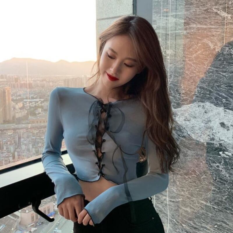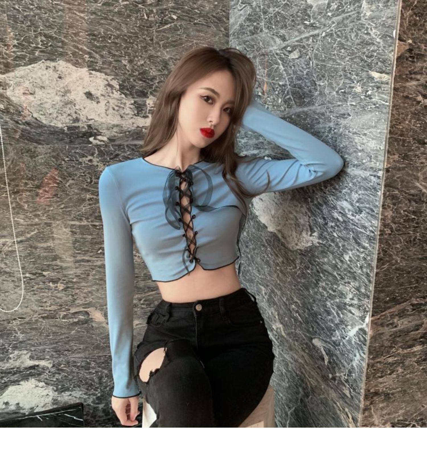 トップス レディーススプリングスタイルスリムショートTシャツ シャツ ロング レース 春物 レースアップ ドラファッションホール71780912349