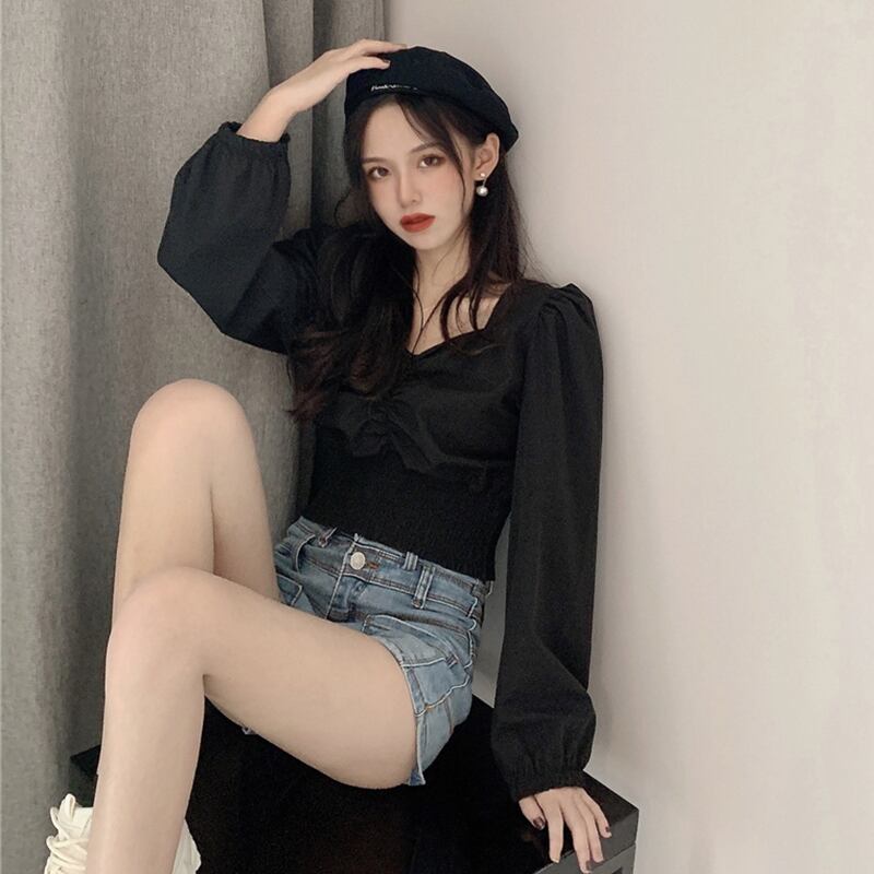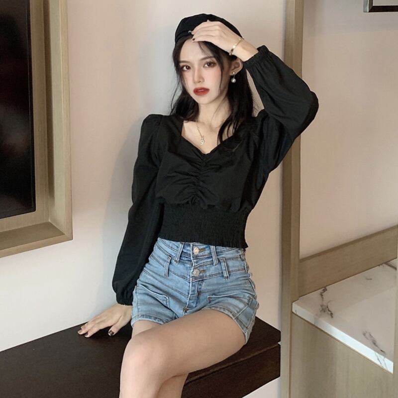 カラーウェストスリムシャツ スプリングスタイルショートトップス レディース ロング 春物 スクウェア ドラファッションホール17597919661