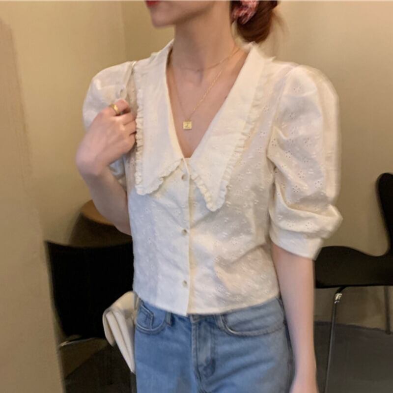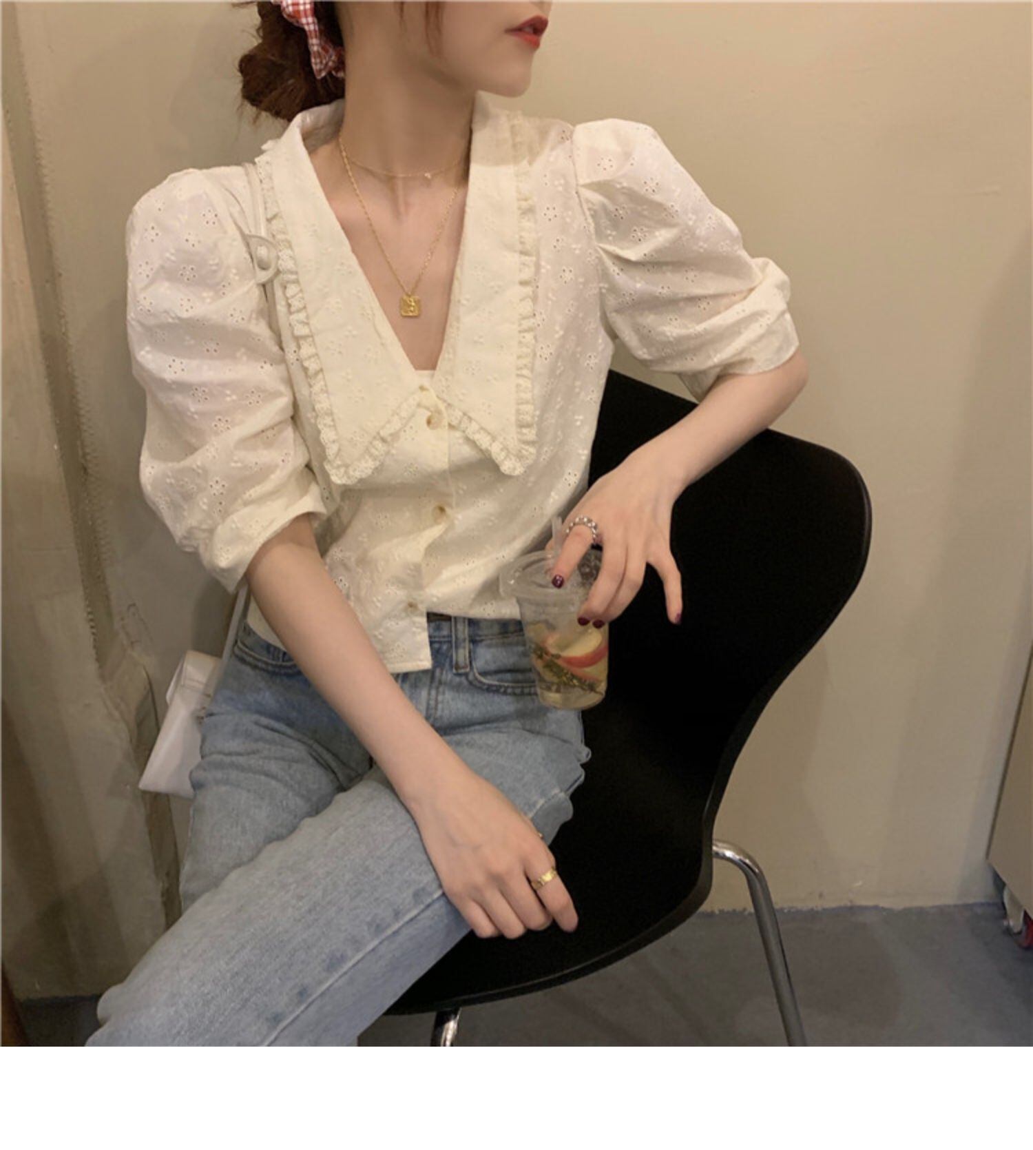 シャツ レディースサマースリーブルーズショートトップス 夏物 ドラファッションホール57450820735