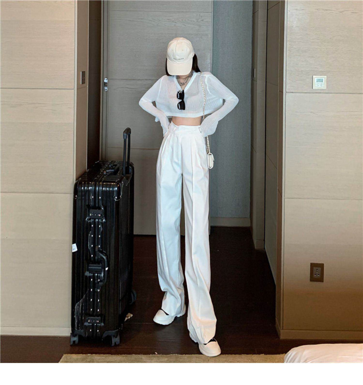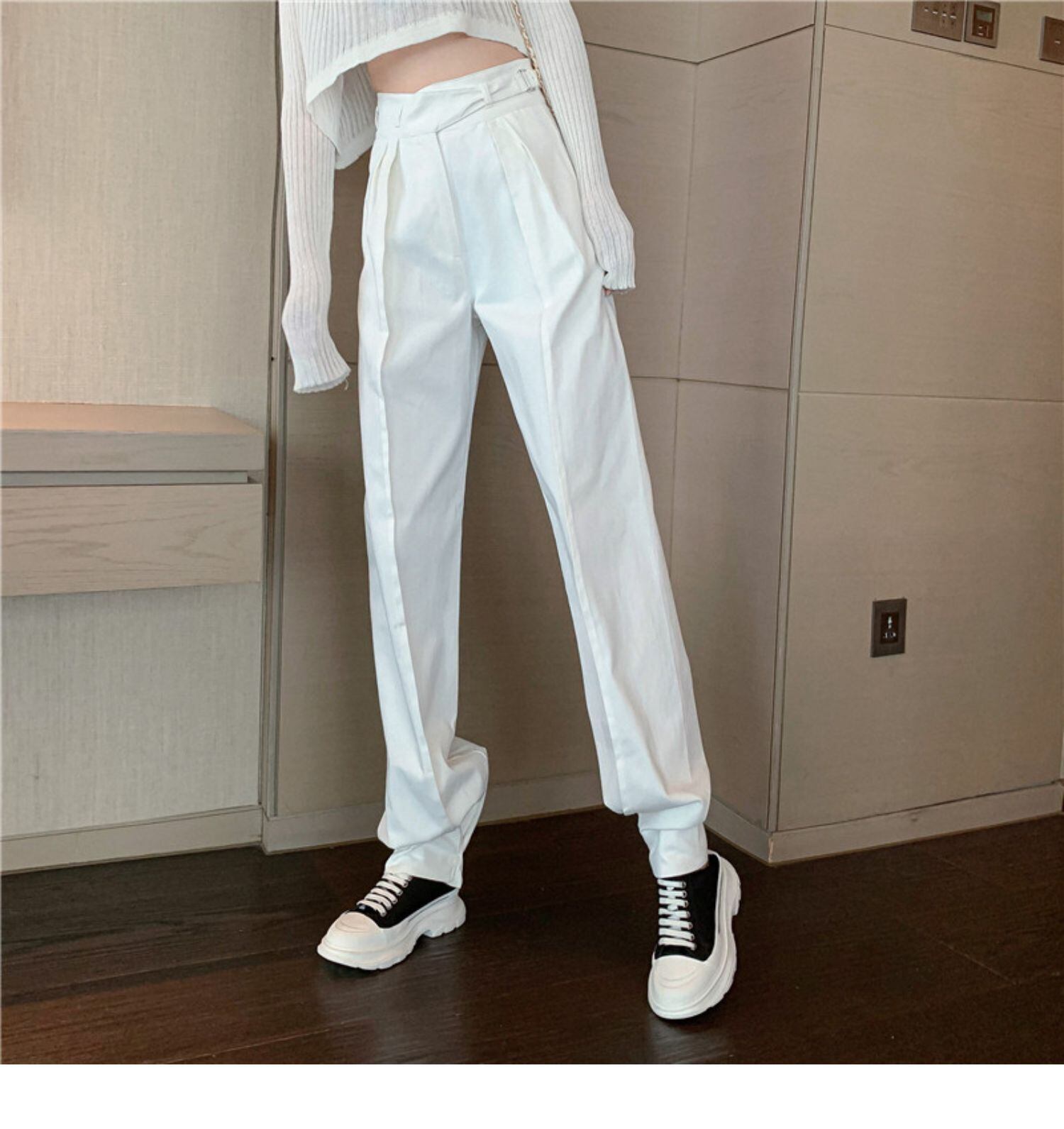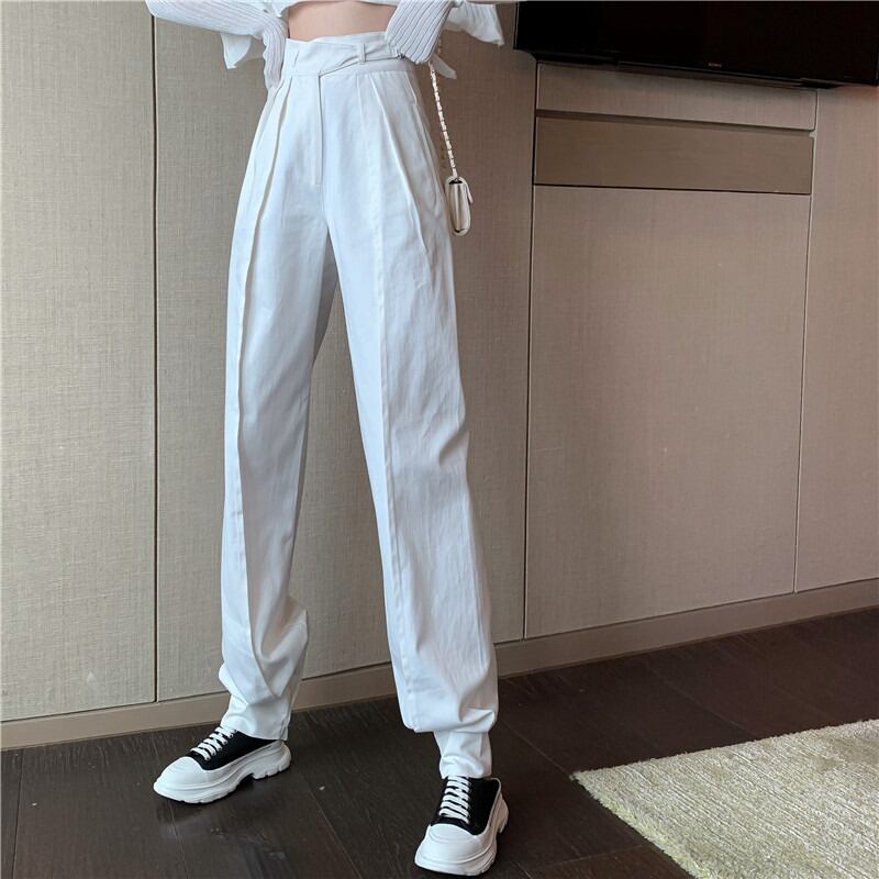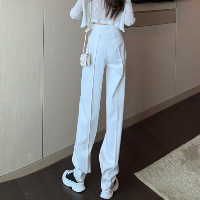 ホワイトカジュアルパンツ スプリングハイウェストウェスト薄手ワイドレッグ 春物 ワイドパンツ ドラファッションホール2245980293