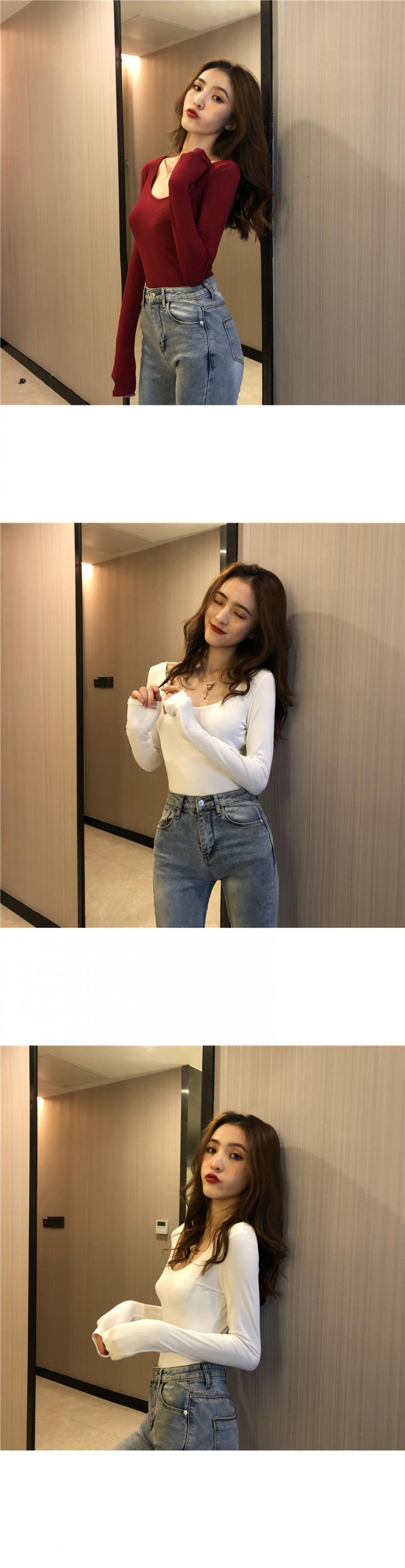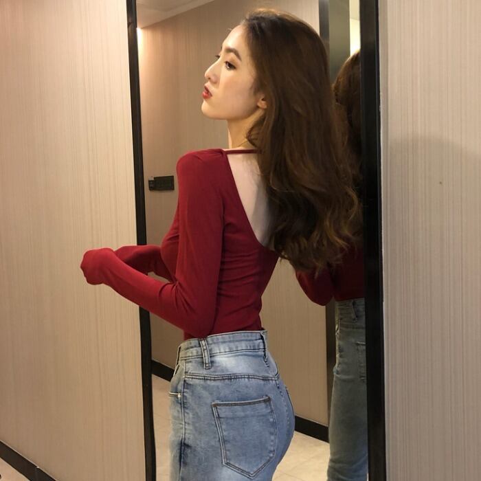 ホルターシャツ スプリングレッドスリムトップス ソリッド カラーTシャツ ロング 春物 ソリッドカラー ドラファッションホール17334412125