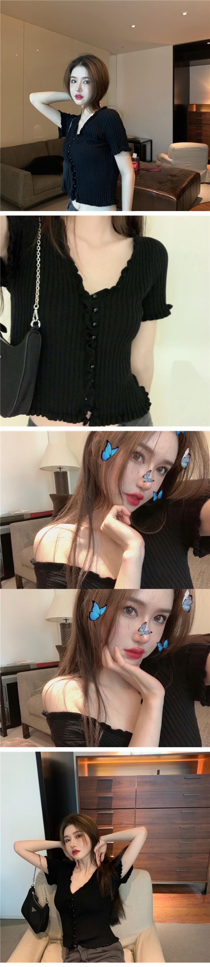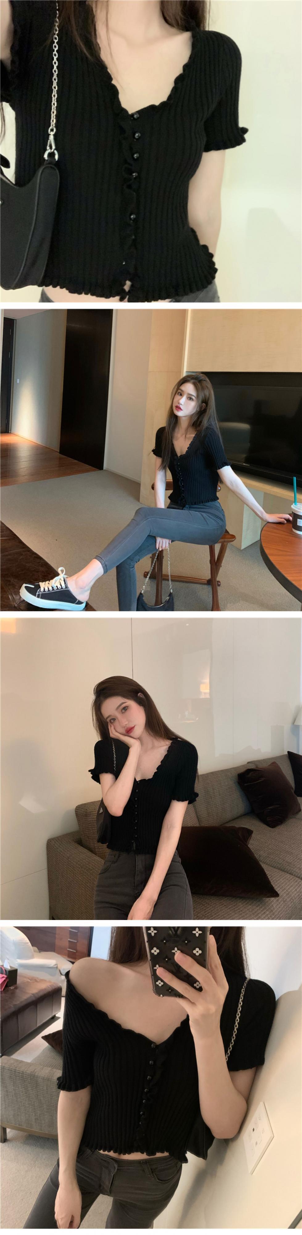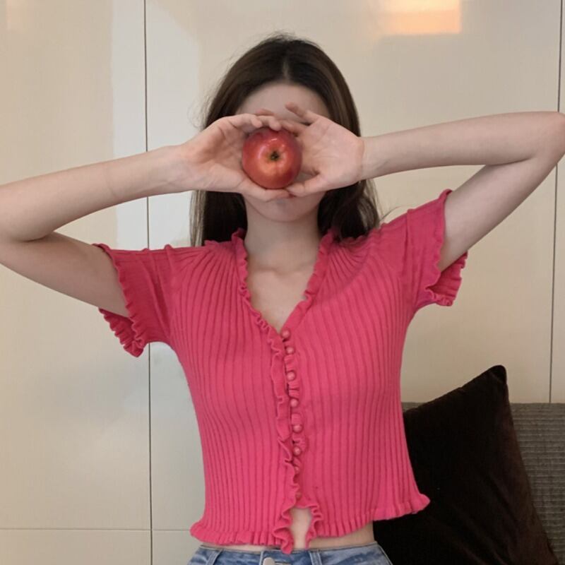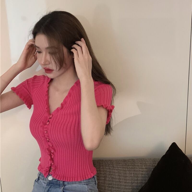 ブラウス スプリングサマーVネックショートニットセーター スリム 春物 夏物 ドラファッションホール34266741204