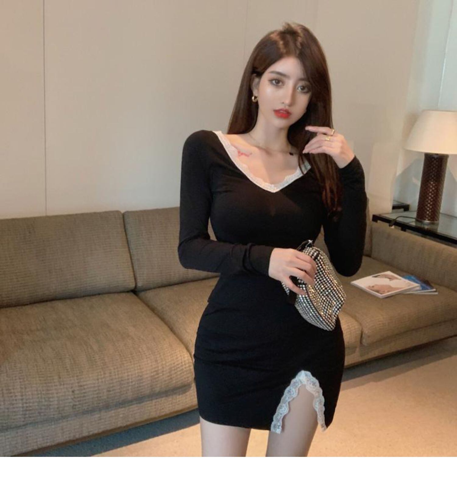 ニットドレス スプリングVネックレーススリムスカート 春物 ドラファッションホール88102507734