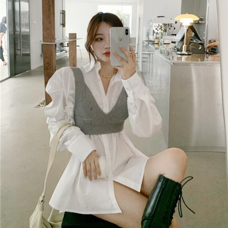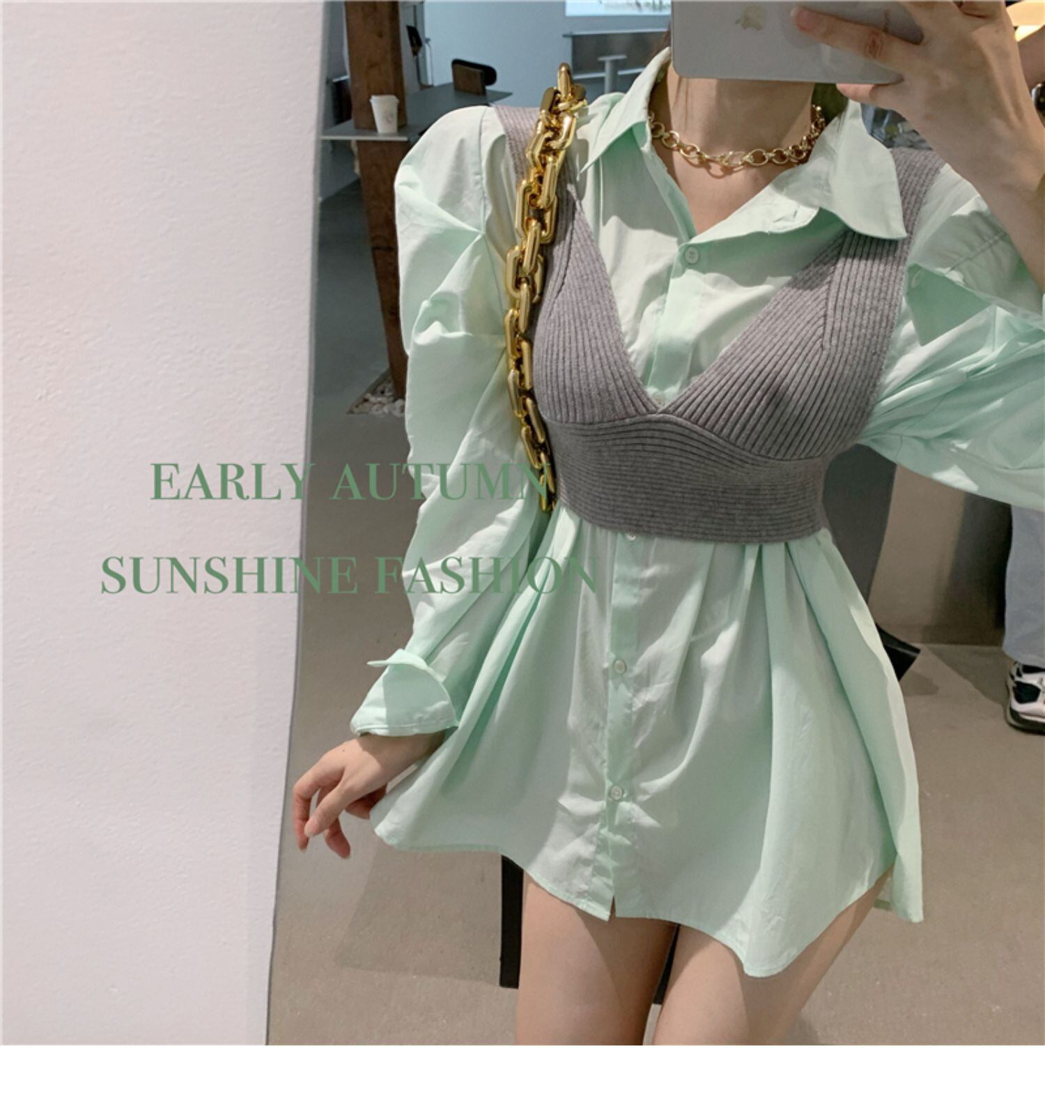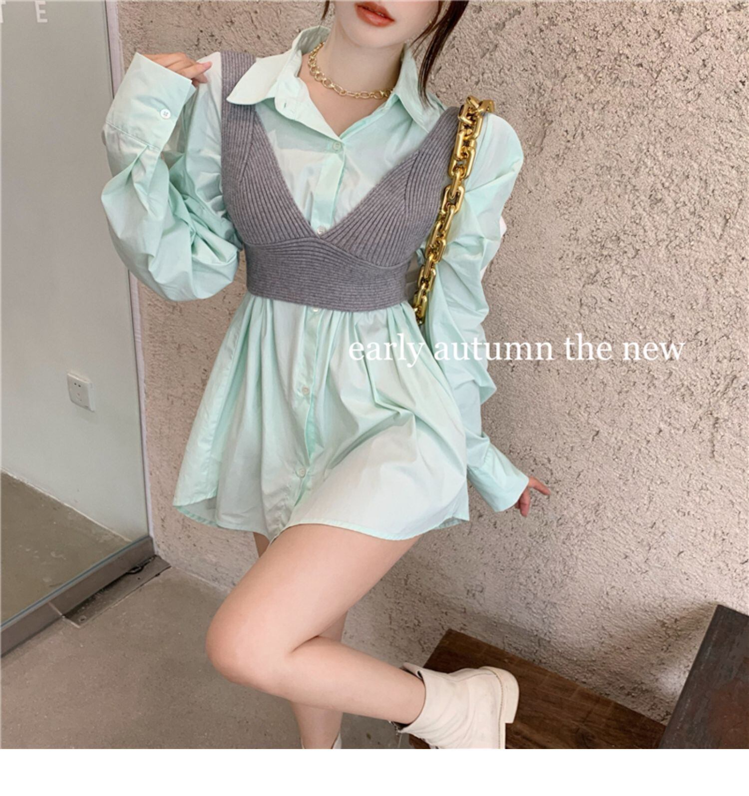シャツ スプリングスタイルルーズトップス Vネックニット 春物 ドラファッションホール28490325126