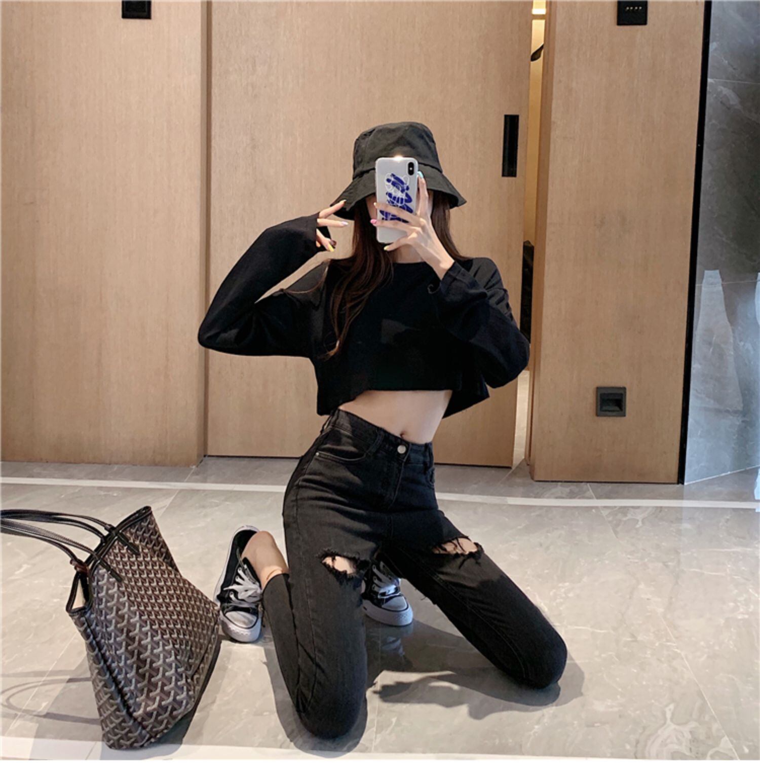 ジーンズ スプリングスタンダードハイウェストスリムパンツ レトロ 春物 ドラファッションホール37747342052
