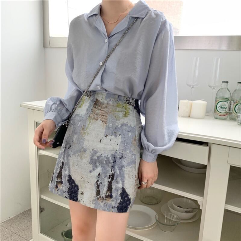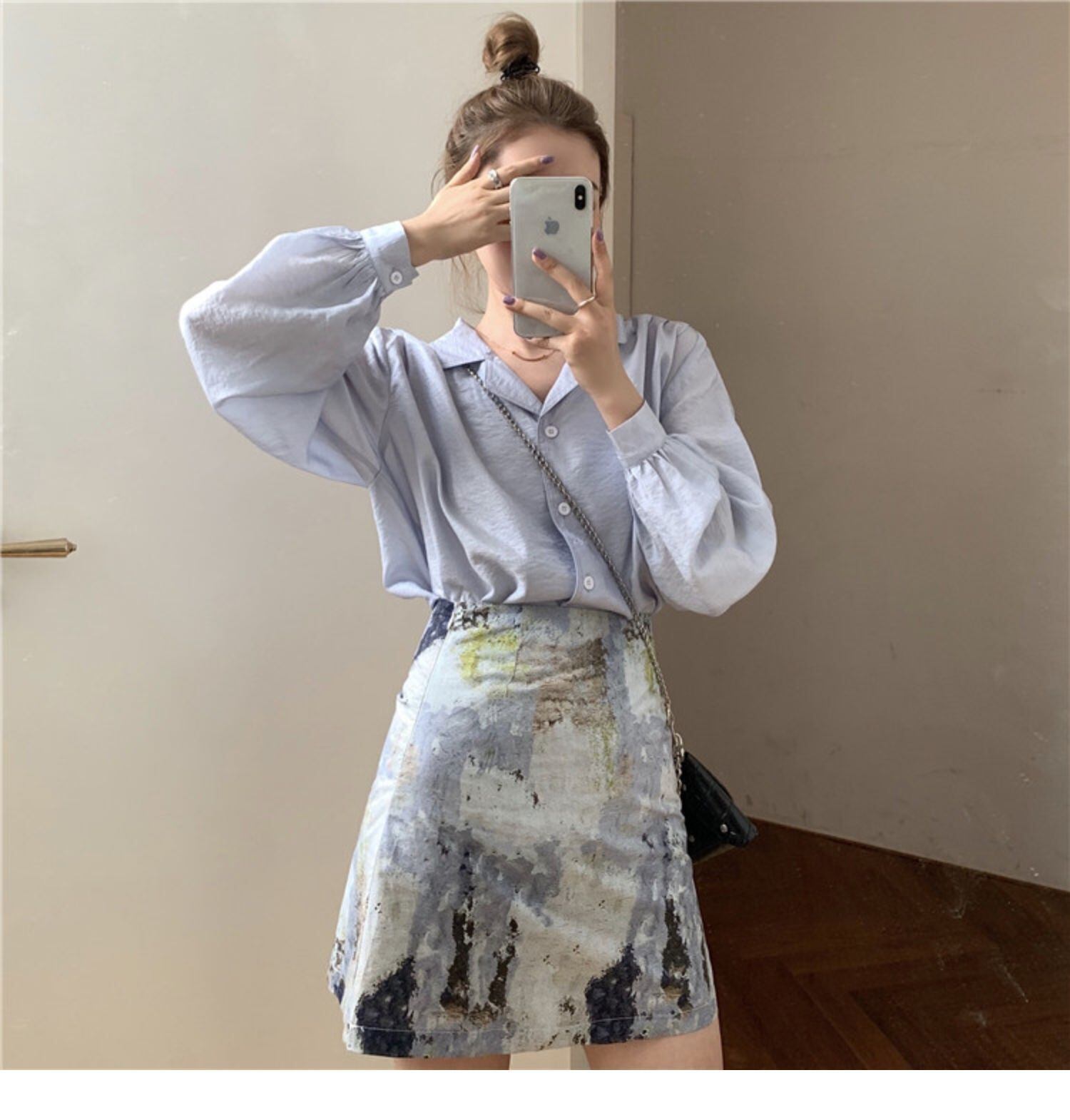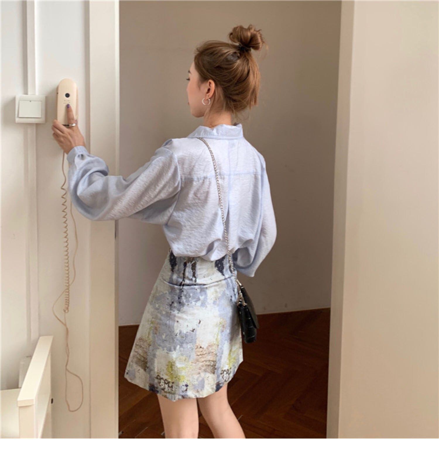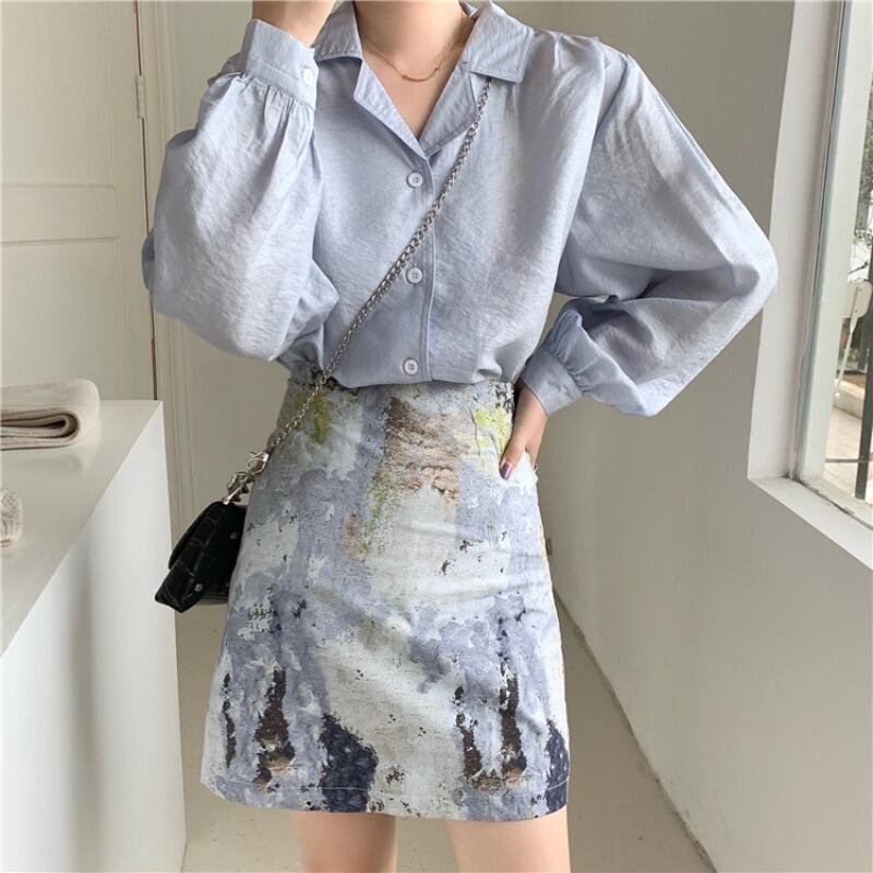 スリーブシャツ スプリングハイウェストウェストプリントスカート ランタンスリーブ 春物 ドラファッションホール95277663629