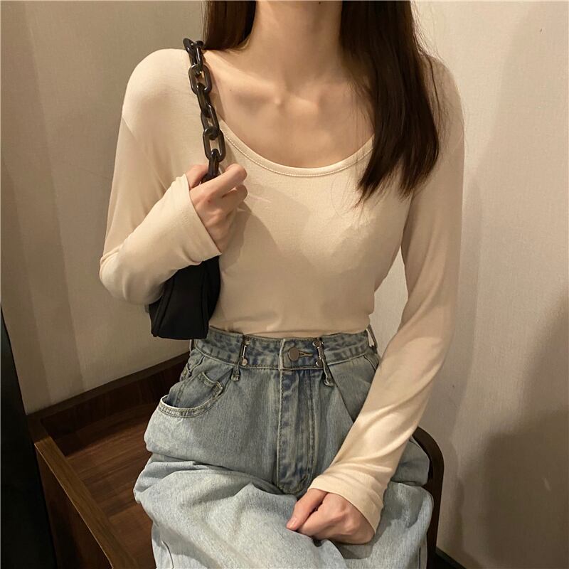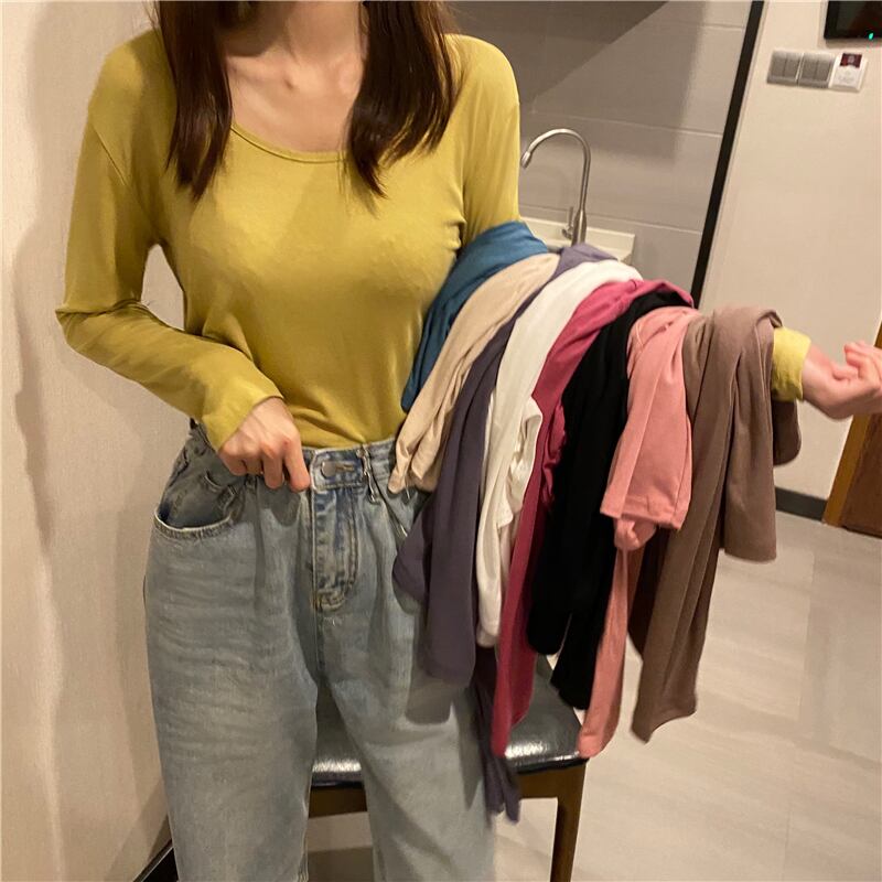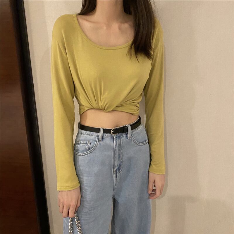 トップス レディーススプリングソリッド カラーシャツ ショートスリムTシャツ 春物 ソリッドカラー ドラファッションホール3465233001